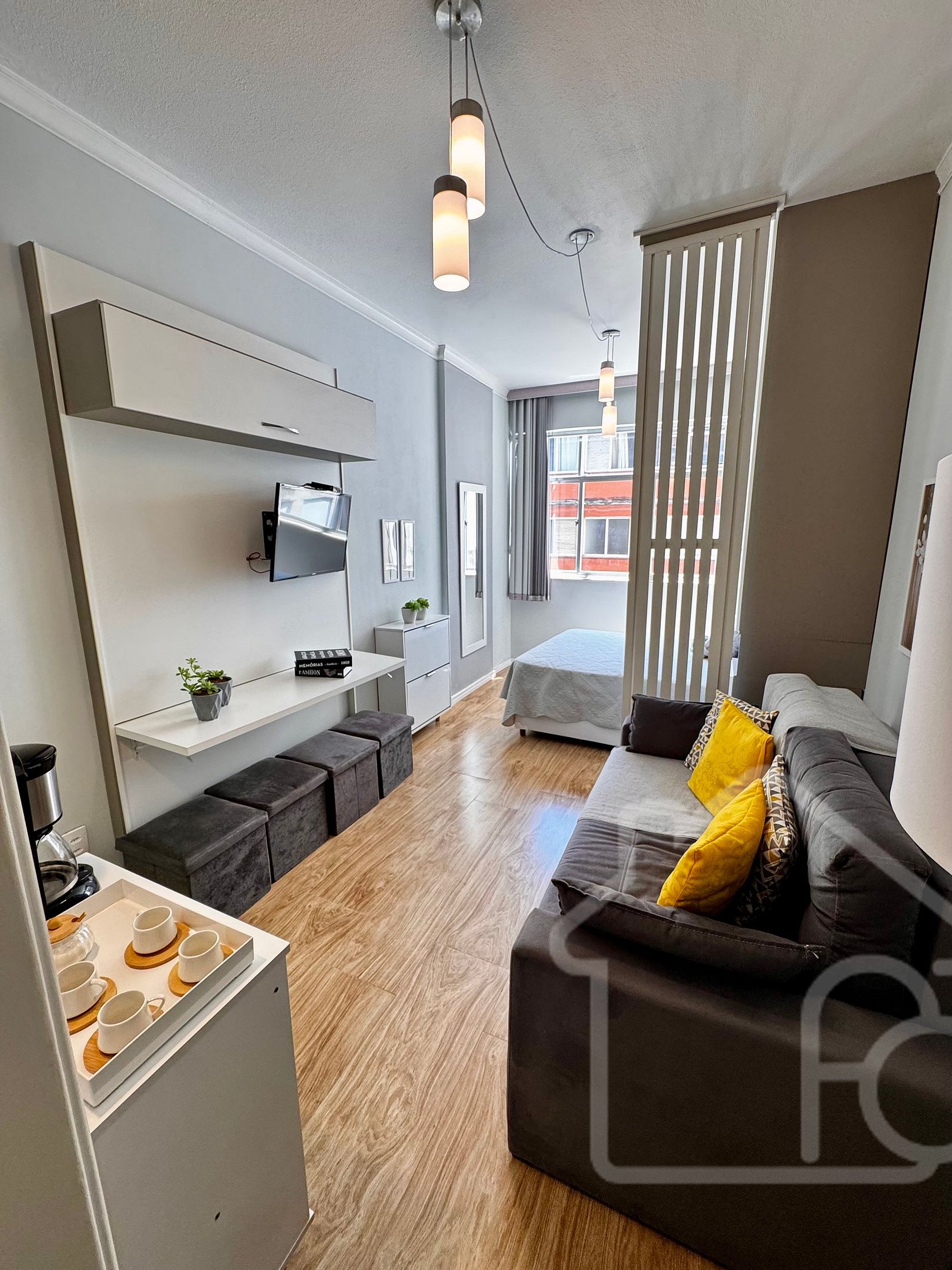 Estúdio aconchegante na melhor localização de Nova Friburgo, na Praça Getúlio Vargas. Ambiente integrado com cama de casal e sofá-cama, banheiro social com secador de cabelo e cozinha equipada com cafeteira elétrica, cafeteira de cápsulas, airfryer e fogão elétrico 1 boca. Prédio com elevador. Perto de comércio, padarias, farmácias e academia, é a opção ideal para quem busca praticidade e conforto no coração da cidade.