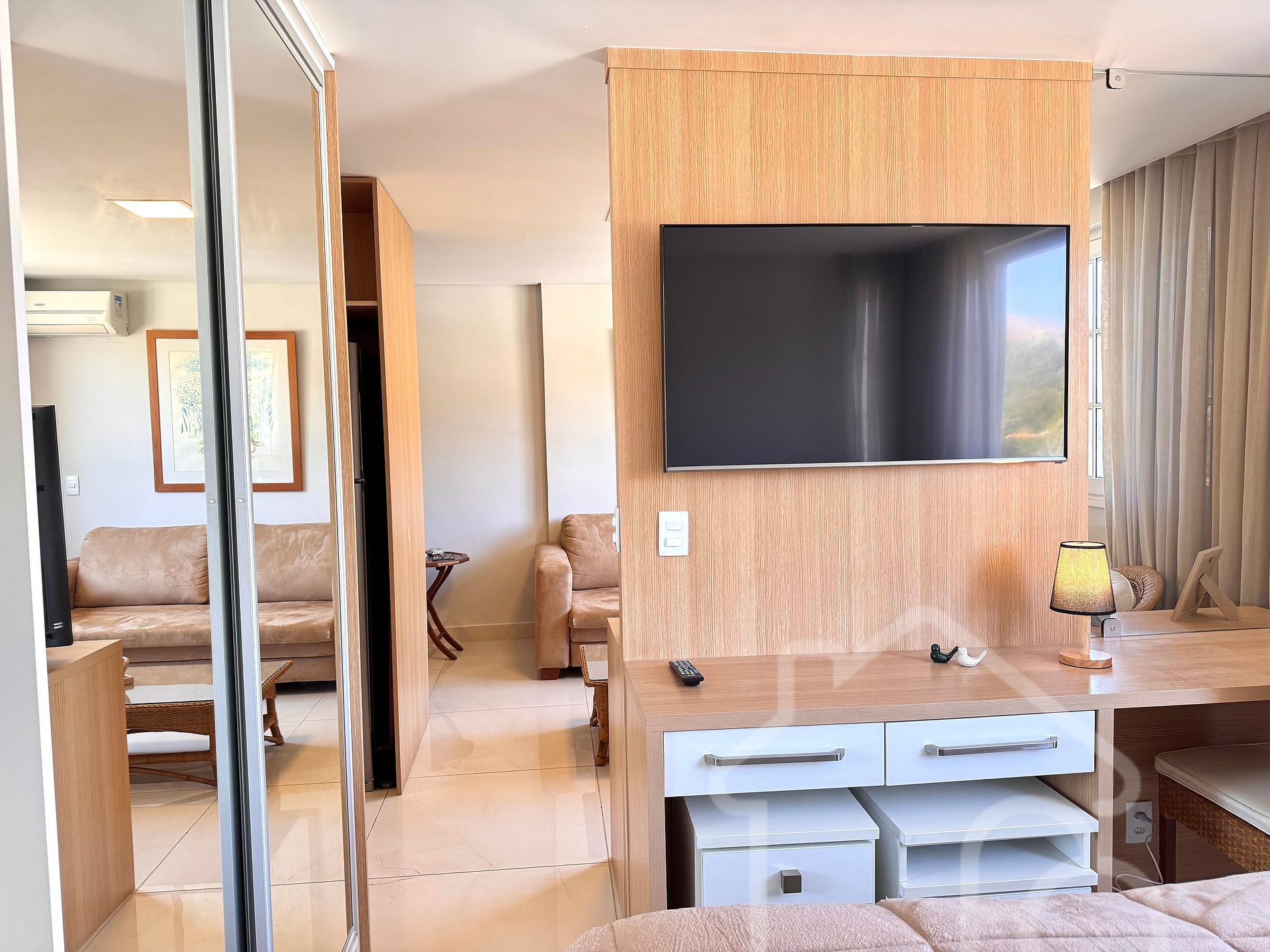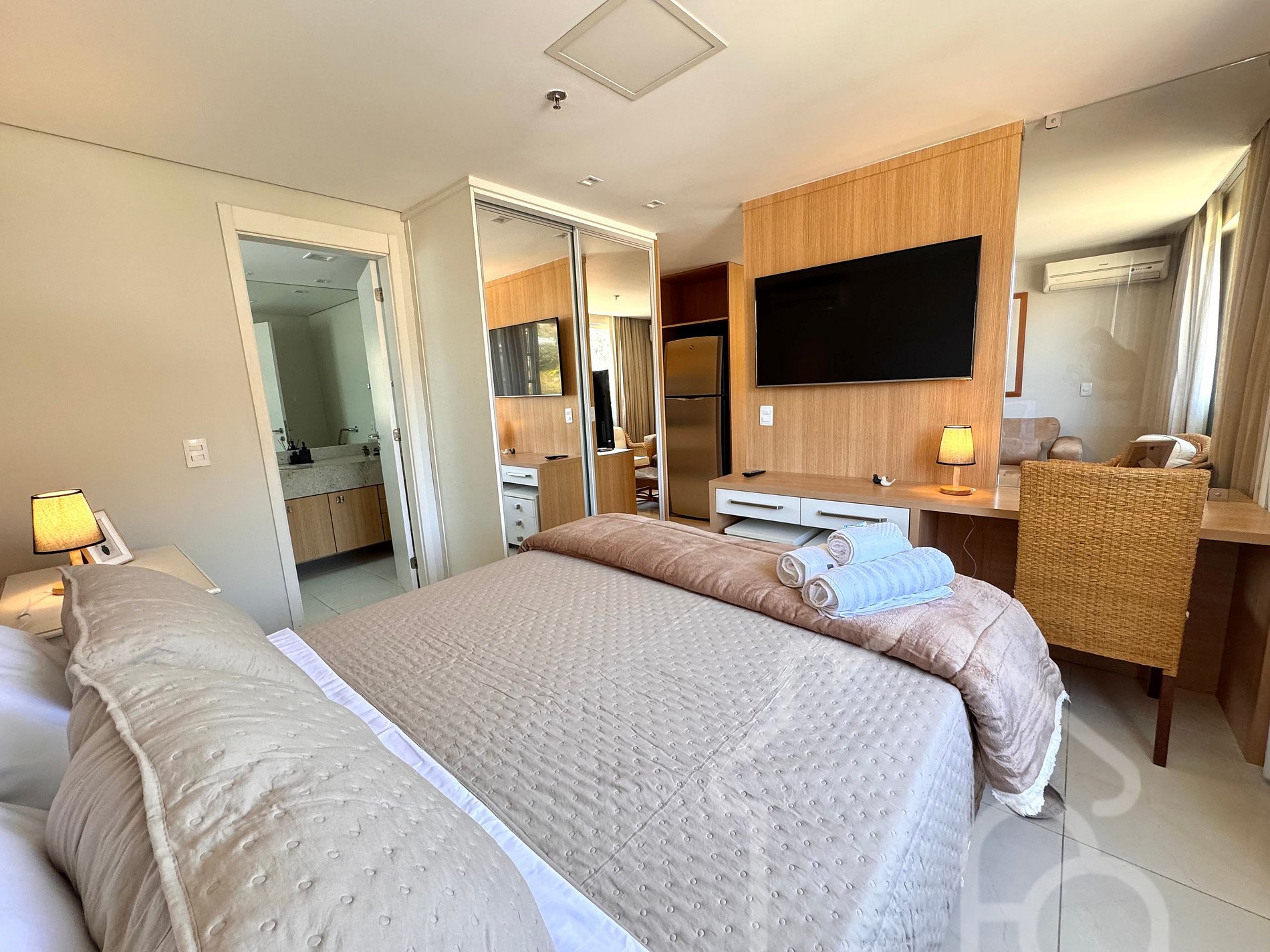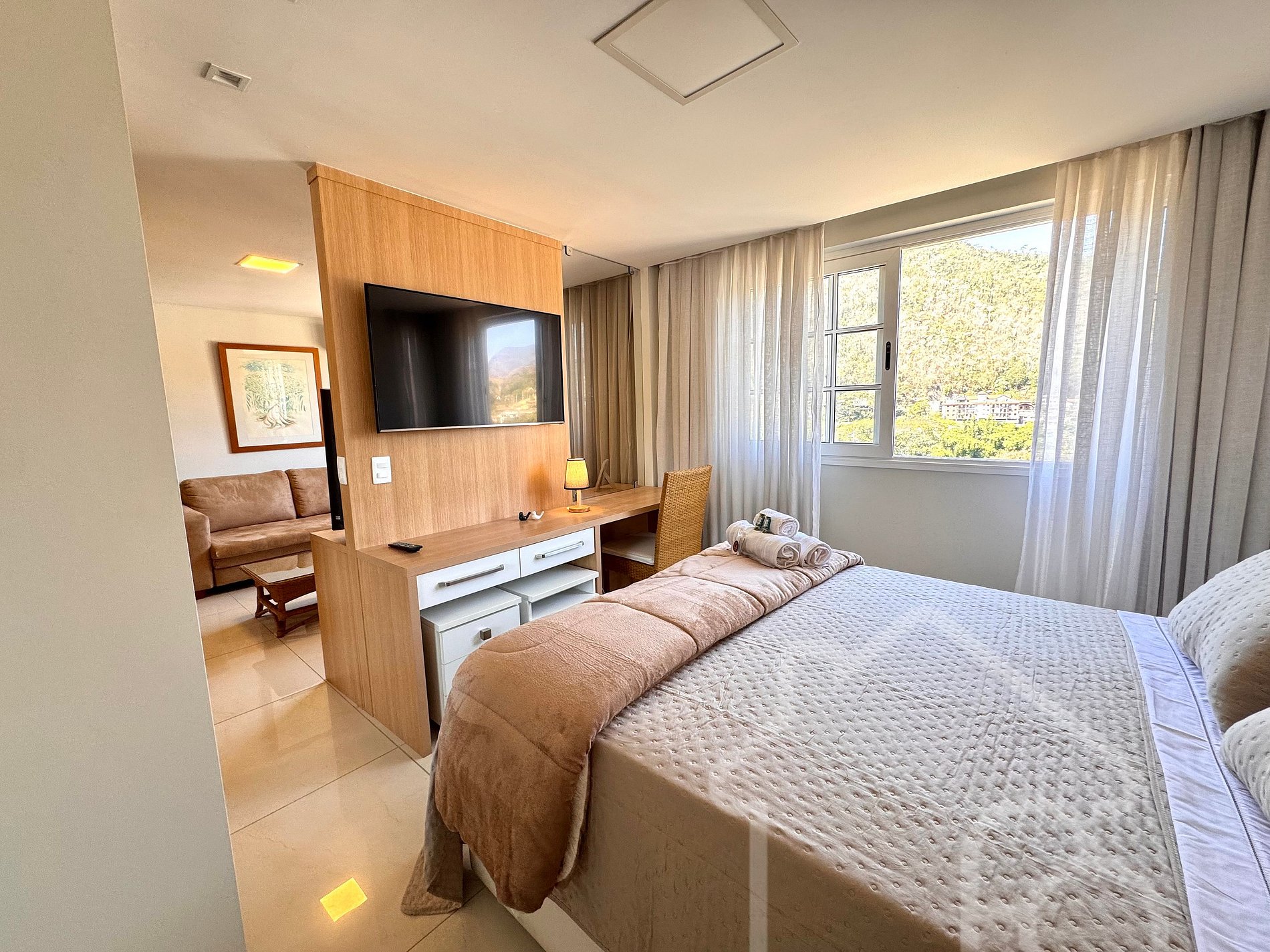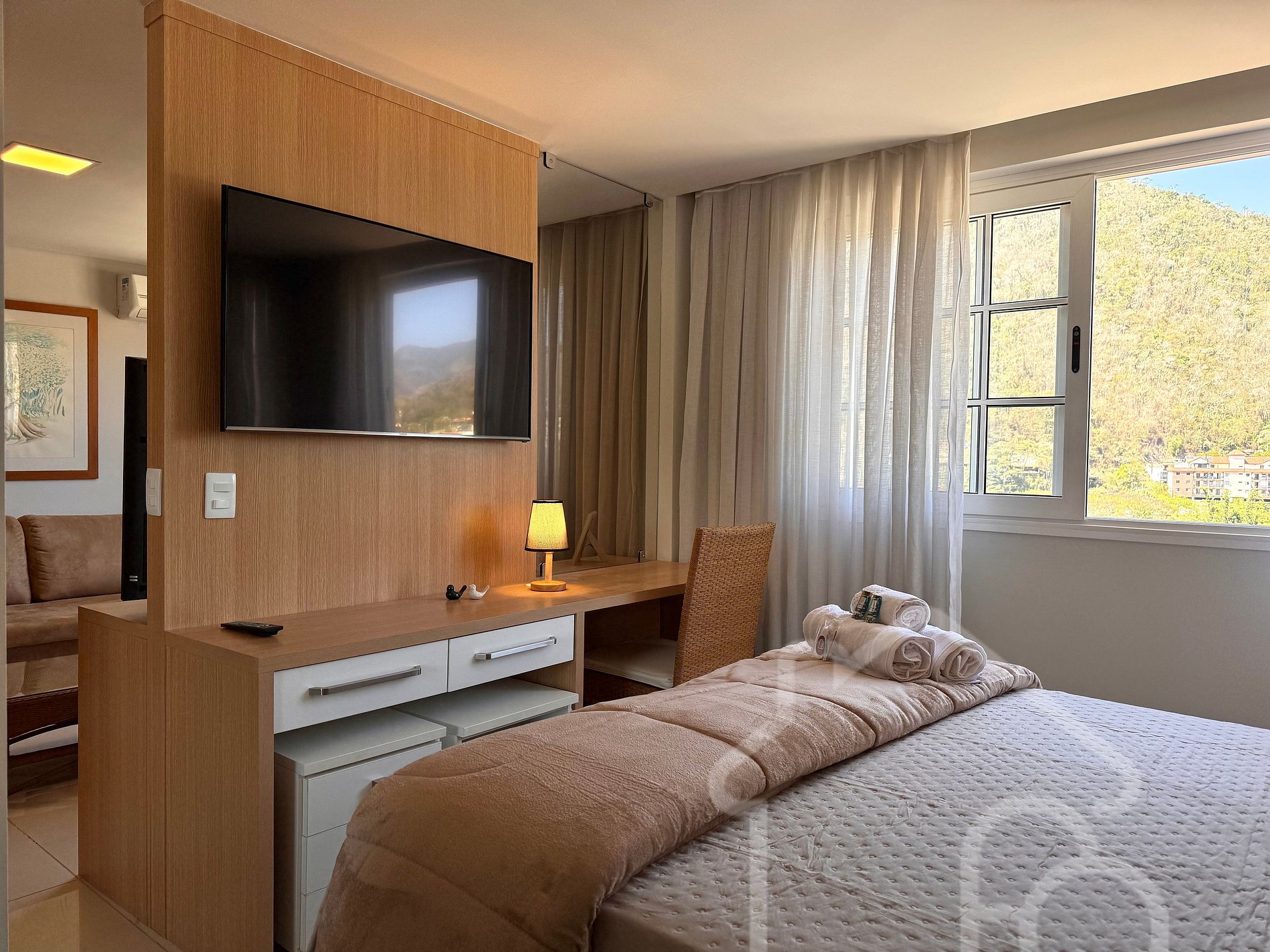 Os hóspedes terão acesso completo ao estúdio e à sua cozinha, sala de estar e banheiro. O condomínio oferece acesso liberado às áreas comuns, incluindo piscinas, quadras de tênis, sauna, ofurô, academia, parquinho e deck panorâmico.