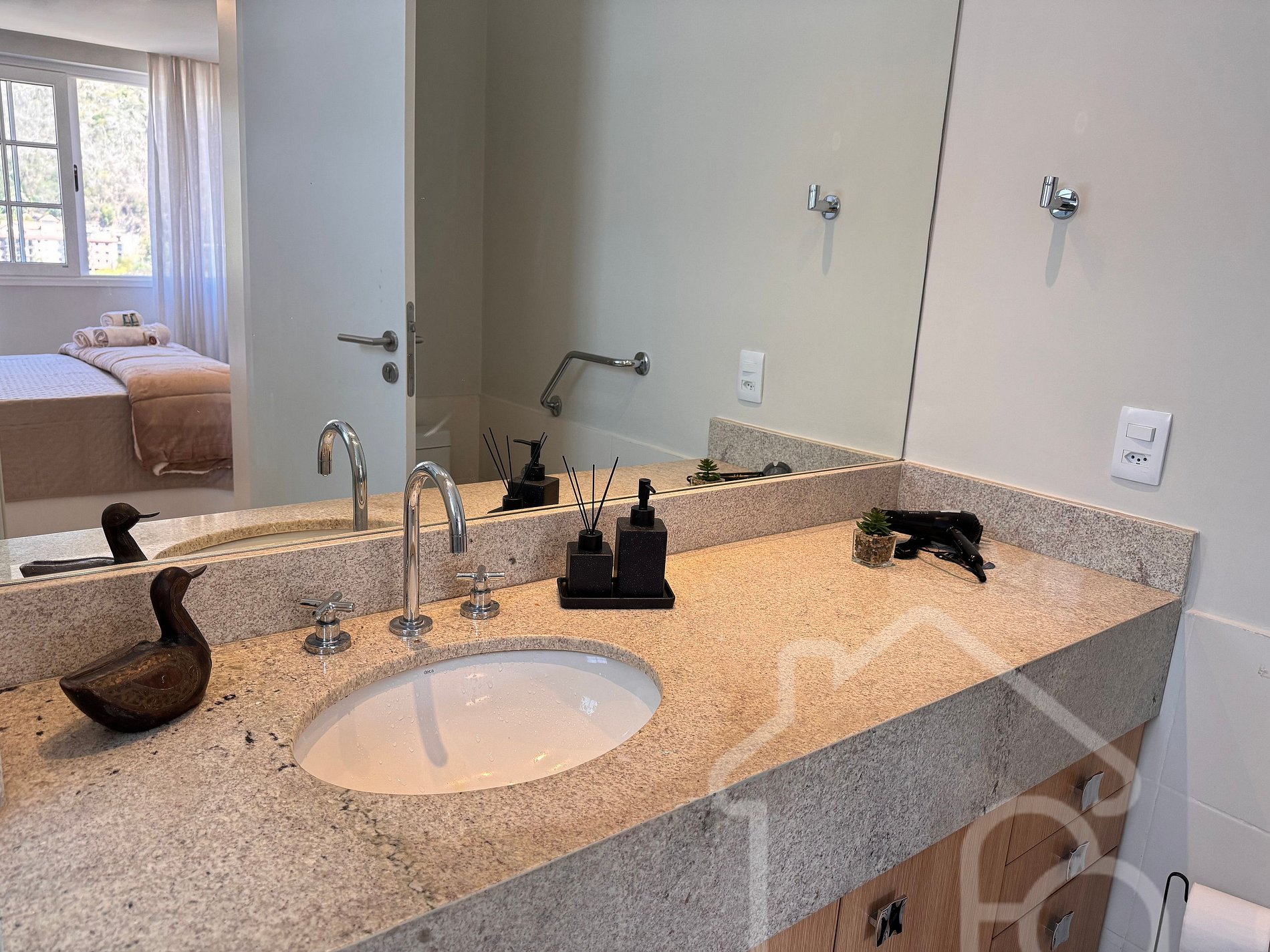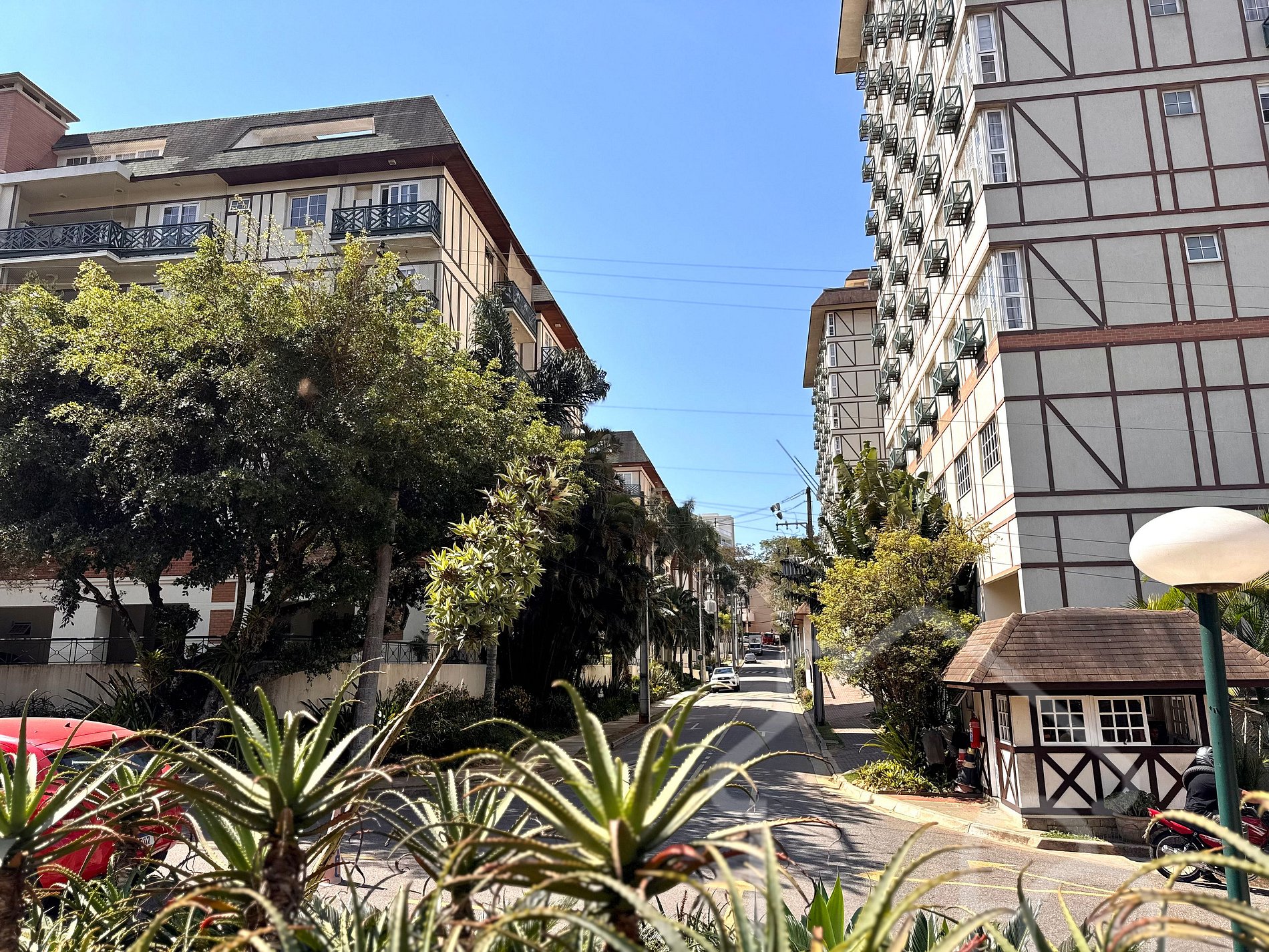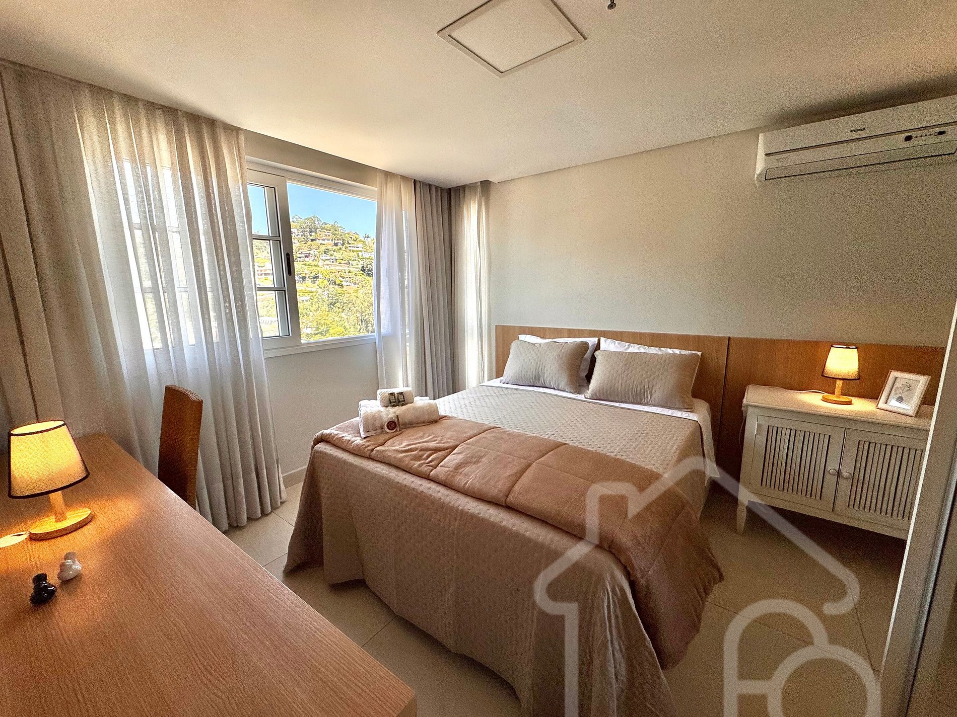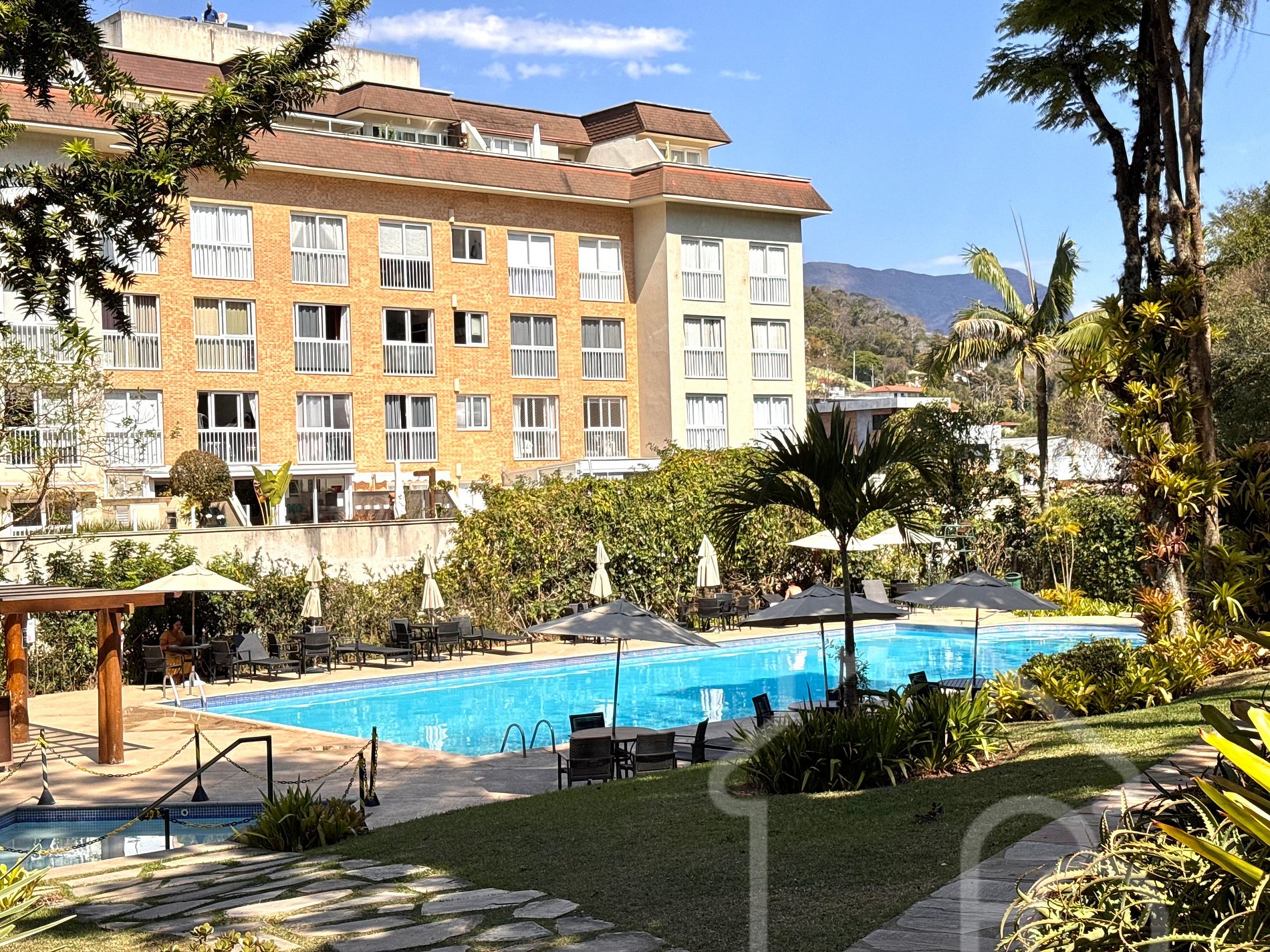 Estúdio completo na Granja Brasil, Itaipava, com cama queen, sala de estar, mesa home office, TV com streaming e cozinha equipada (geladeira, micro-ondas, cooktop, forno e cafeteira). Condomínio com infraestrutura completa: piscinas, quadras de tênis, sauna, ofurô, deck panorâmico, parquinho, academia, centro gastronômico, trilhas e segurança 24h. Localização privilegiada próxima ao Parque de Exposições, restaurantes e atrações da serra.