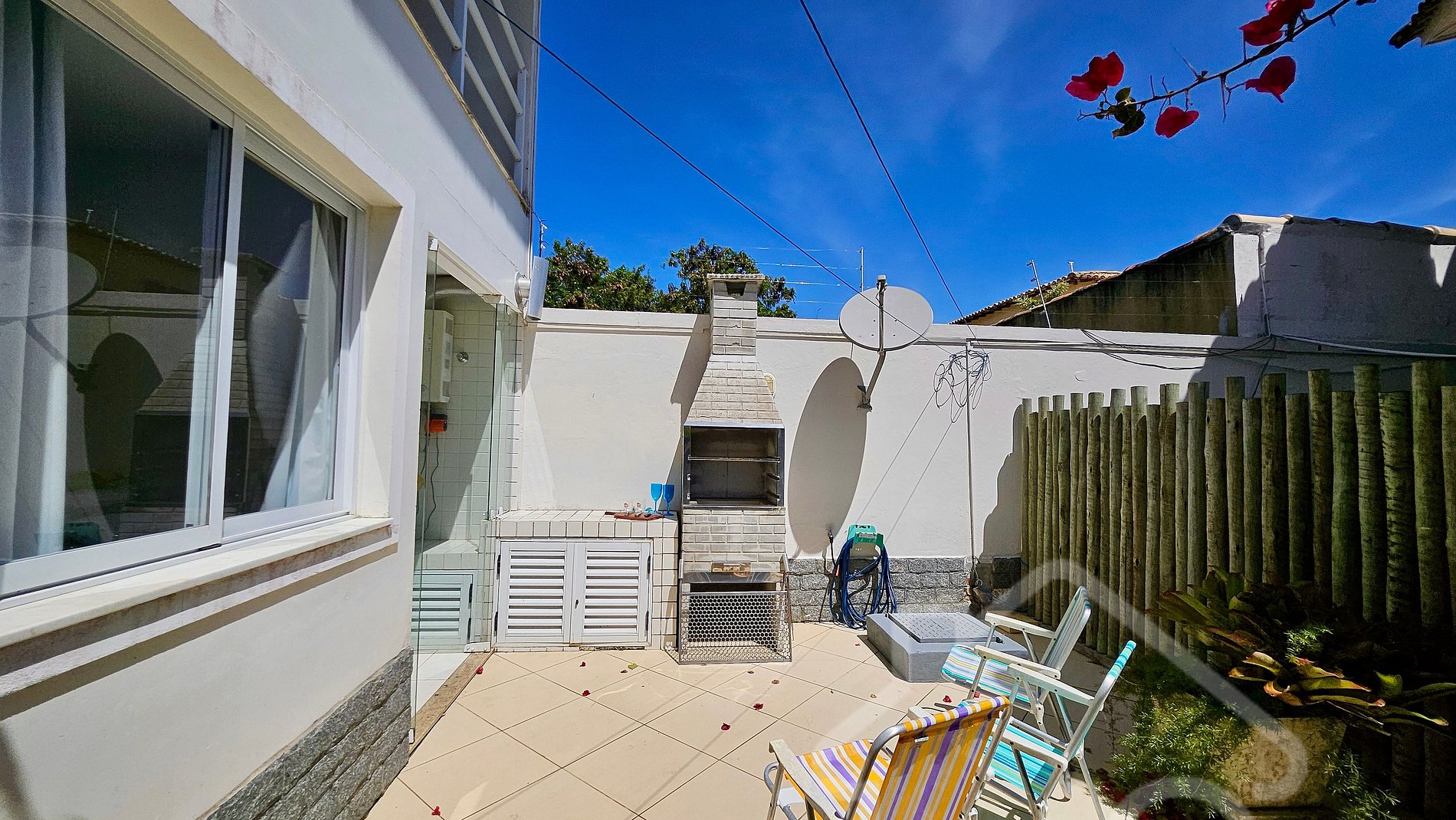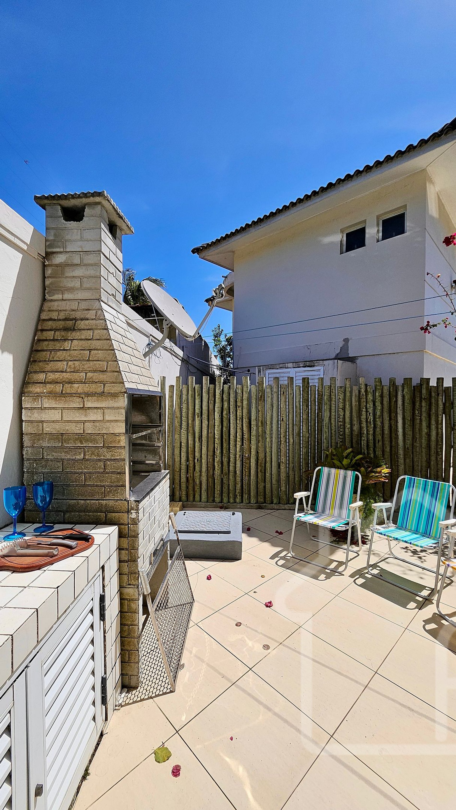- Área gourmet com churrasqueira e espaço para refeições ao ar livre