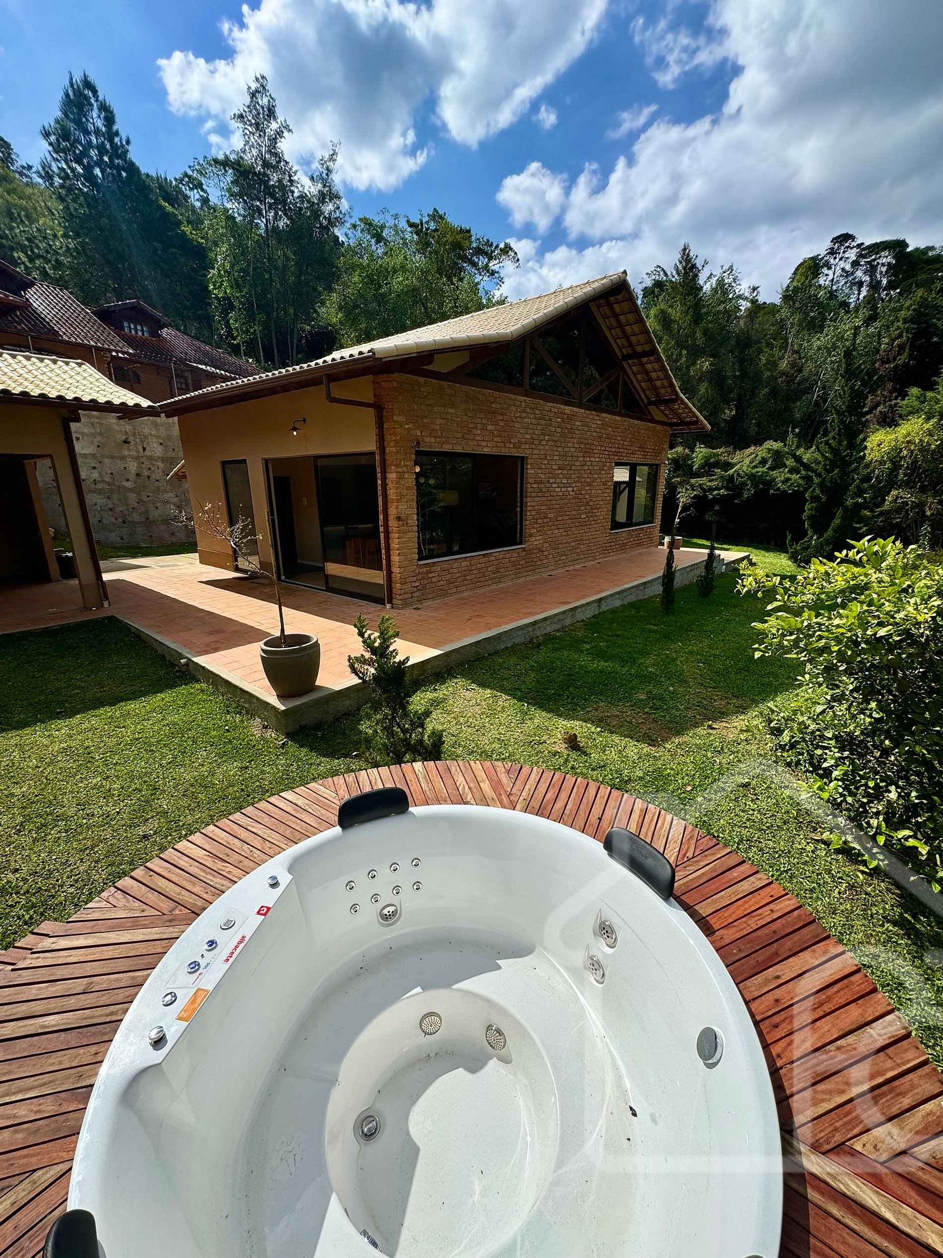 Casa inspirada na Toscana no Condomínio Stucky, em Mury. Três suítes (duas com closet), jacuzzi privativa, área gourmet com churrasqueira, fogo de chão e calefator. Ambientes integrados, janelas de vidro e tijolinhos com vista para a natureza, super bem decorados. Condomínio com piscina, sauna, quadra de tênis, campo de futebol e playground. Refúgio acolhedor e sofisticado na serra.