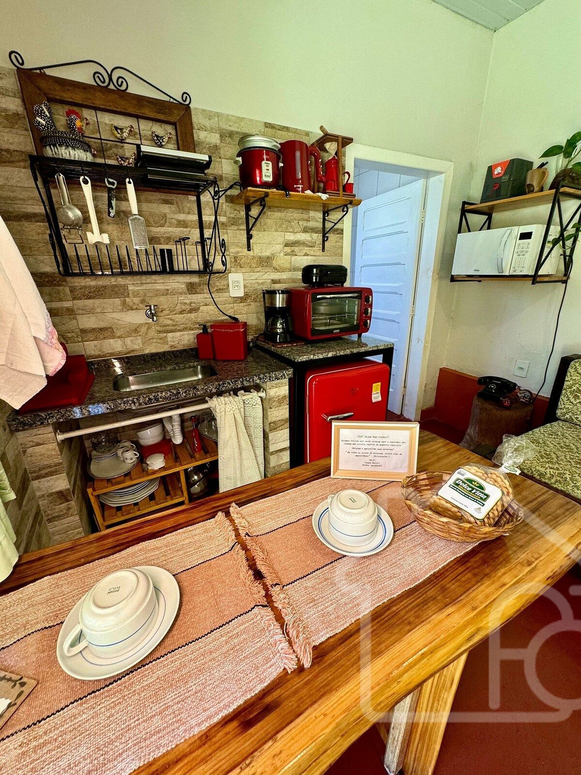 Sobre o espaço: - Quarto com cama de casal, roupa de cama e banho. - Sala com salamandra (aquecedor a lenha), ideal para dias mais frios. - Sofá para acomodação extra. - TV Smart com canais abertos via SAT HD Regional. Cozinha Americana equipada com: - Fogão elétrico de indução (1 boca). - Frigobar. - Micro-ondas. - Forninho elétrico. - Cafeteira. - Panela elétrica. - Utensílios básicos de cozinha (pratos, copos, talheres, panelas, etc.). Área externa e lazer: - Espaço gourmet com churrasqueira e fogão a lenha. - Redes para descanso em meio à natureza. - Fogo de chão para momentos inesquecíveis ao ar livre. - Chuveirão externo para se refrescar nos dias quentes.