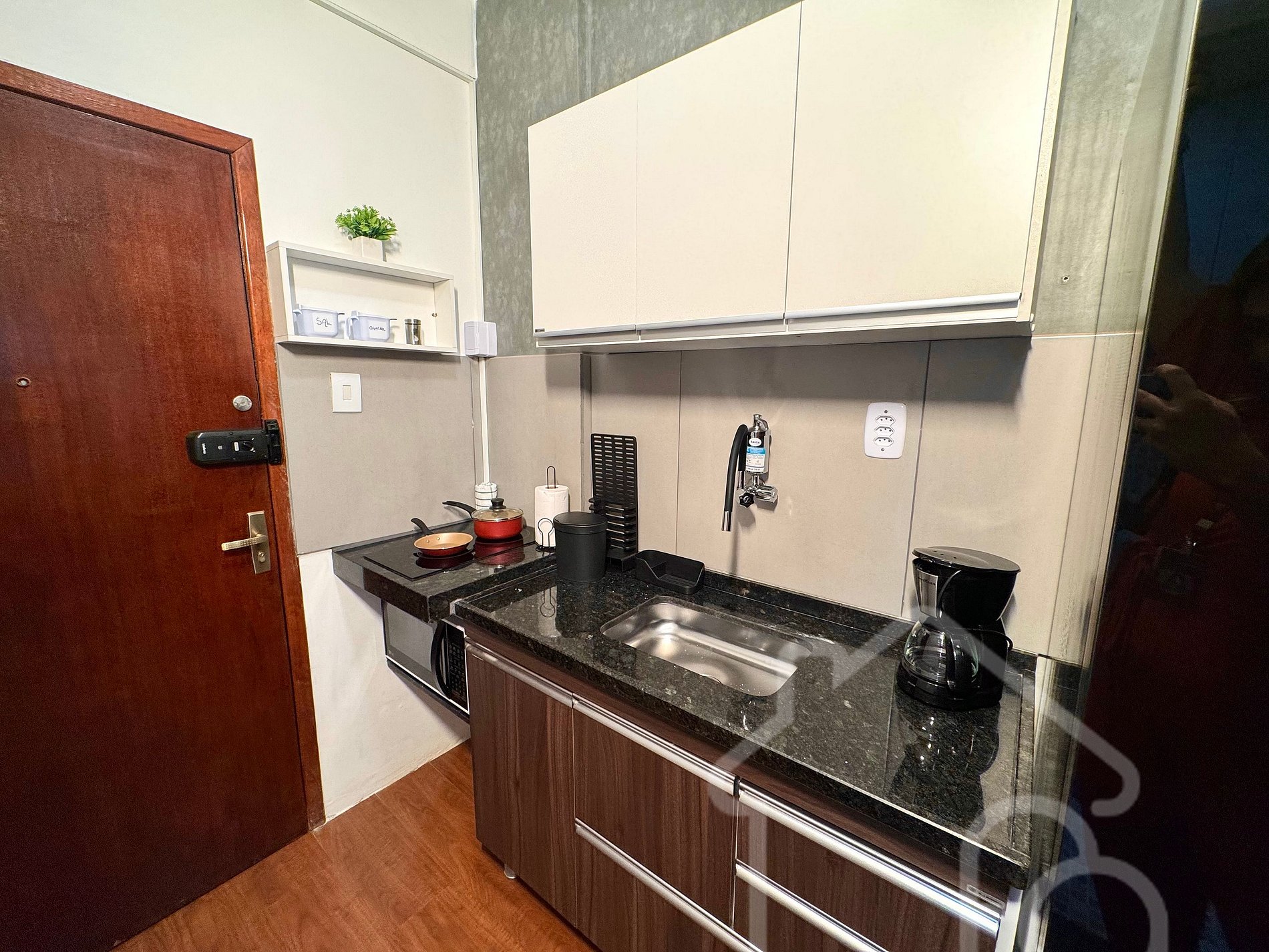 O apartamento é composto por um estúdio totalmente reformado e pensado para oferecer conforto e praticidade.