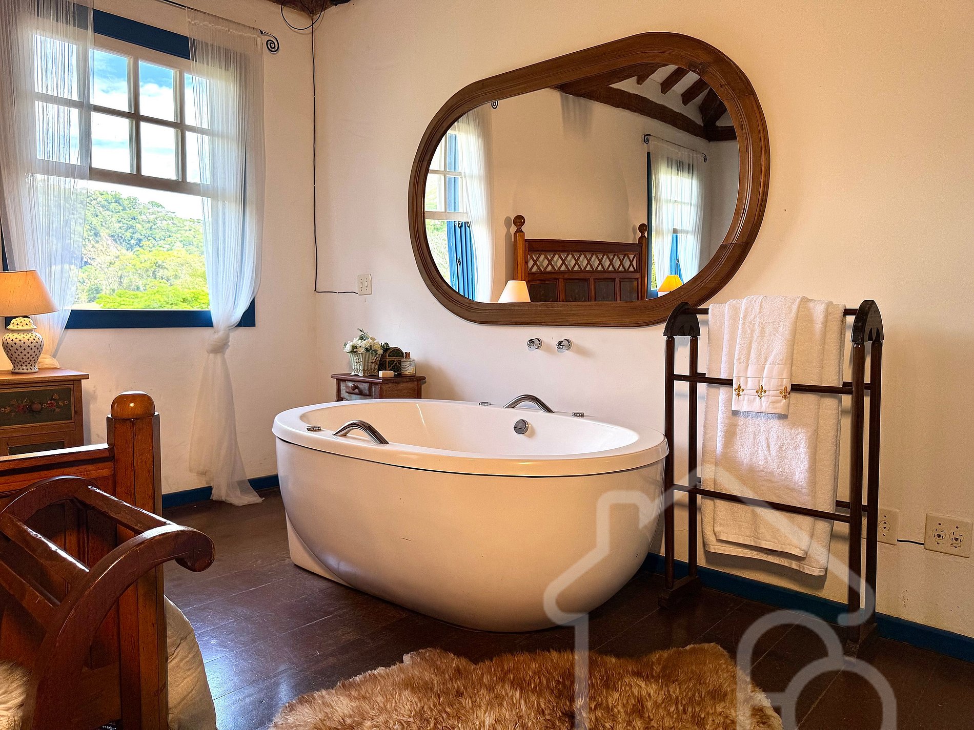 - 4 suítes com ar-condicionado, sendo uma com cama queen e banheira