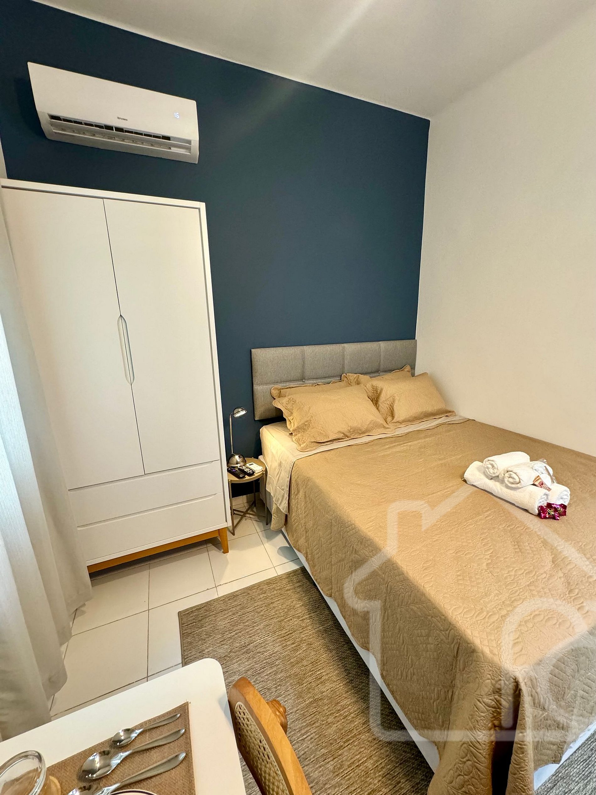 Mini estúdio reformado no Leblon, a 5 min da praia. Conta com cama queen, ar-condicionado, armário, secador, ferro e tábua. Cozinha compacta com frigobar, airfryer, fogão elétrico, micro-ondas, torradeira, liquidificador e utensílios básicos. Mesa para duas pessoas e banheiro completo. Localização privilegiada, perto de mercados, metrô, restaurantes e toda conveniência do bairro. Ideal para quem busca conforto e praticidade.