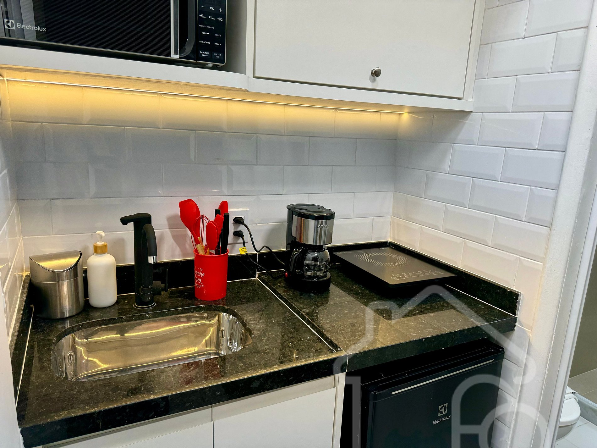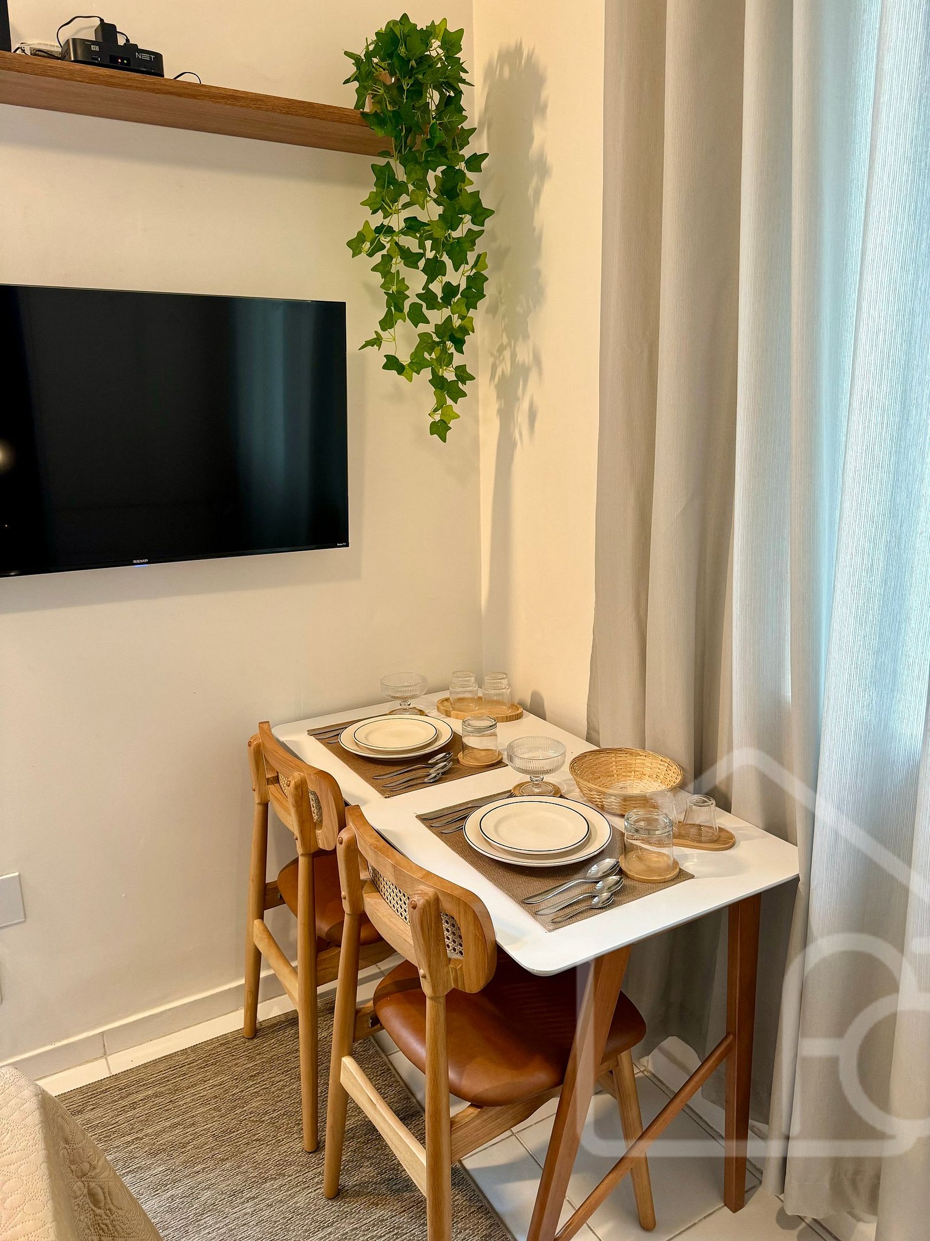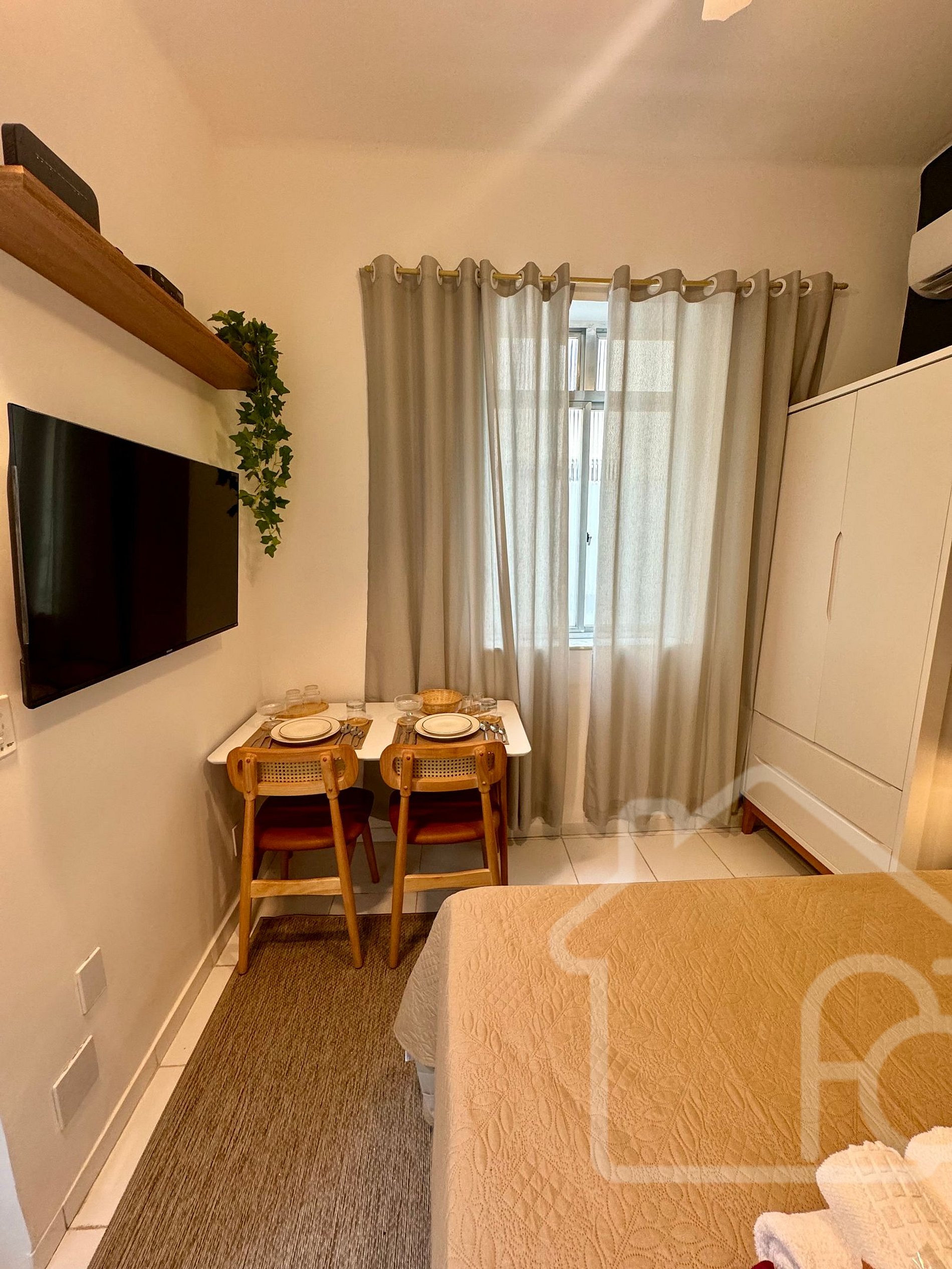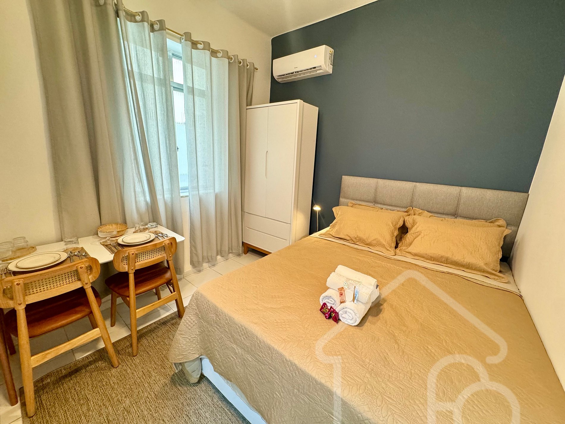 Mini estúdio reformado no Leblon, a 5 min da praia. Conta com cama queen, ar-condicionado, armário, secador, ferro e tábua. Cozinha compacta com frigobar, airfryer, fogão elétrico, micro-ondas, torradeira, liquidificador e utensílios básicos. Mesa para duas pessoas e banheiro completo. Localização privilegiada, perto de mercados, metrô, restaurantes e toda conveniência do bairro. Ideal para quem busca conforto e praticidade.