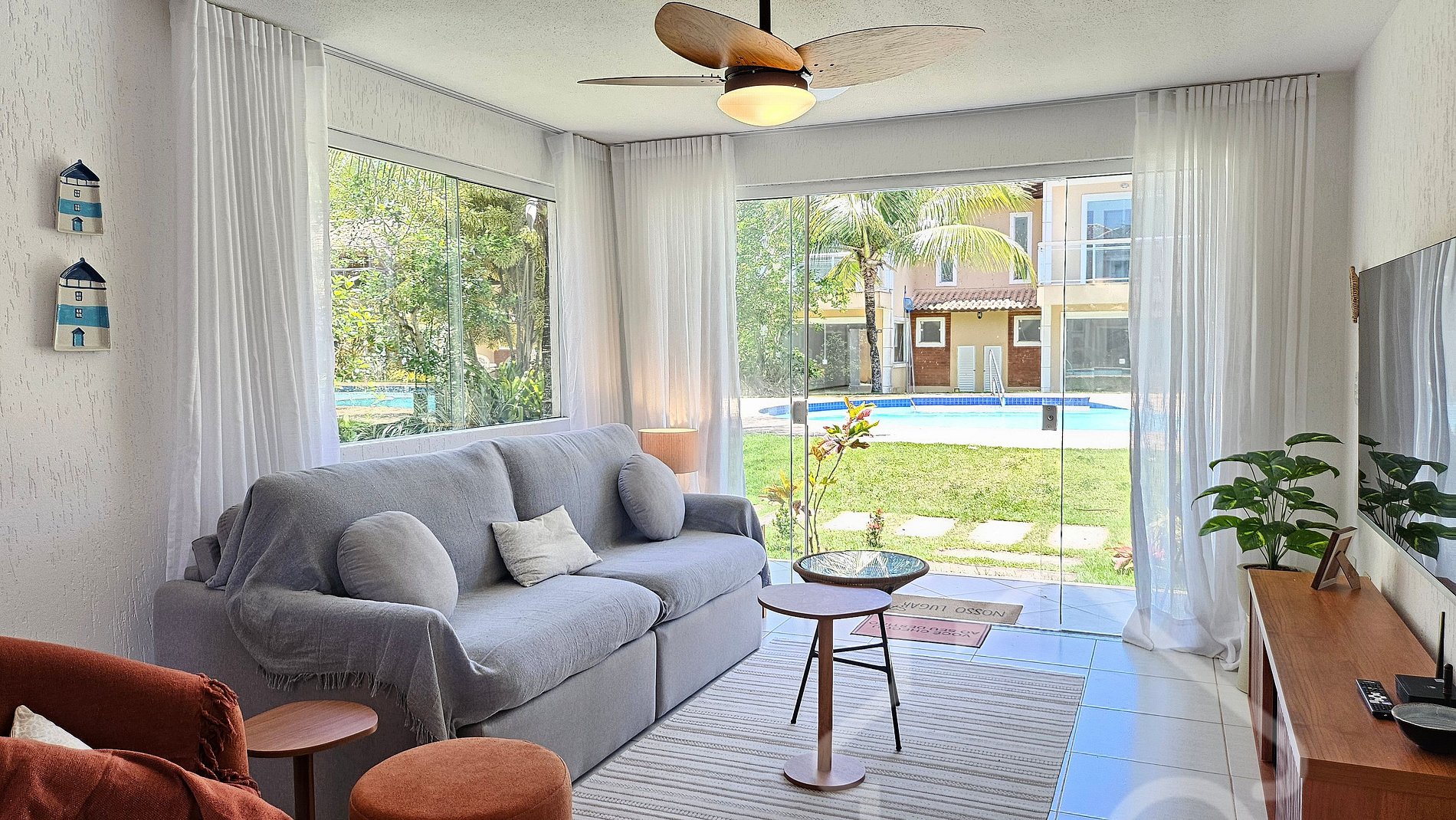 Os hóspedes terão acesso liberado a todos os cômodos da casa e às áreas comuns do condomínio (como a piscina e área de sol), respeitando as normas internas e horários de uso.