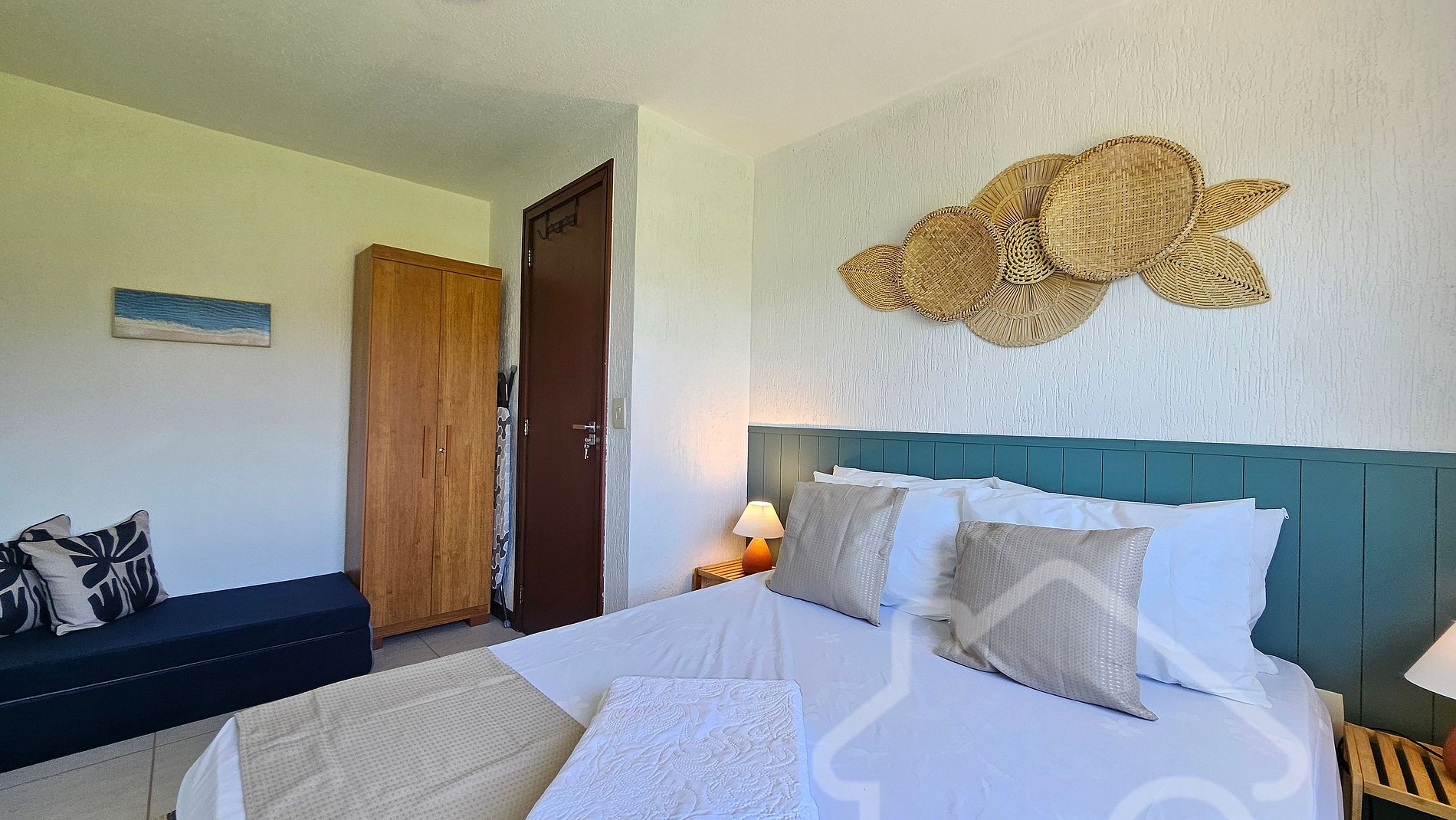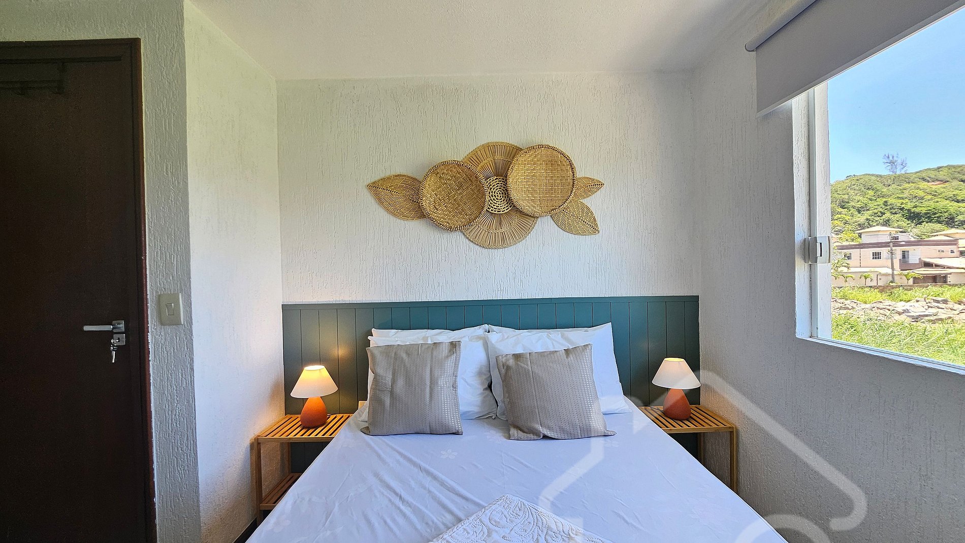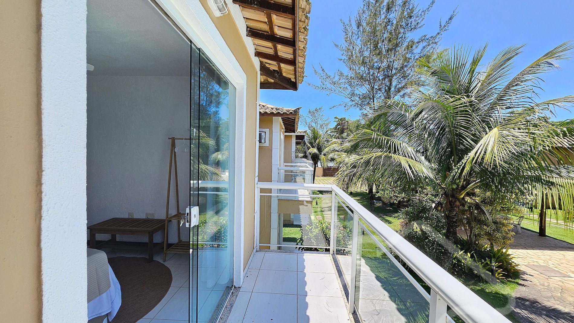 - Suíte Master: Cama de casal, ar-condicionado, varanda privativa e decoração charmosa.