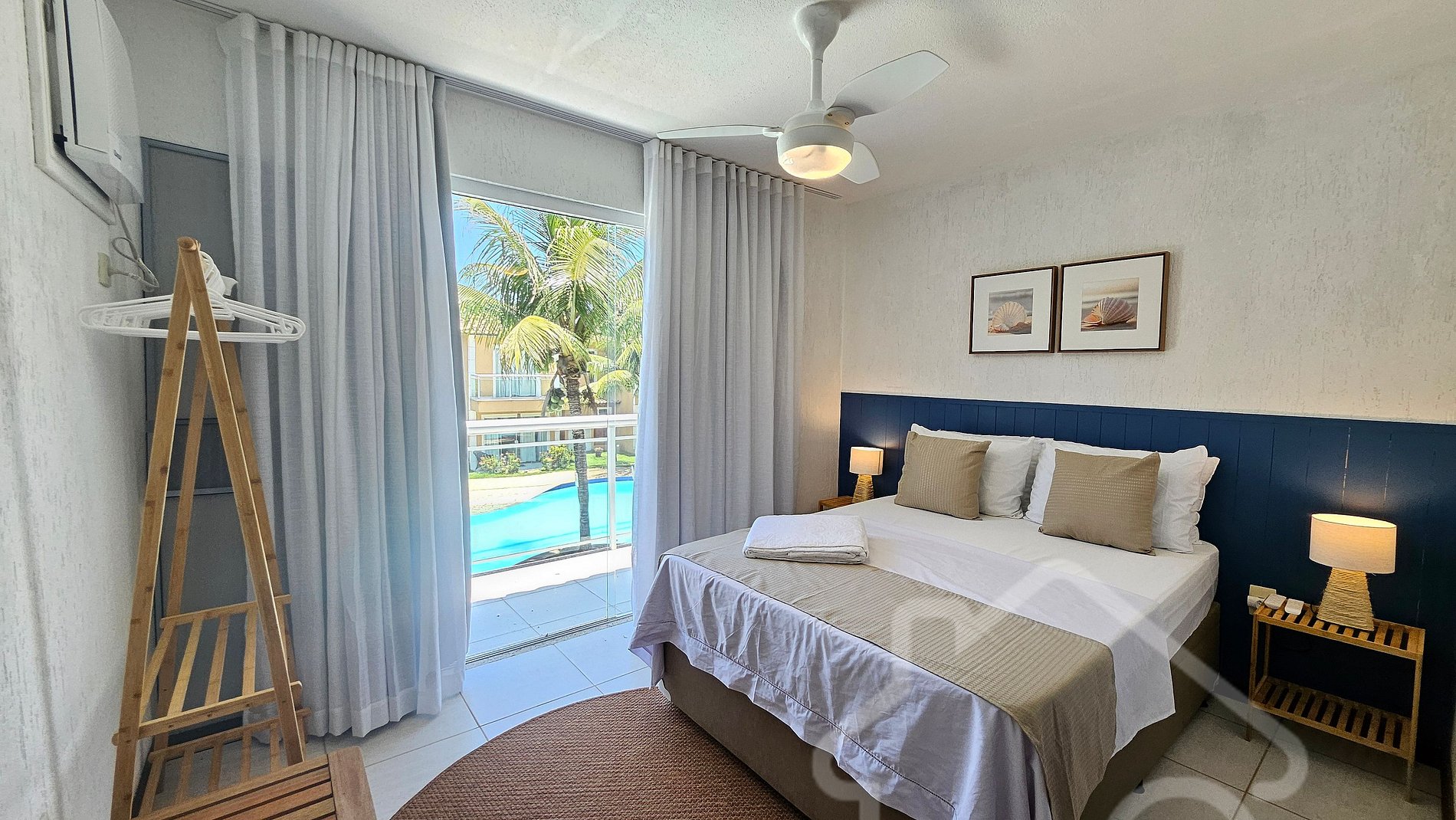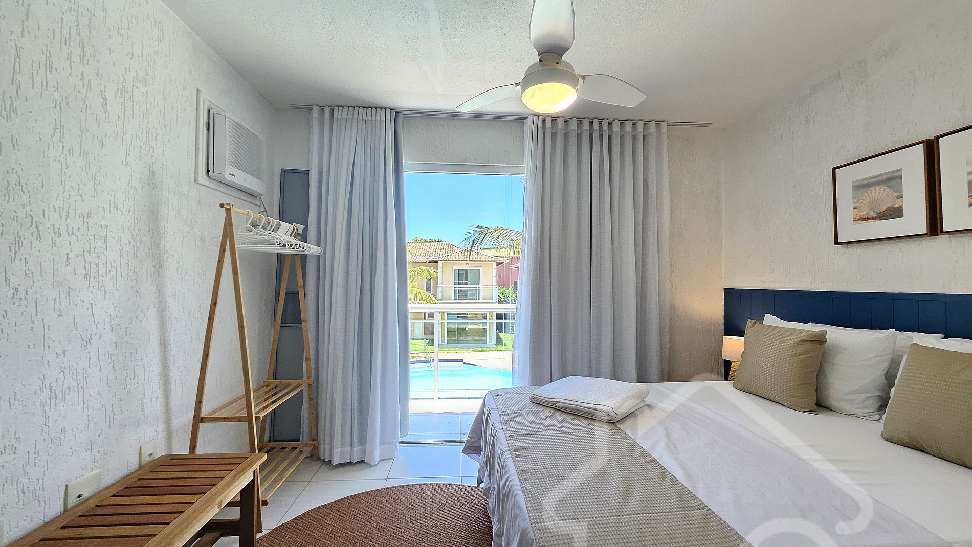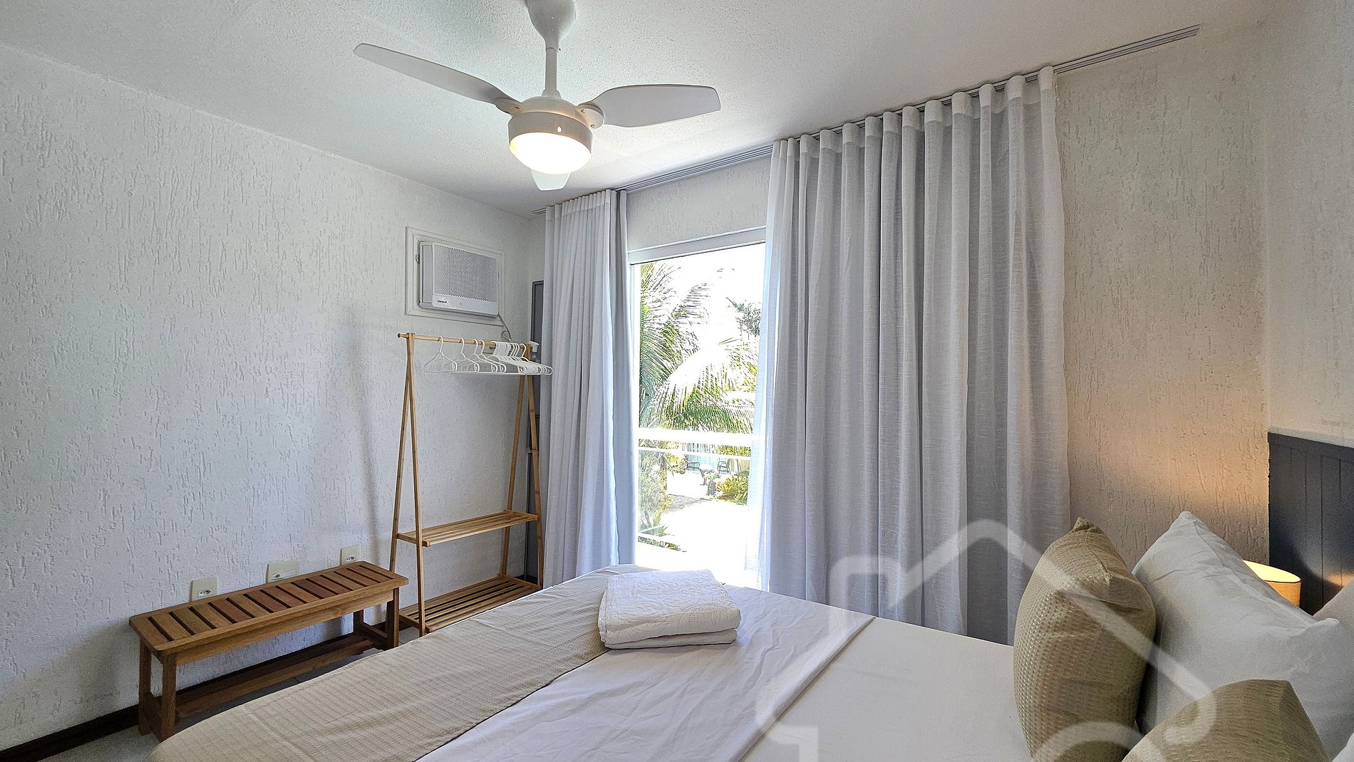 - Suíte Master: Cama de casal, ar-condicionado, varanda privativa e decoração charmosa.