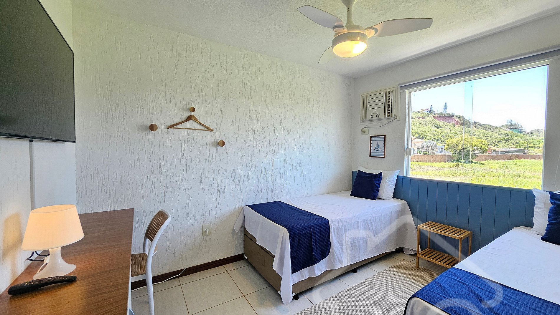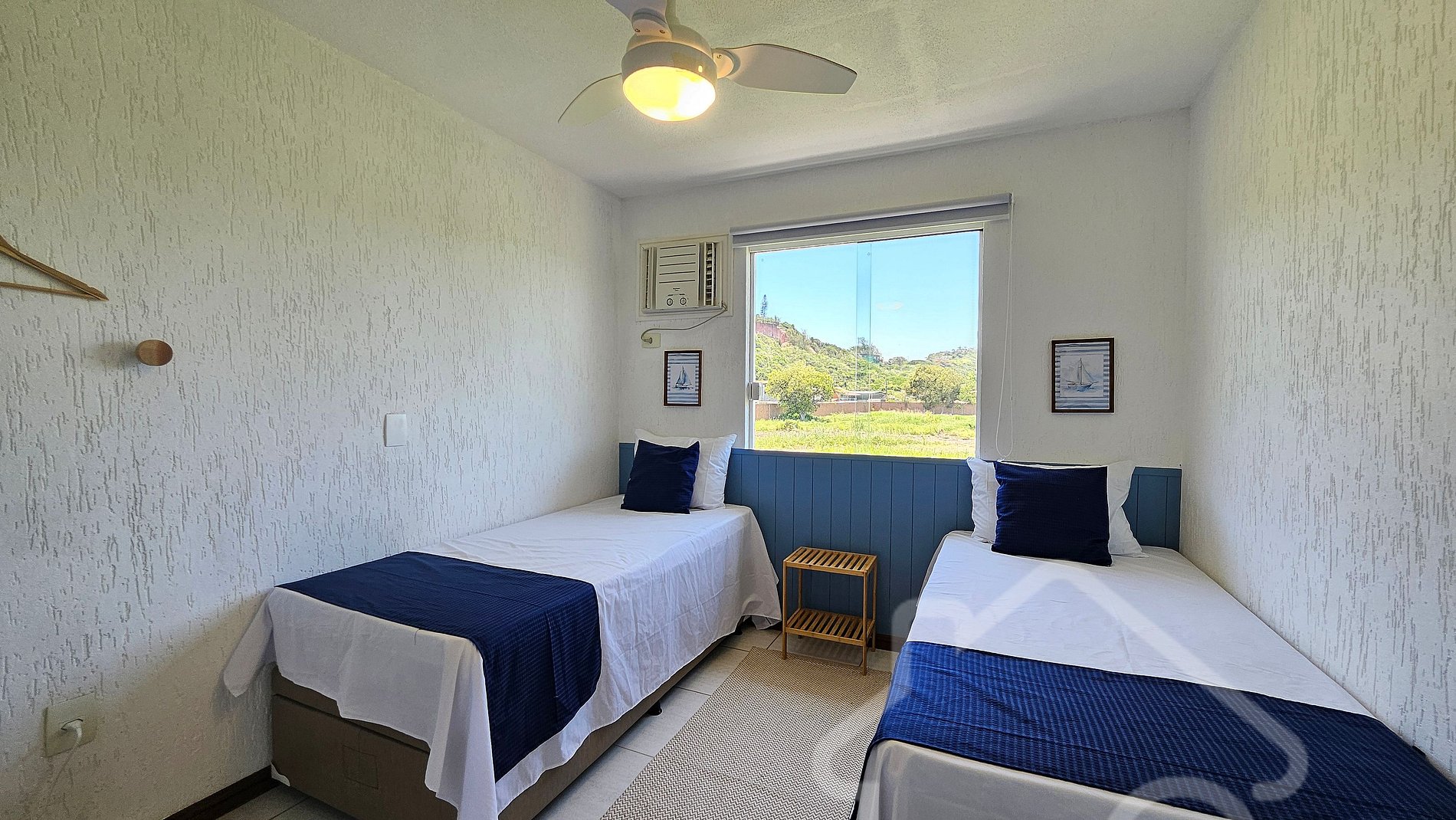 - Quarto 3: Duas camas de solteiro e ar-condicionado.