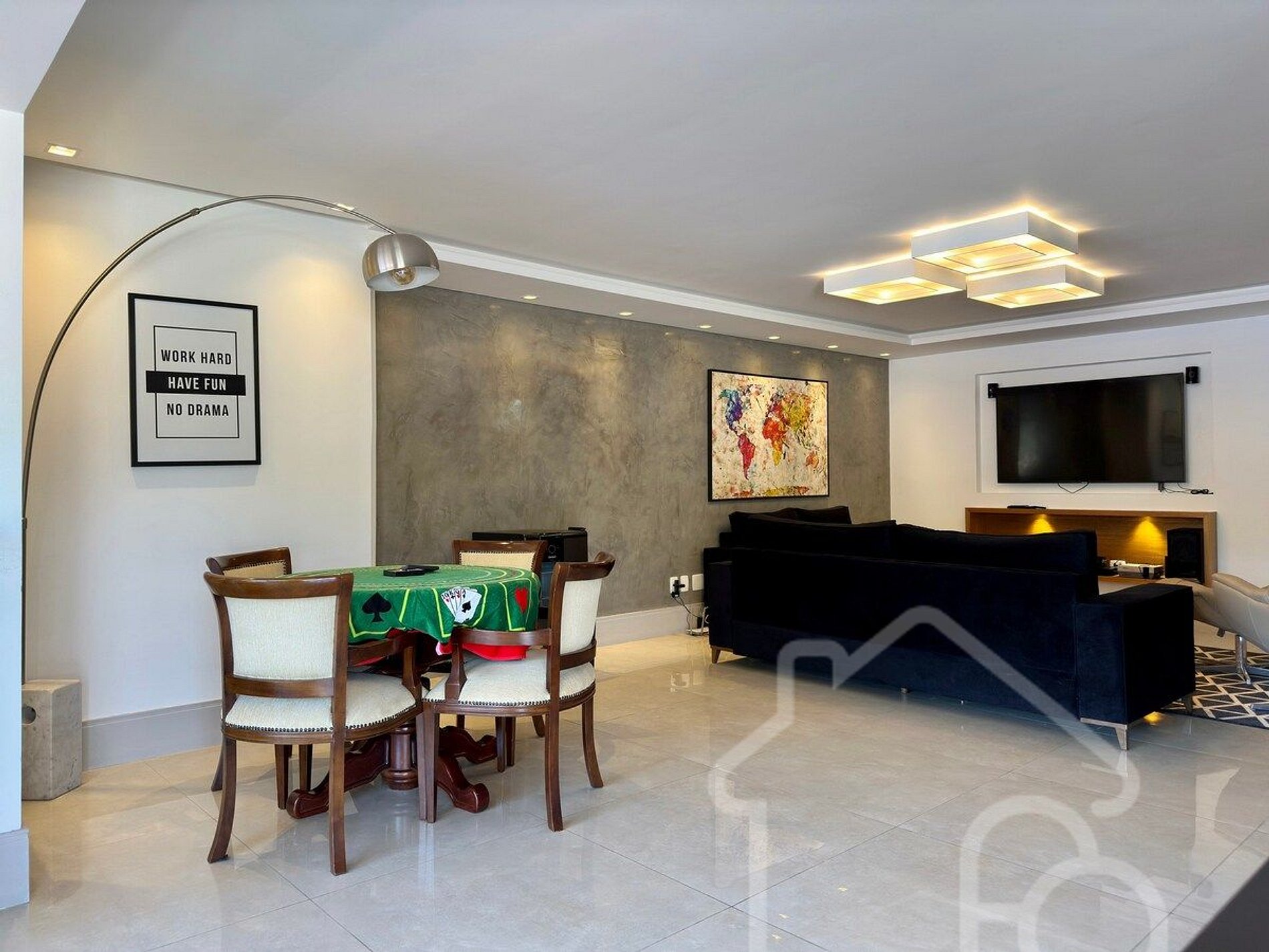 Área gourmet completa, equipada com churrasqueira, mesa de sinuca, mesa de poker, televisão de tela plana, sistema de som e rede, ideal para momentos de lazer e confraternização