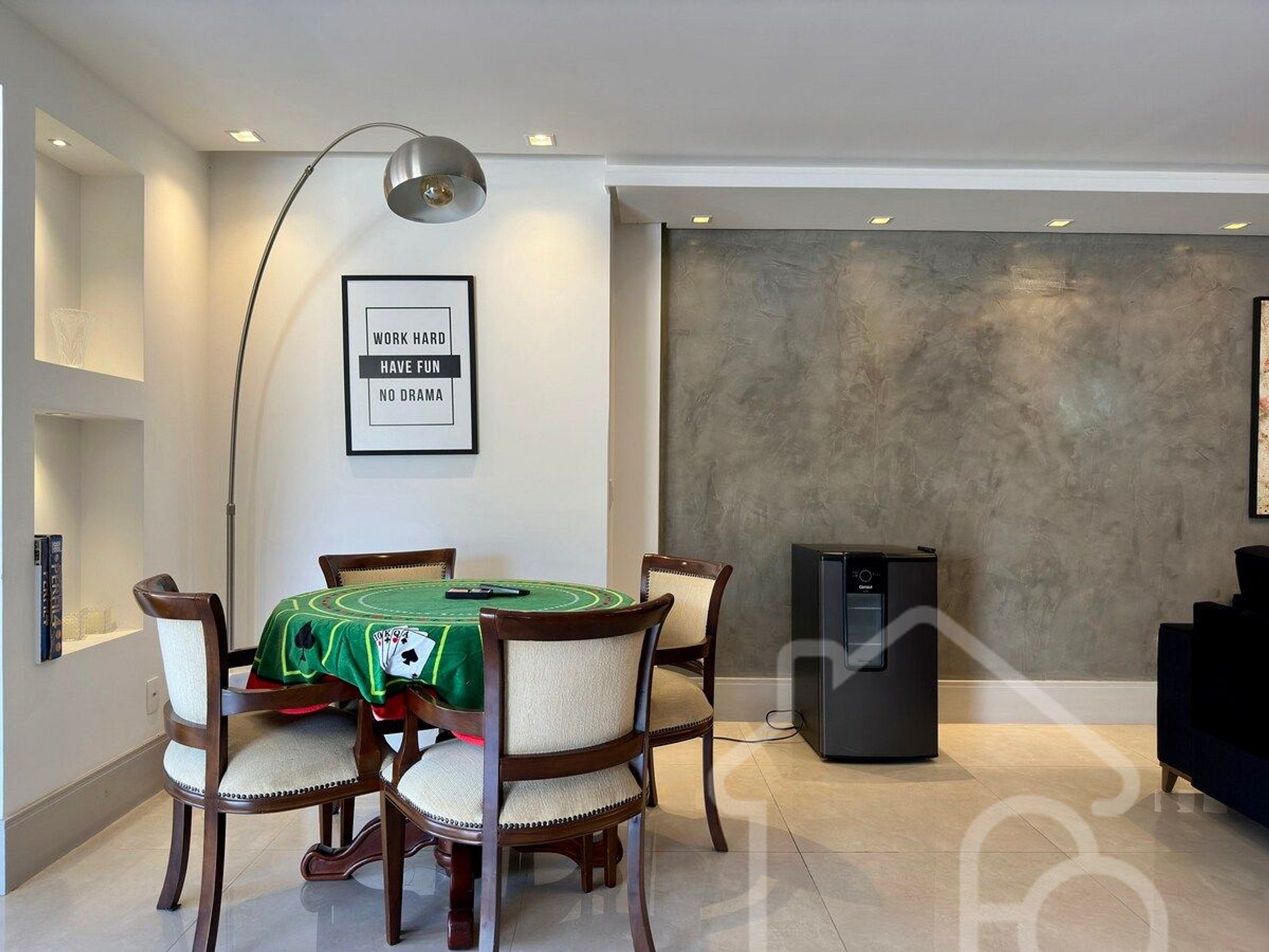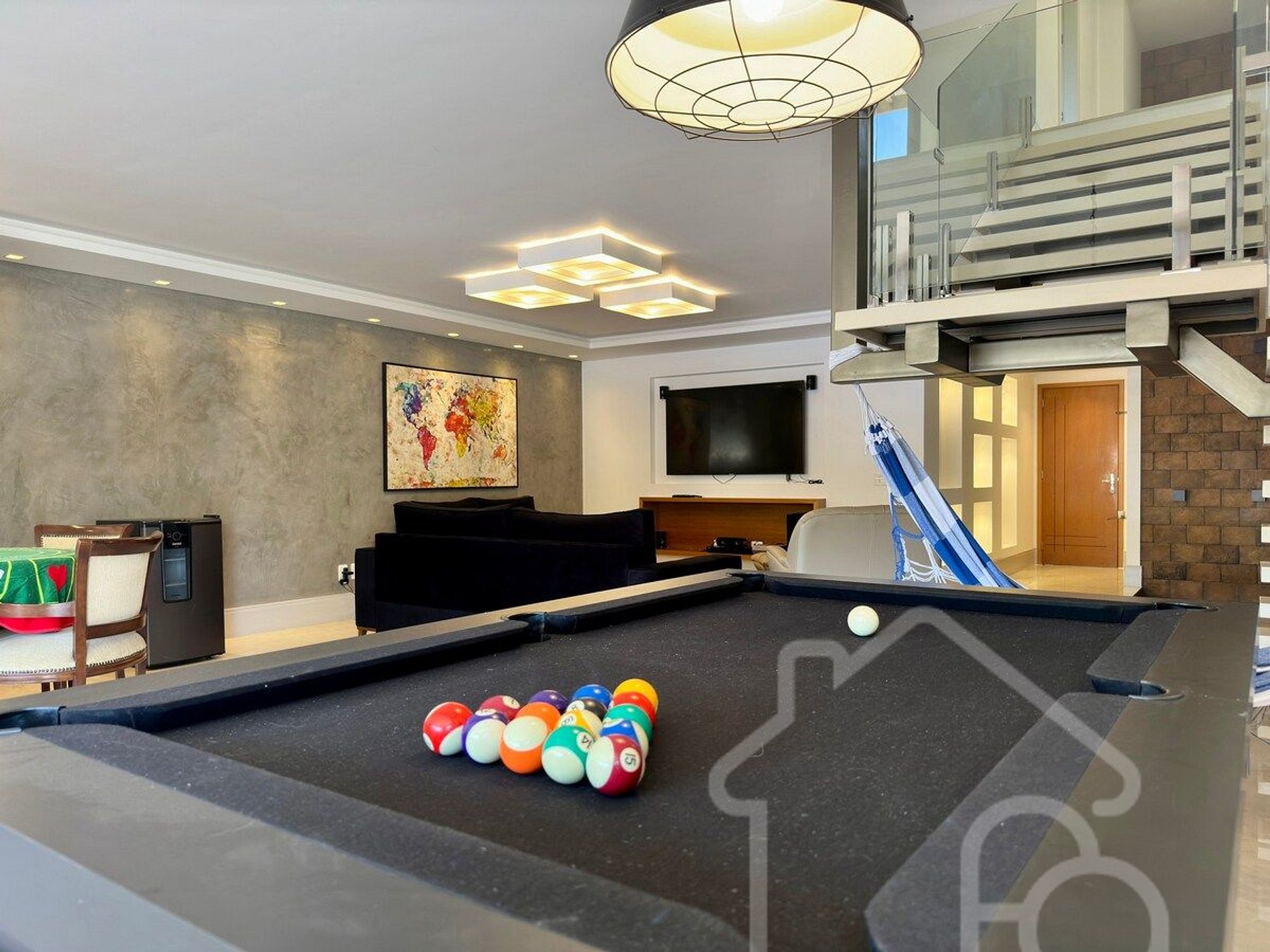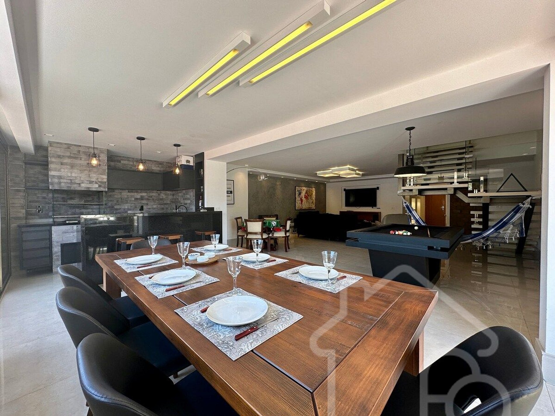 Área gourmet completa, equipada com churrasqueira, mesa de sinuca, mesa de poker, televisão de tela plana, sistema de som e rede, ideal para momentos de lazer e confraternização