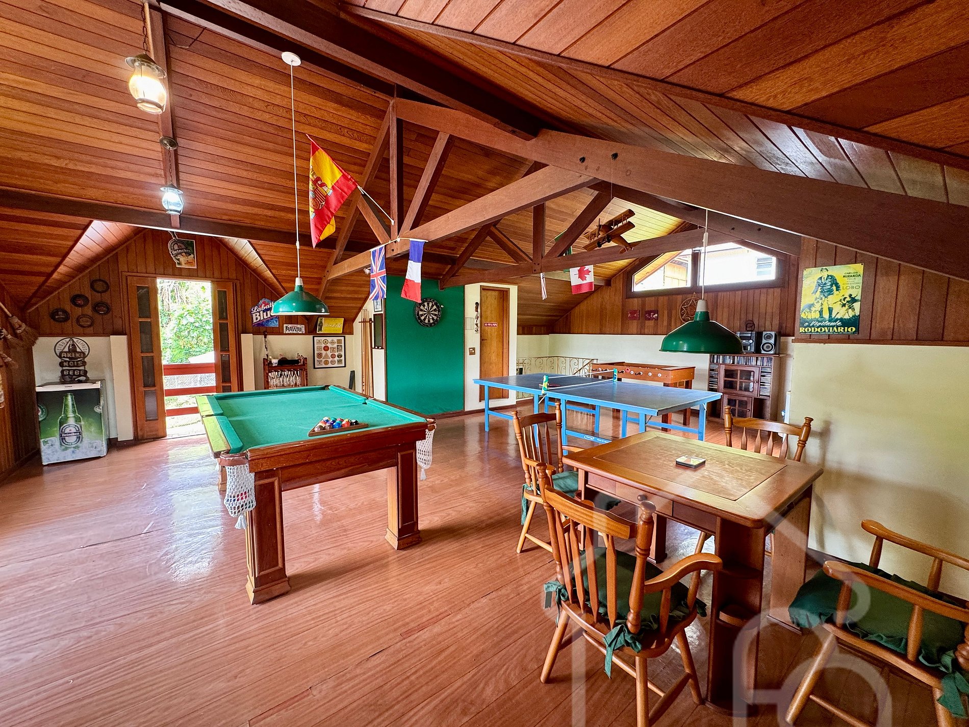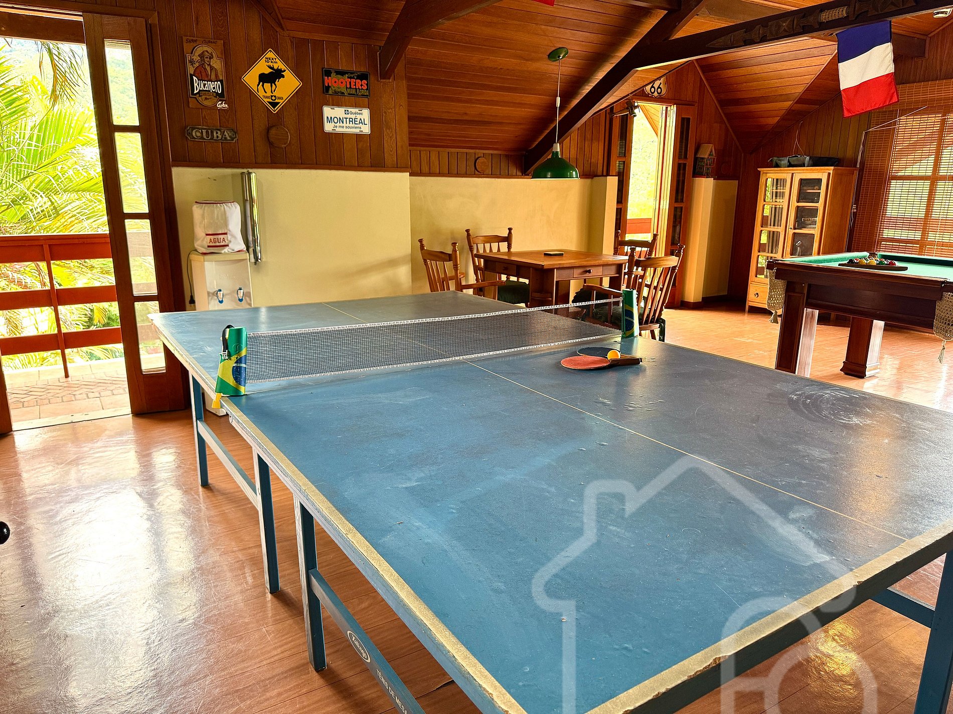 Casa ampla em Mury, Nova Friburgo, com capacidade para até 20 hóspedes. Possui 7 quartos, 5 banheiros e lavabo, sala de estar com lareira e TV, sala de jogos com ping-pong, sinuca e totó, cozinha completa com fogão, forno, geladeira, micro-ondas, torradeira e filtro de água. Conta com garagem, varanda, ambiente tranquilo e ótima área de lazer, ideal para grupos, famílias, confraternizações e momentos de descanso na serra.