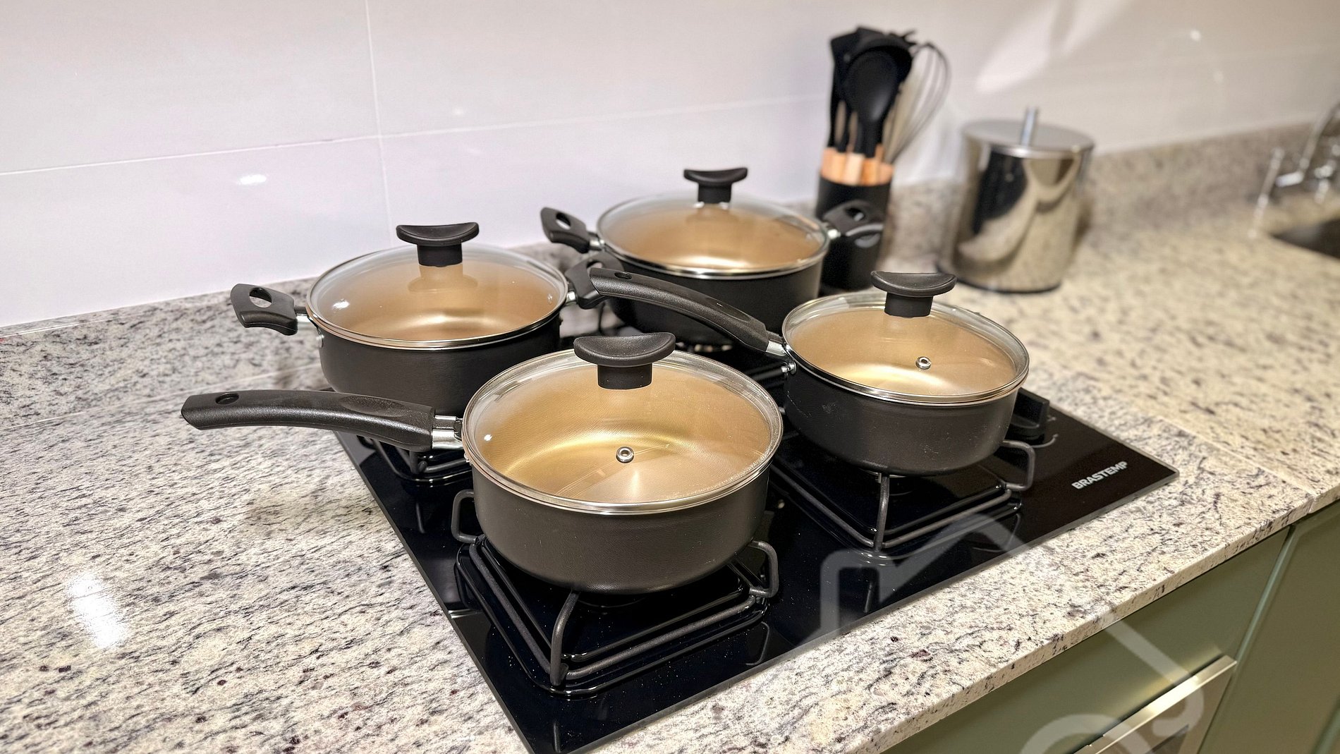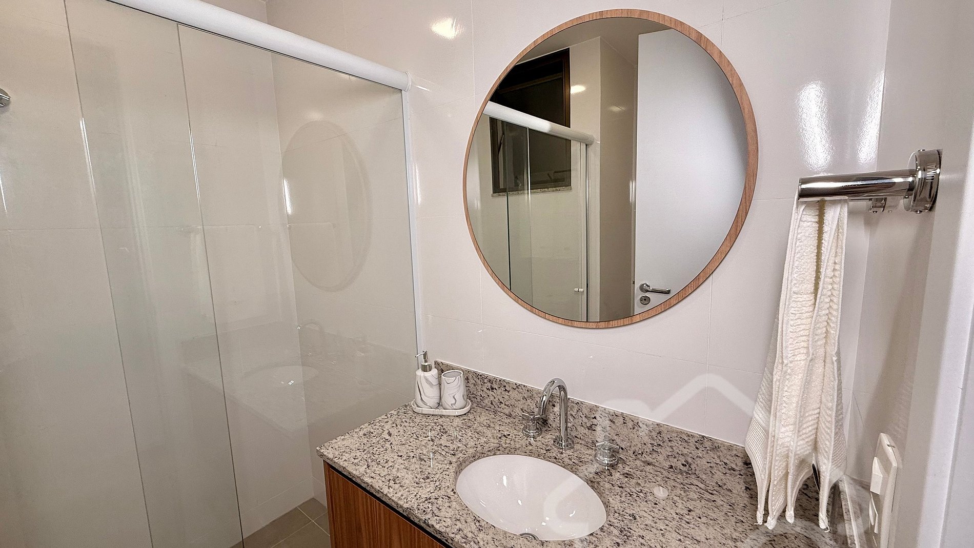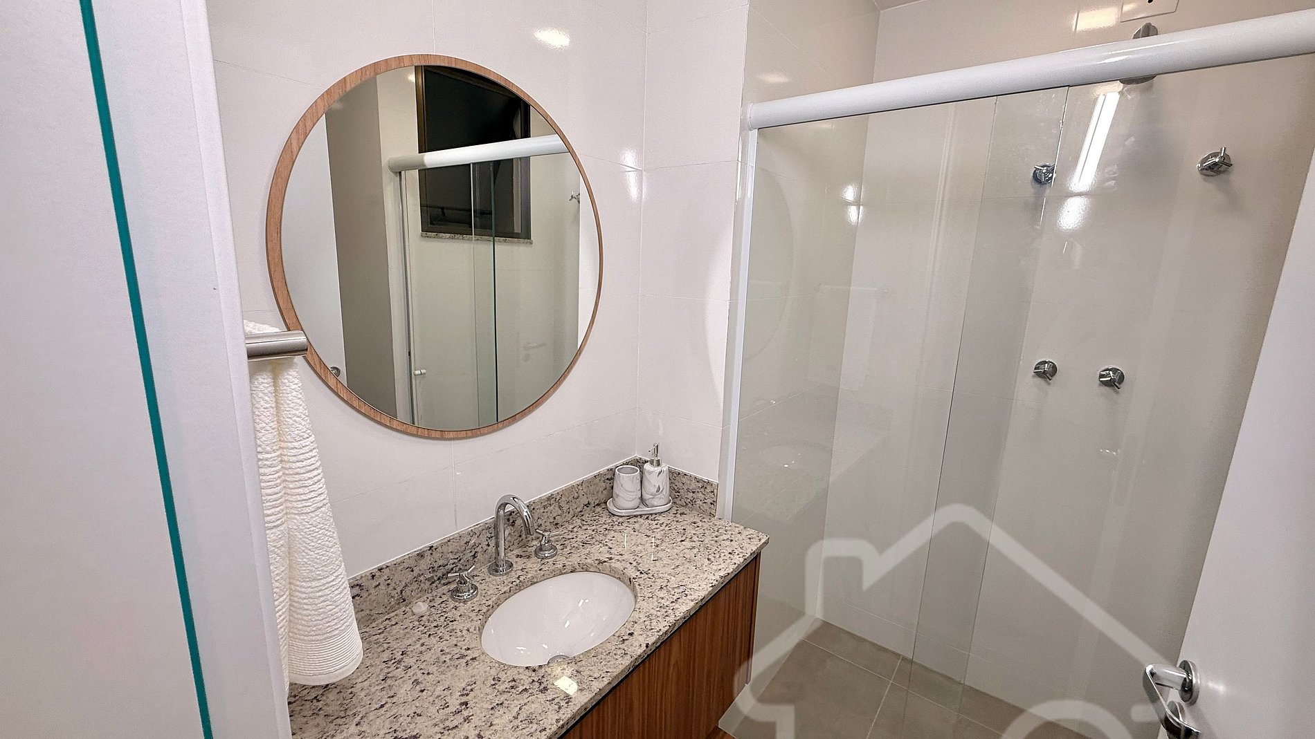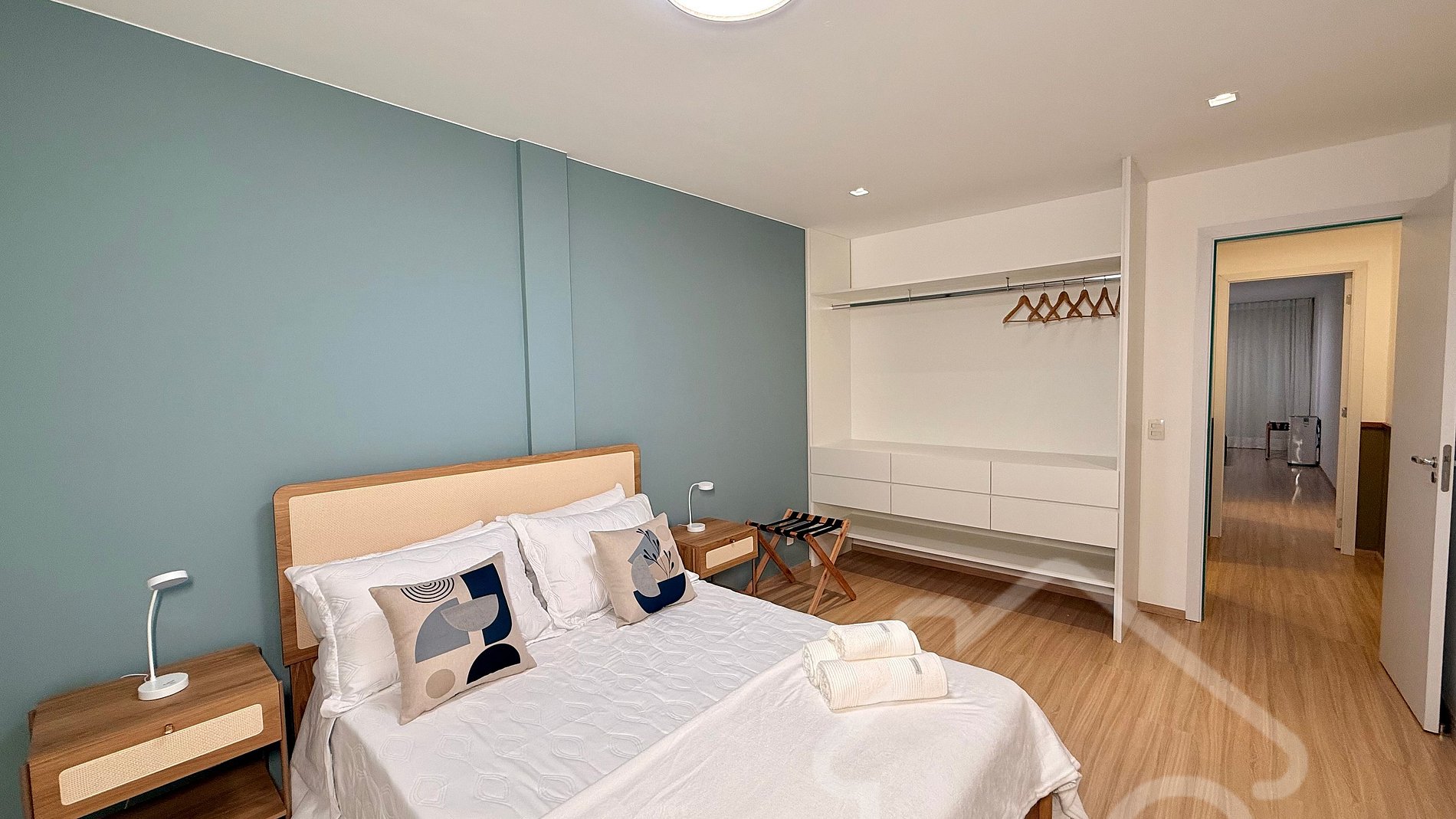 - Cozinha moderna totalmente equipada: cooktop, forno, micro-ondas, airfryer, cafeteira e geladeira.