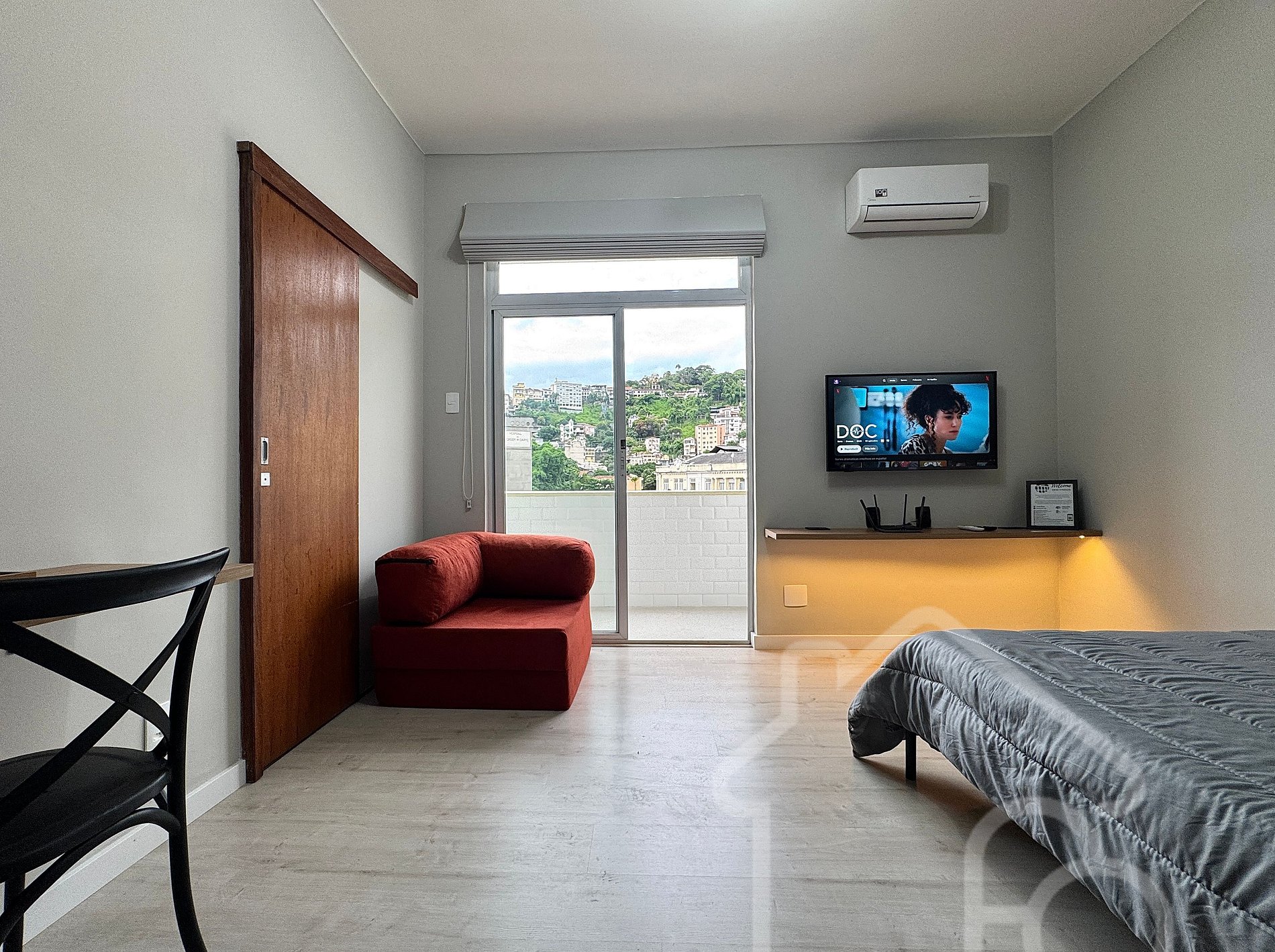 - Quarto confortável com cama de casal, sofá-cama solteiro (pequeno), ar-condicionado e Smart TV