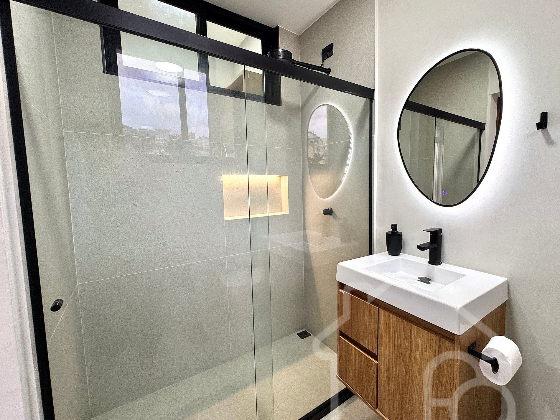 - Banheiro social moderno e clean