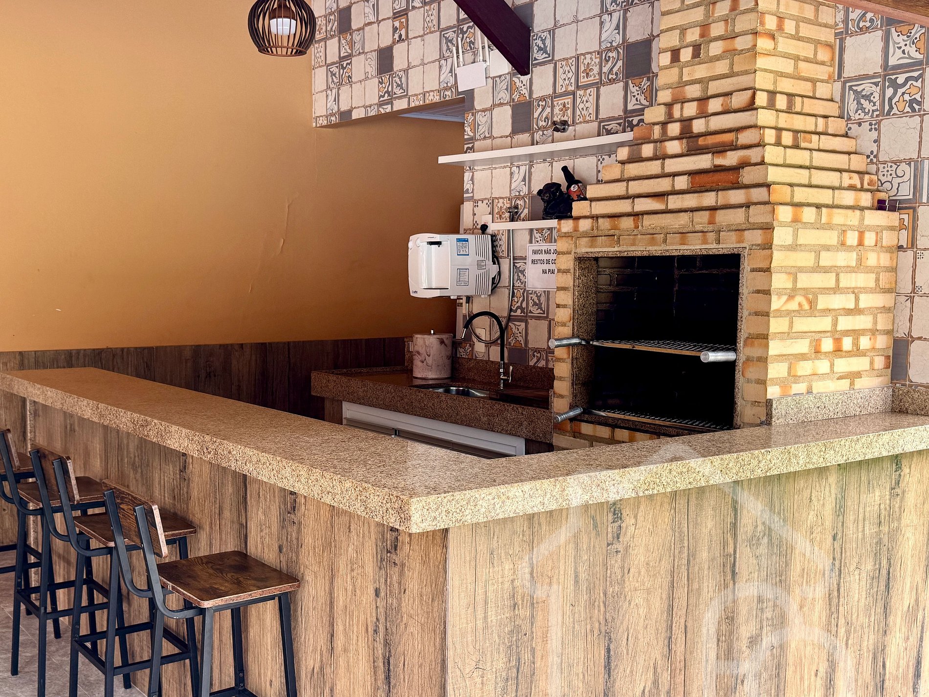 - Espaço gourmet com churrasqueira, pia, geladeira e freezer