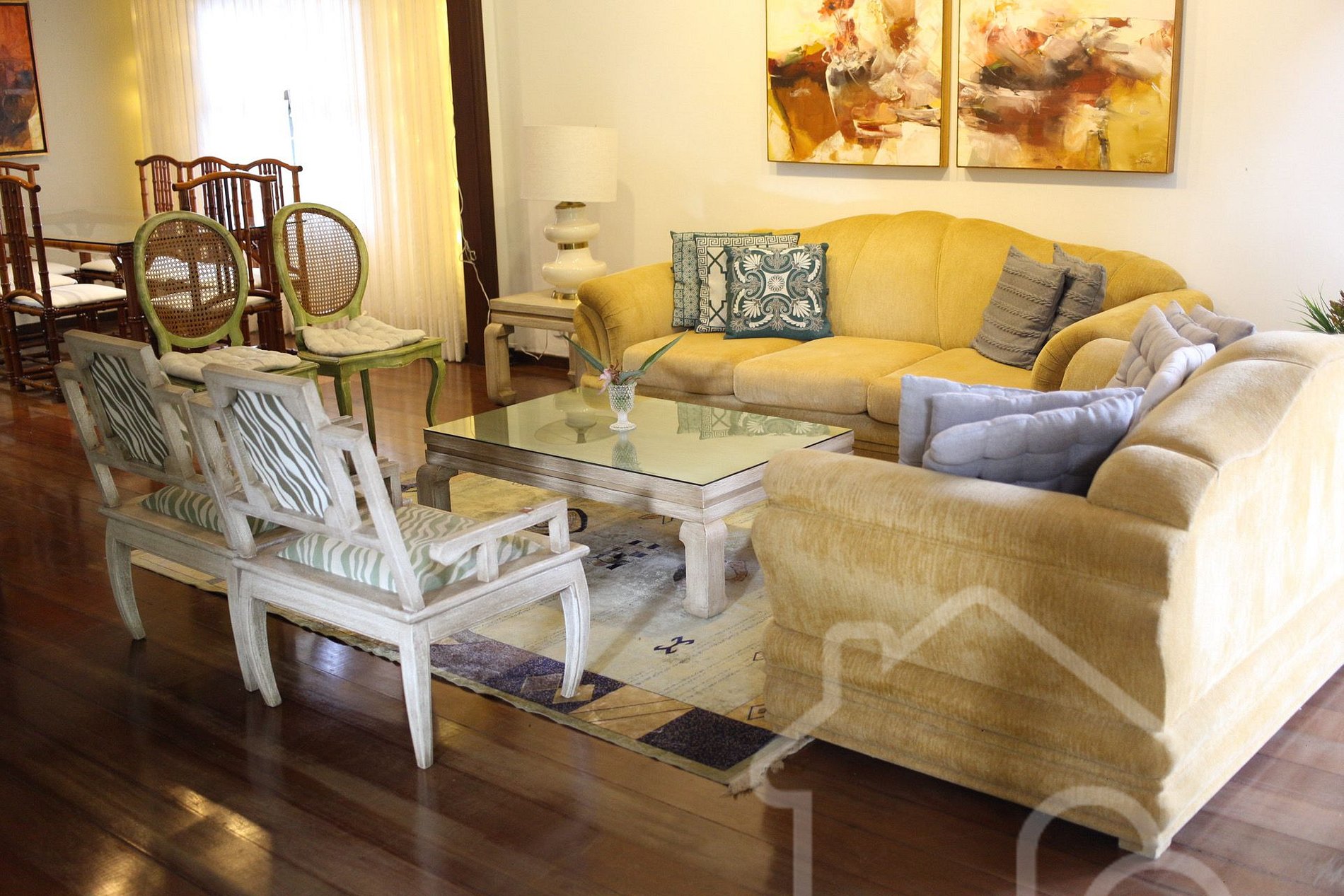 Sala de estar integrada à sala de jantar