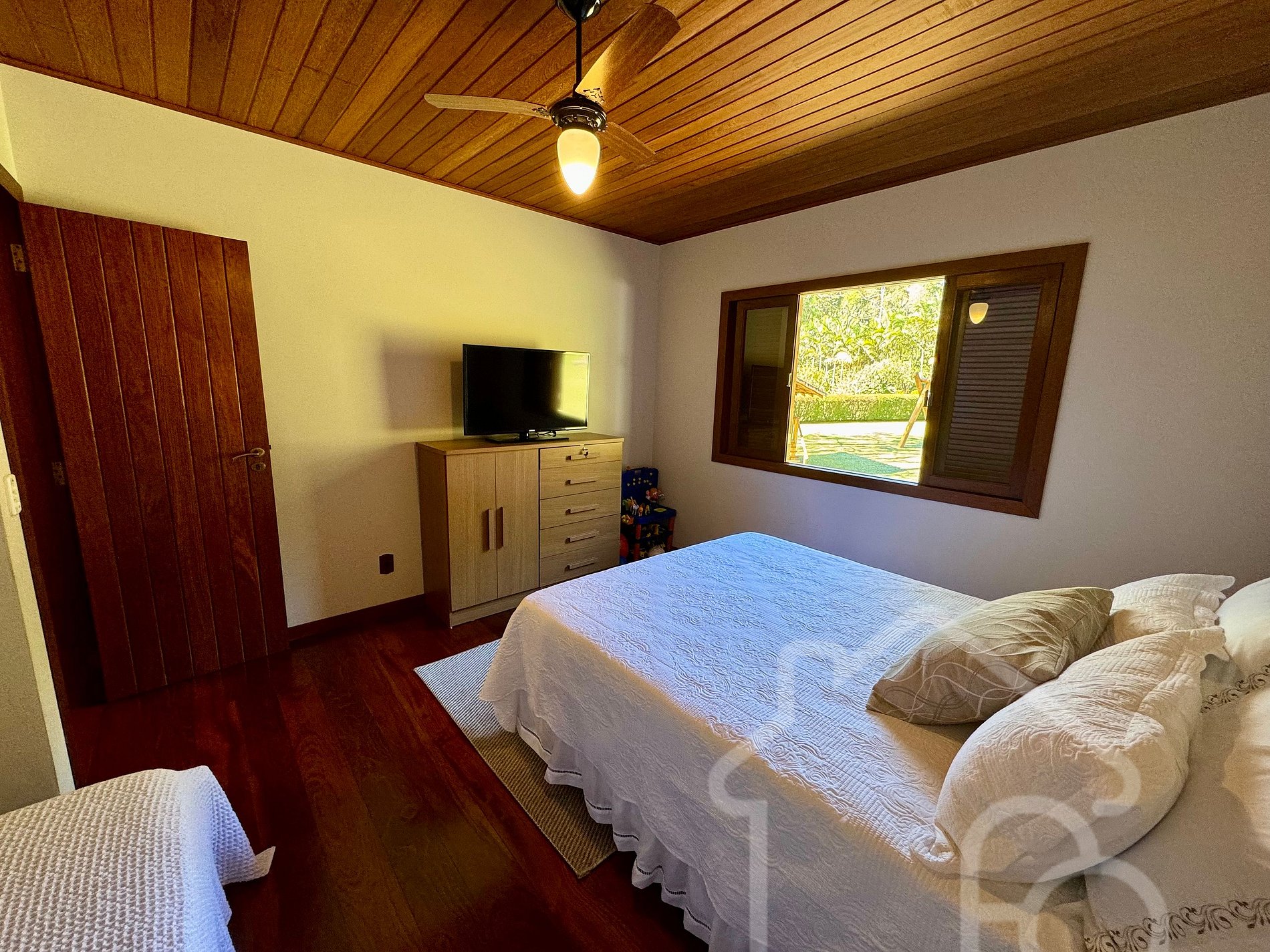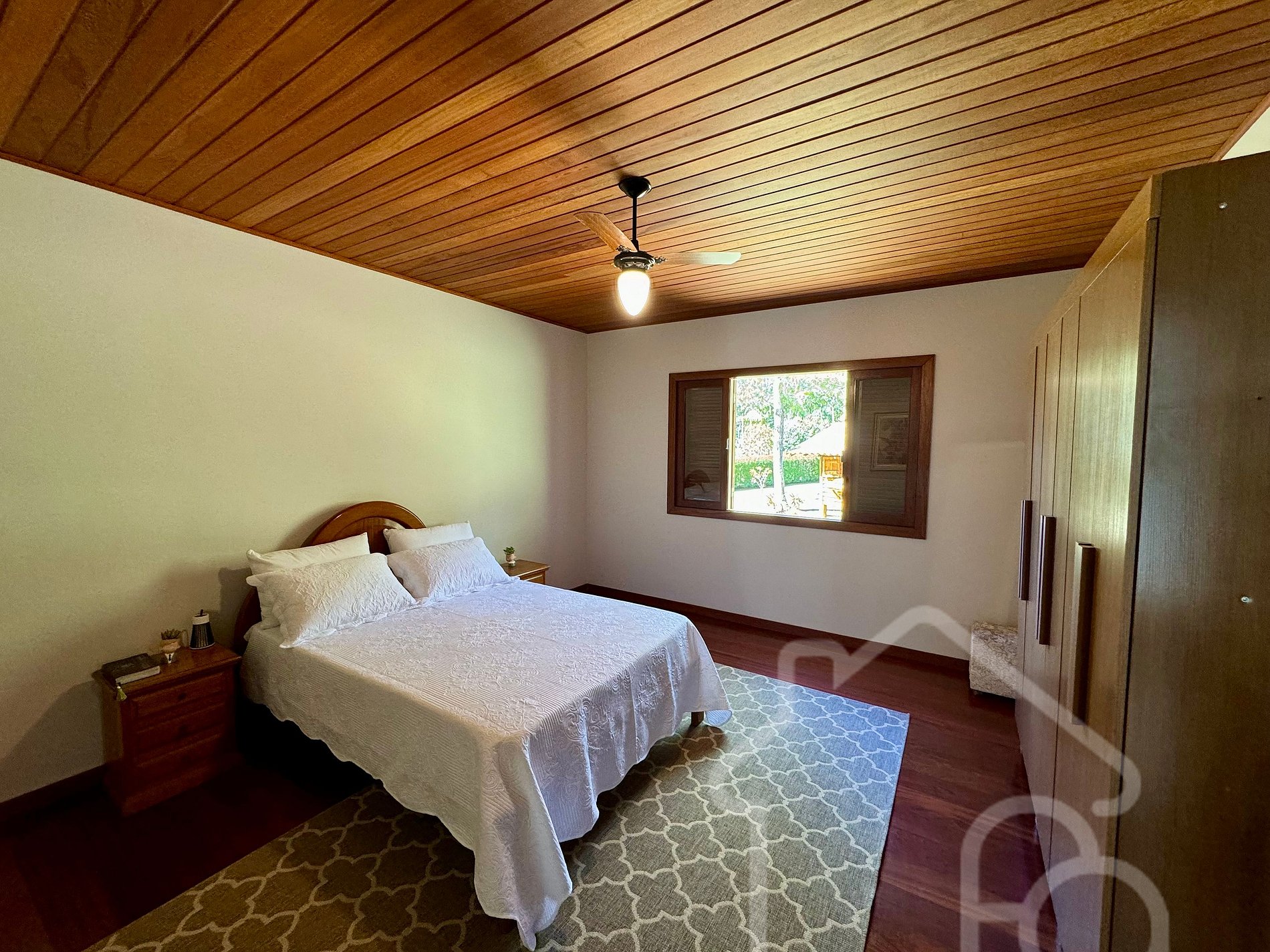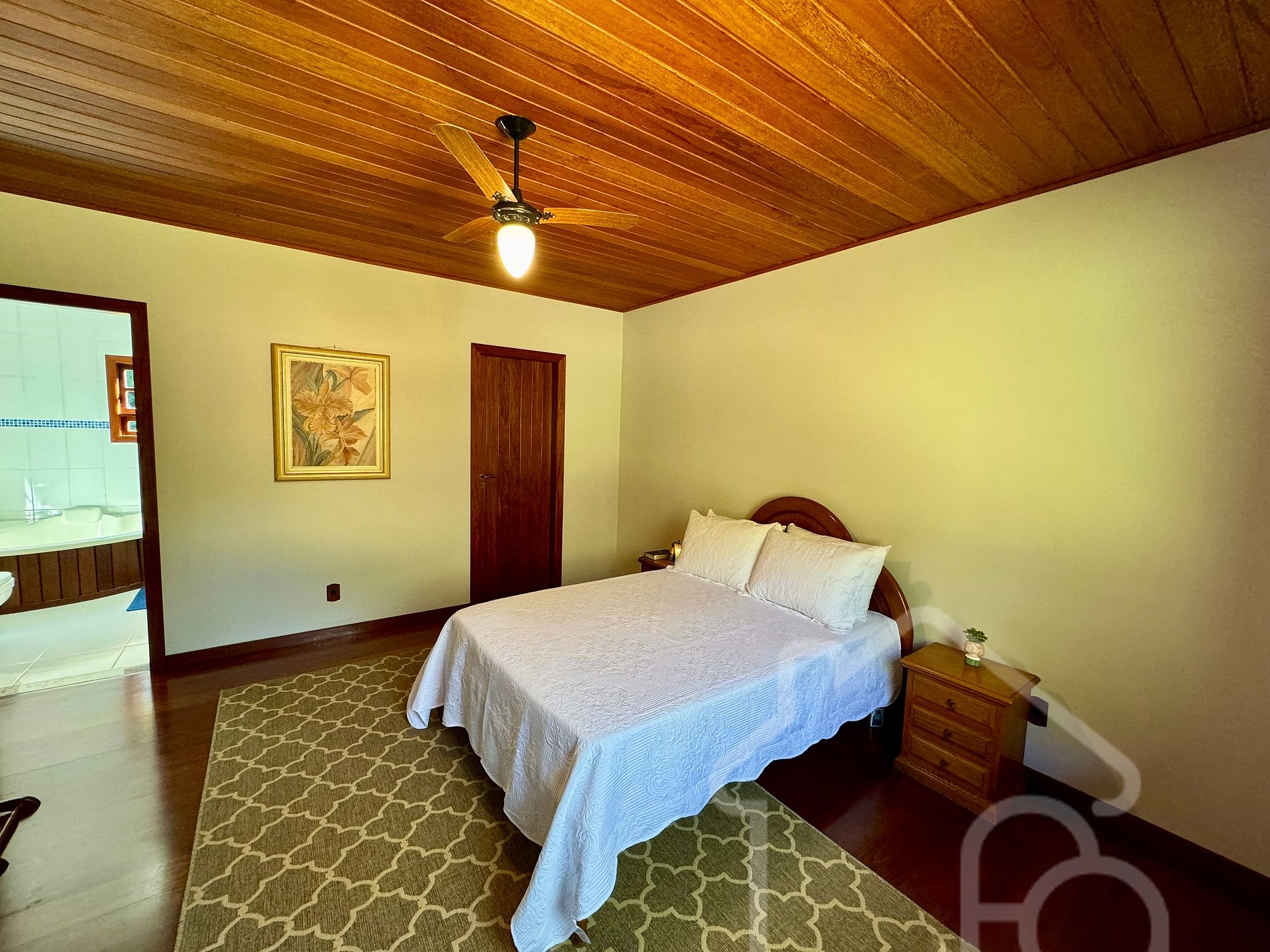 Uma suíte com cama de casal.