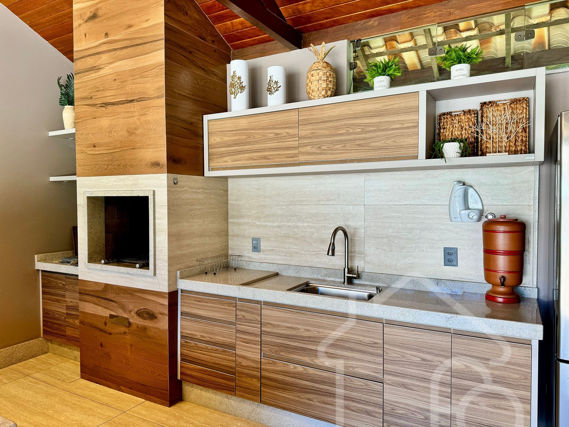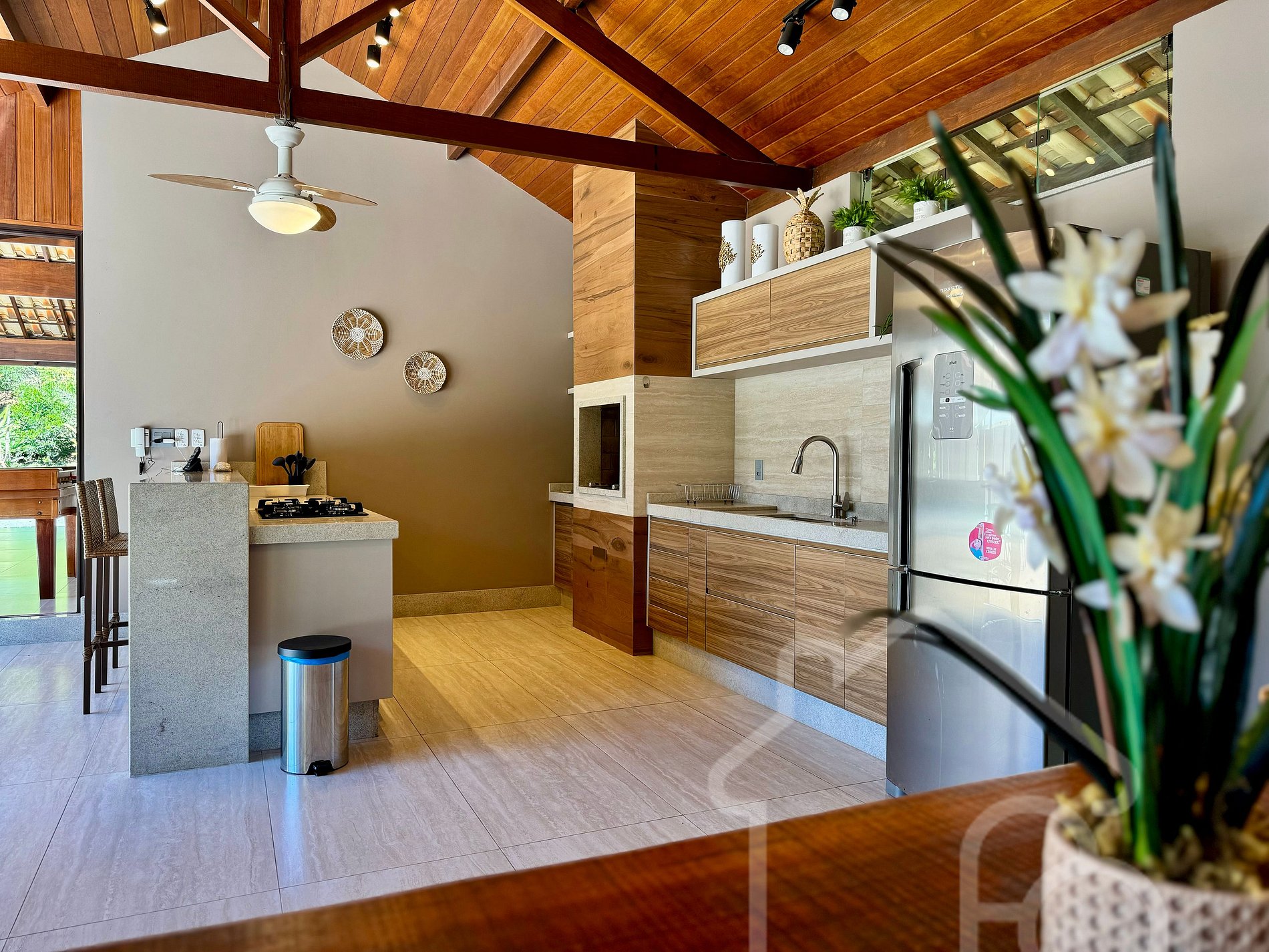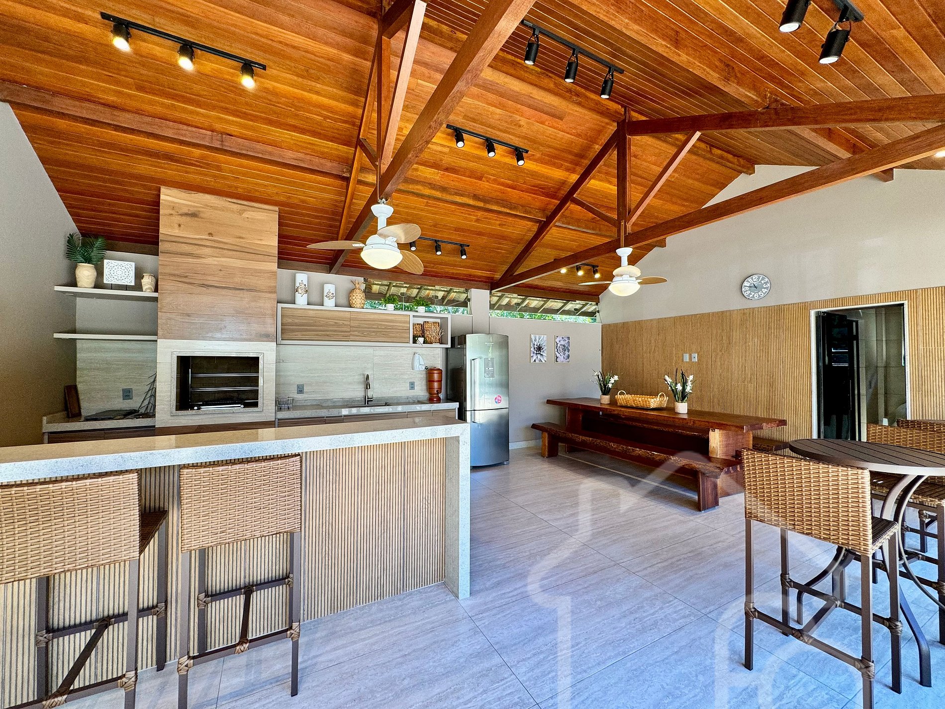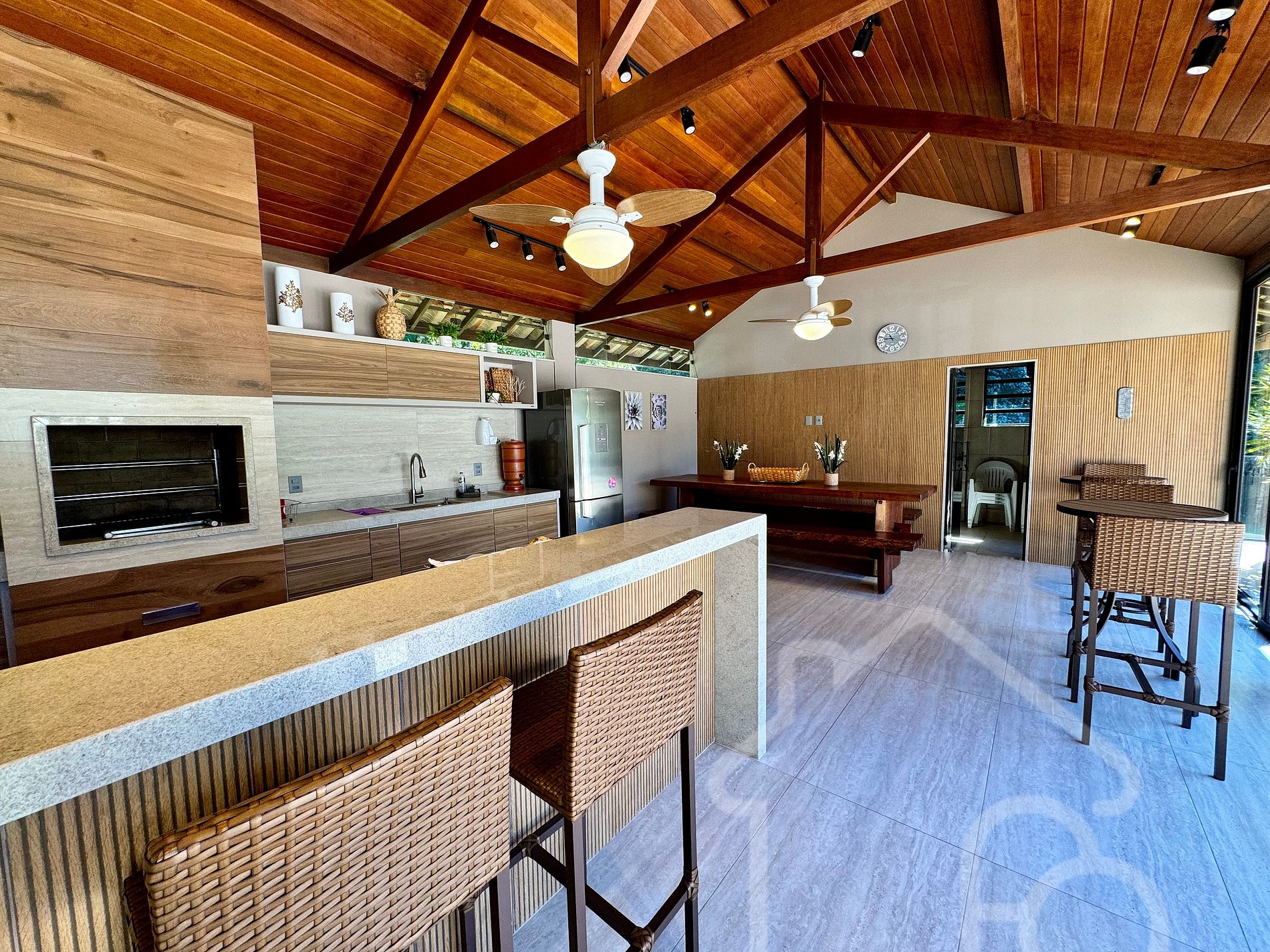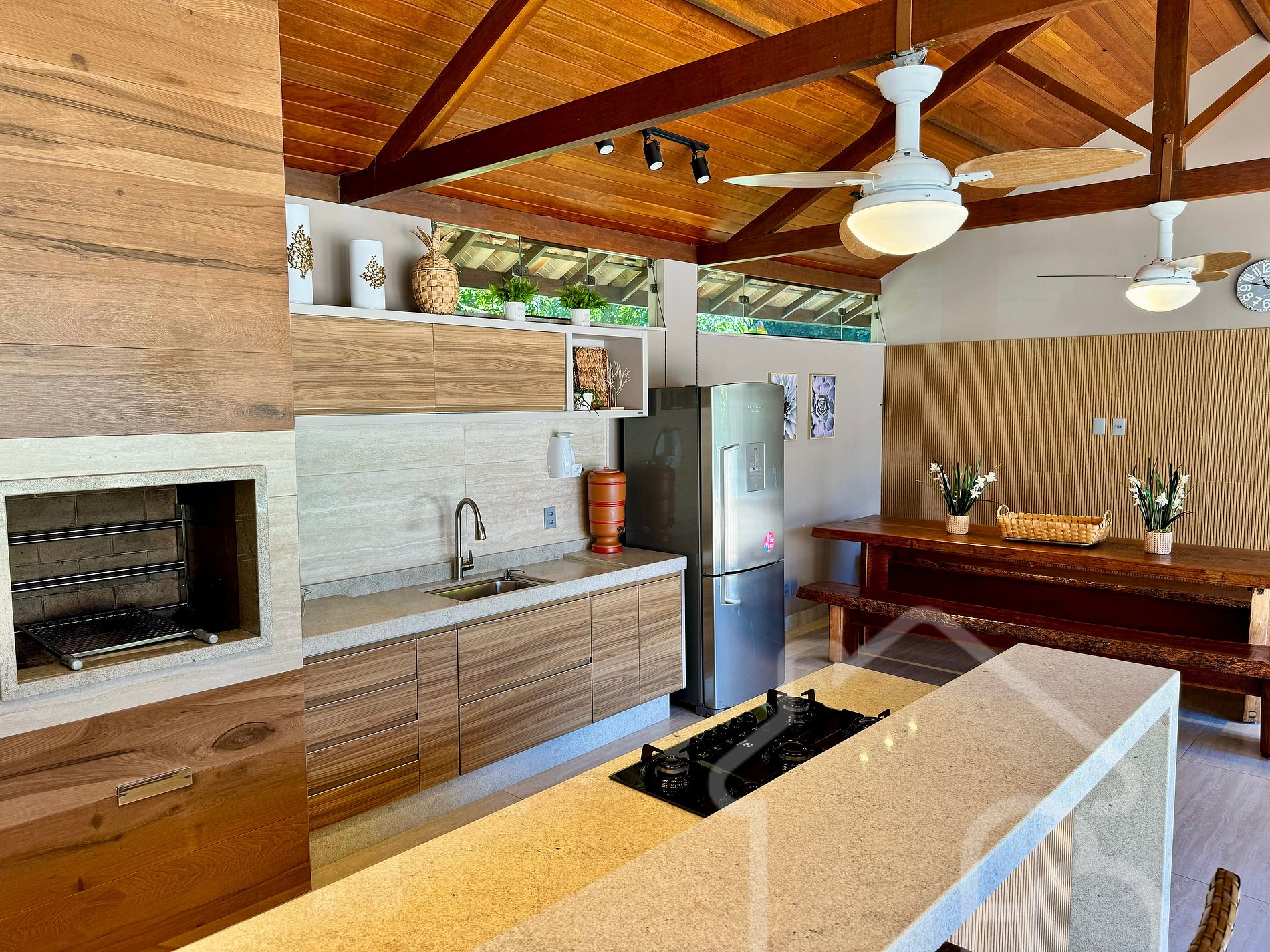 Área gourmet completa com churrasqueira, freezer e todos os utensílios.