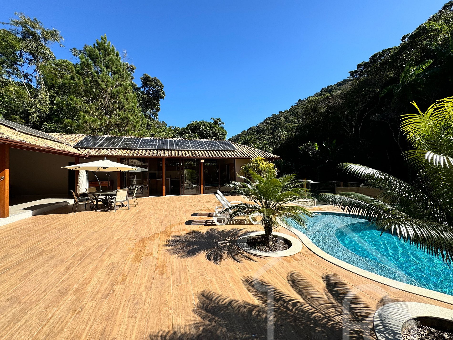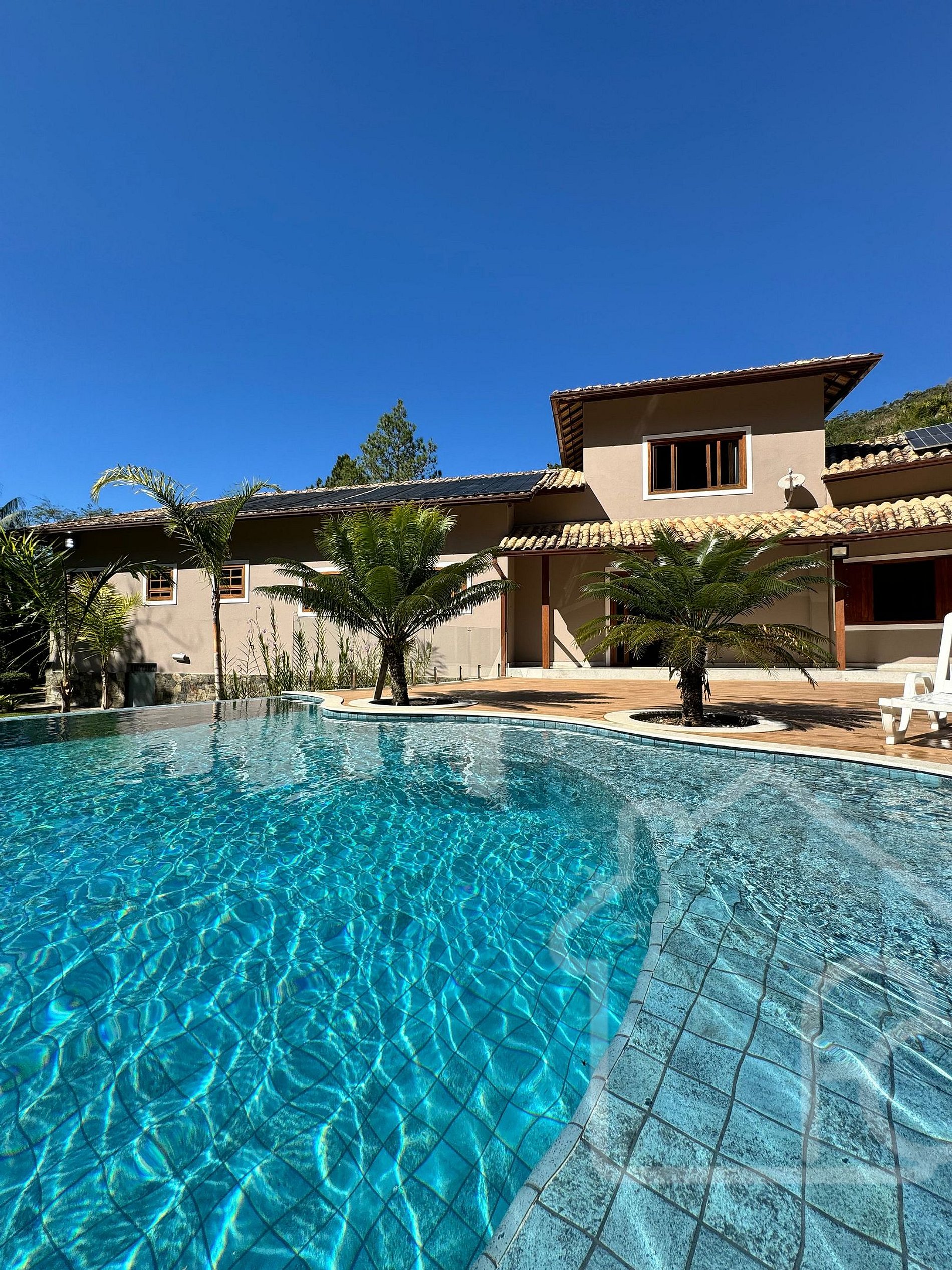 A piscina é aquecida por energia solar (placas solares). Caso não tenha sol, a piscina poderá não ser aquecida.