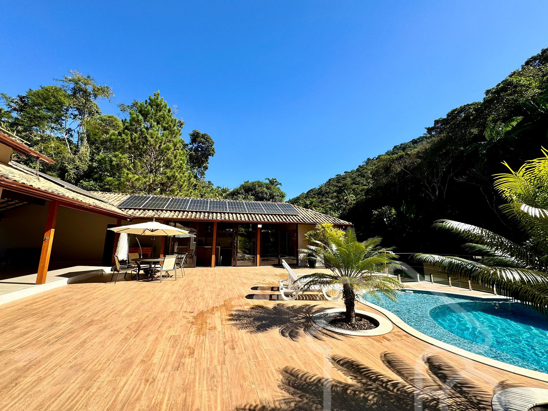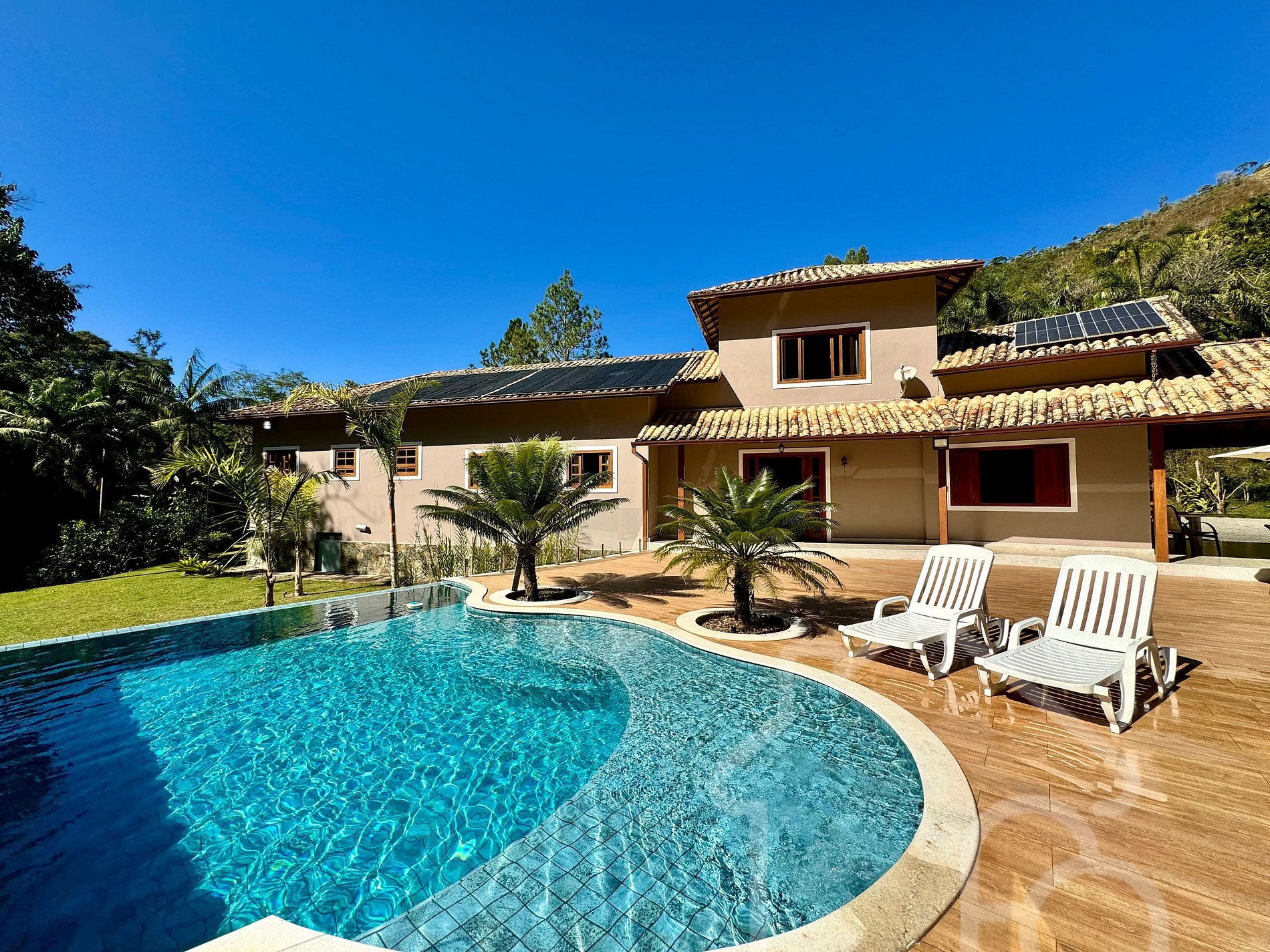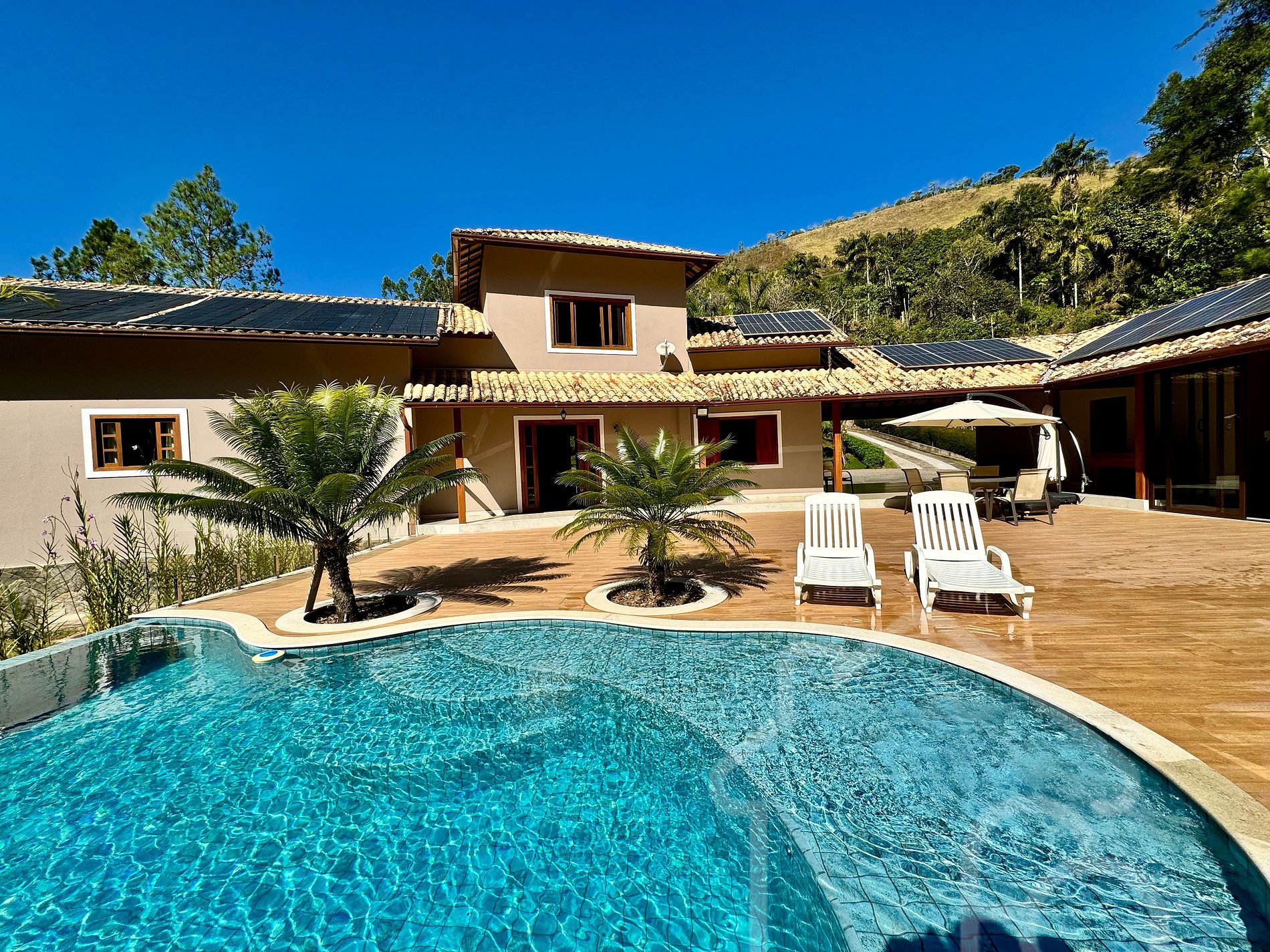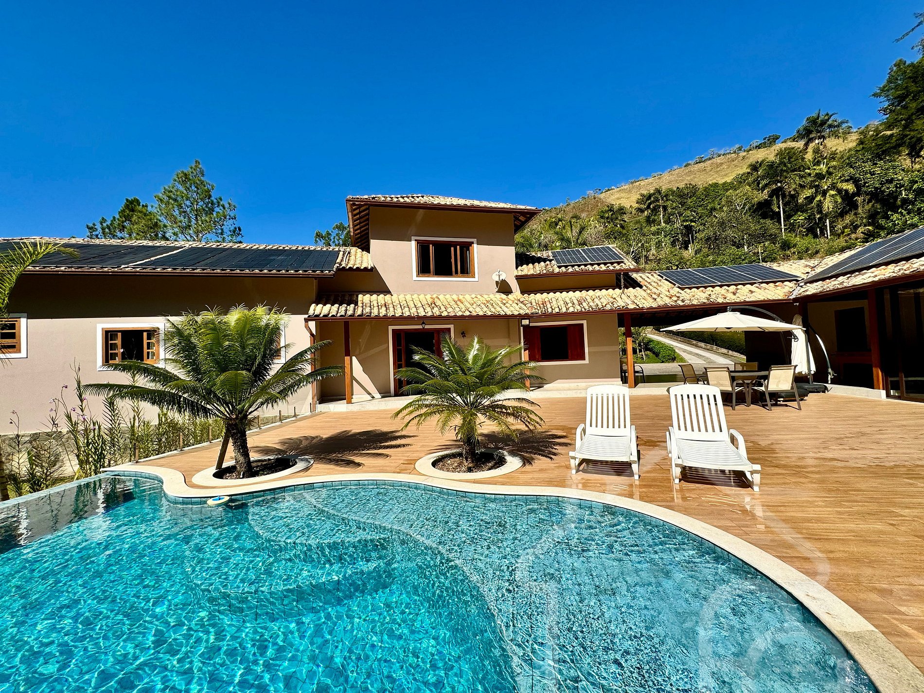 Piscina climatizada e espreguiçadeiras ( aquecida por energia solar )