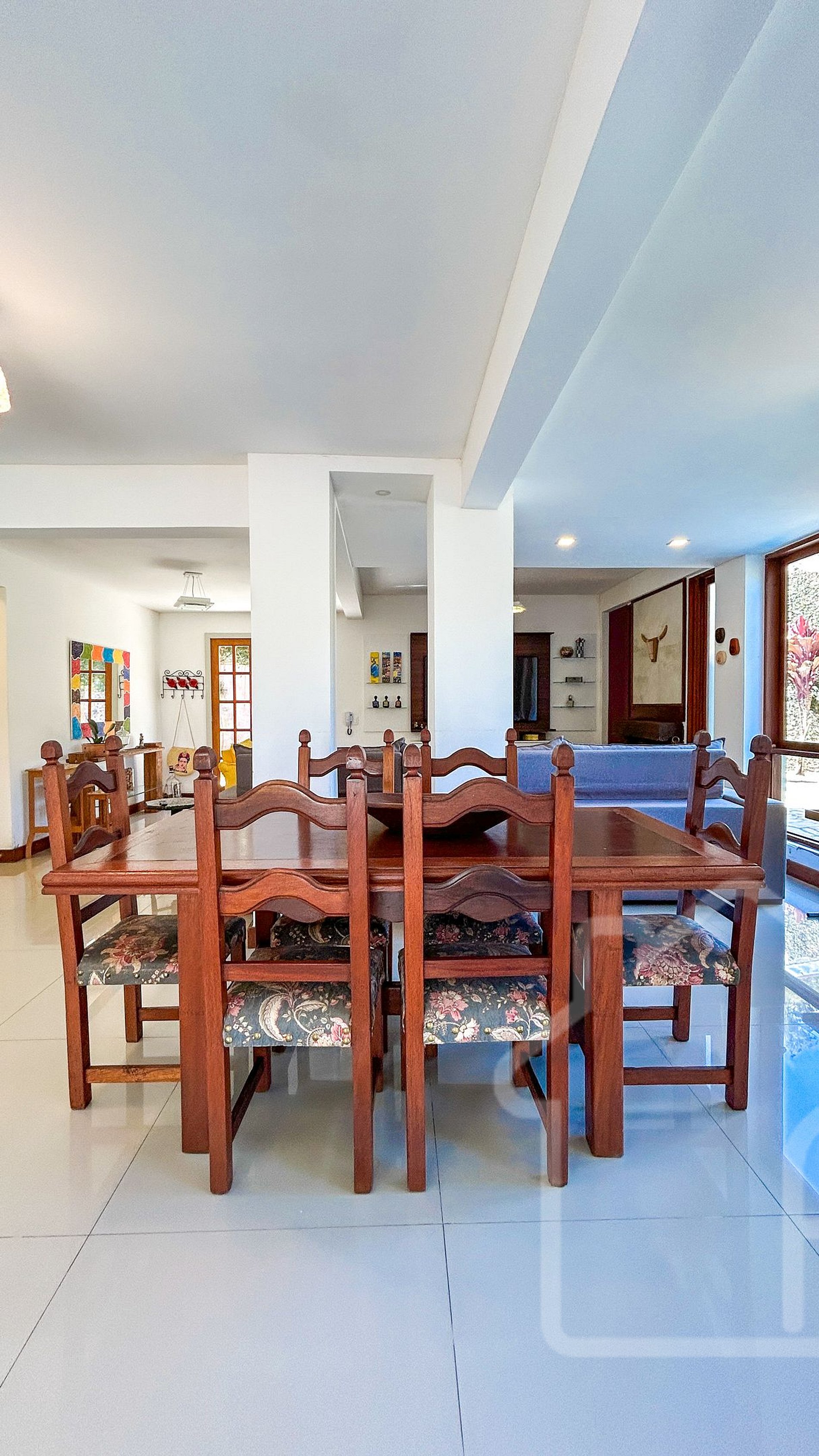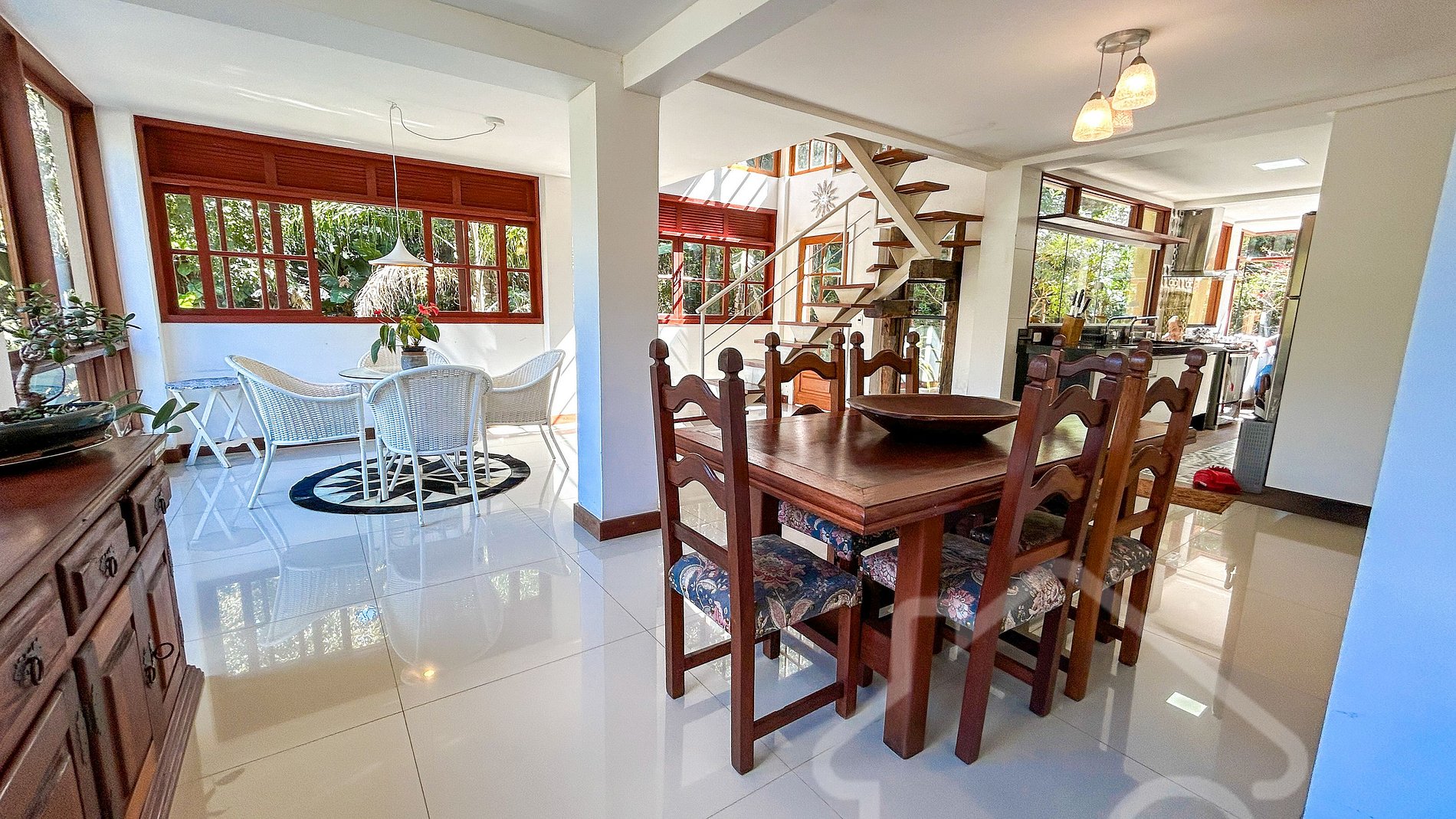 Com 04 quartos, incluindo uma suíte, a casa é ideal para acomodar famílias e grupos com estilo. A área de lazer conta com uma piscina para momentos de diversão, e a aconchegante lareira adiciona um toque especial ao ambiente.
