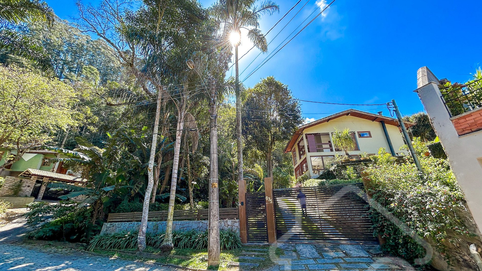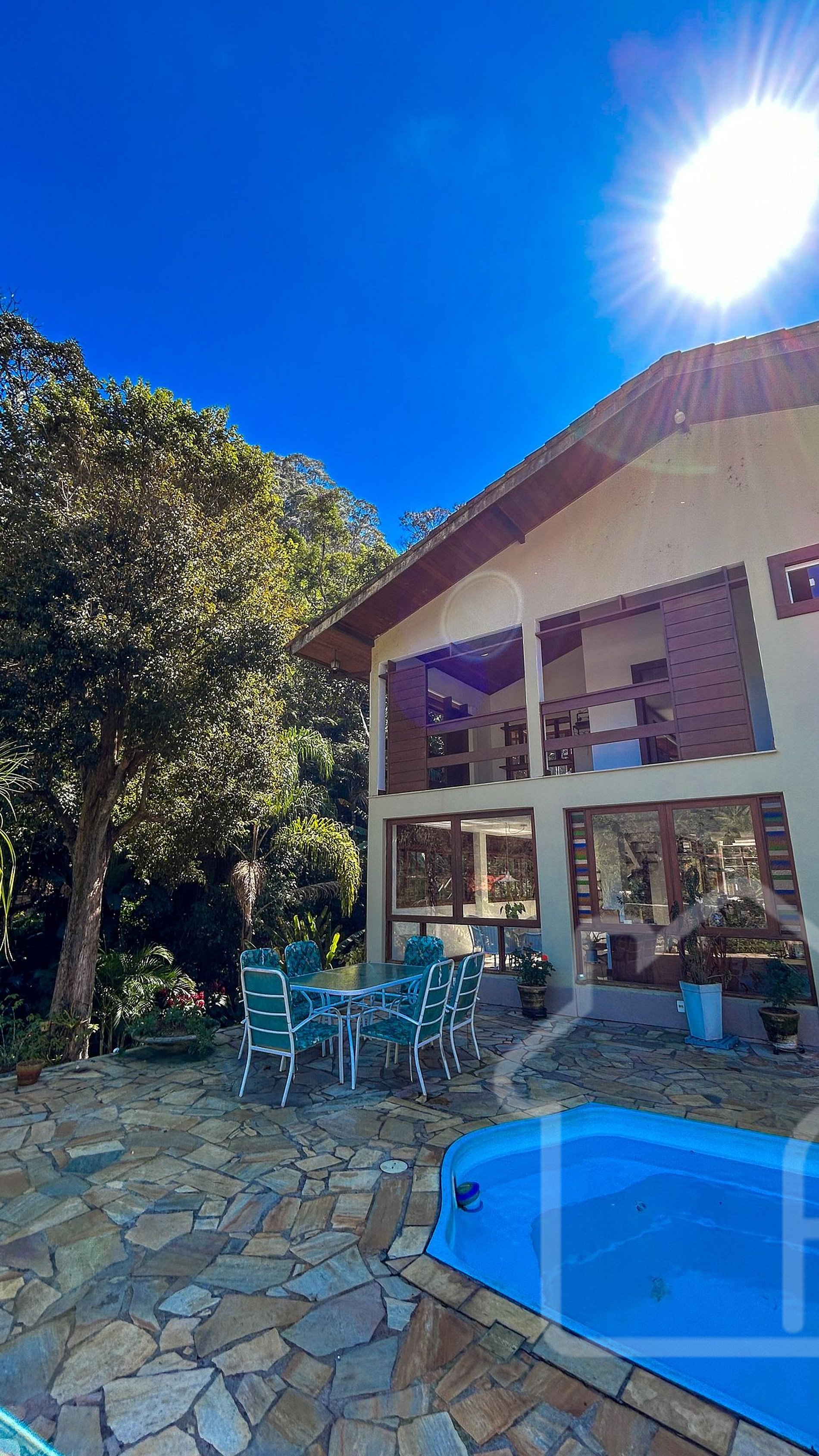 Desfrute de uma estadia inesquecível no Parque Dom João, a 10 minutos do centro de Nova Friburgo. Esta casa ampla e elegante possui piscina privativa, sala com lareira, 4 quartos (sendo uma suíte), 3 banheiros completos, e cozinha totalmente equipada. Com dois ambientes de estar e uma vista deslumbrante, é o refúgio perfeito para relaxar e apreciar a natureza. Garagem disponível. Ideal para quem busca conforto e tranquilidade na serra.
