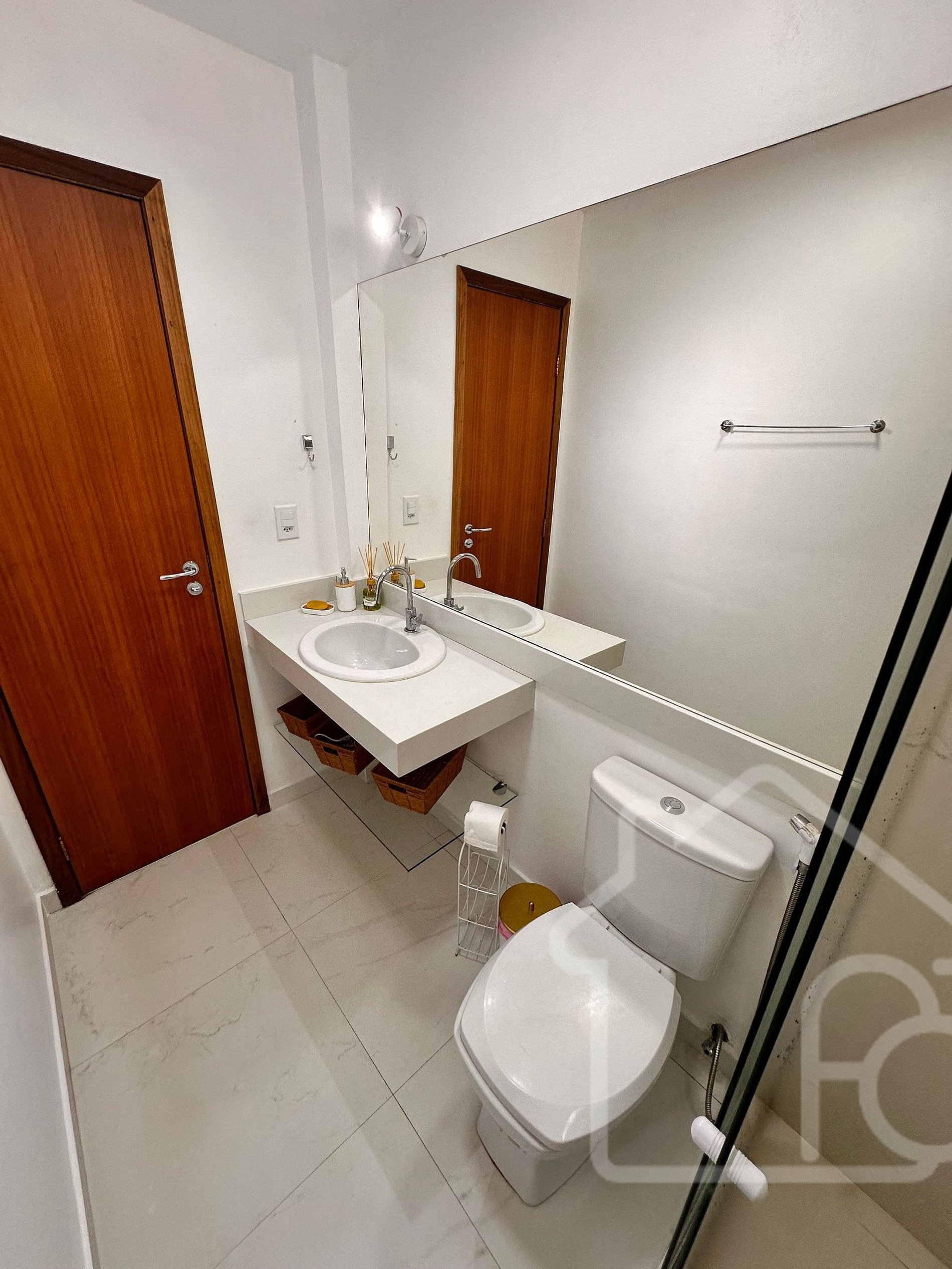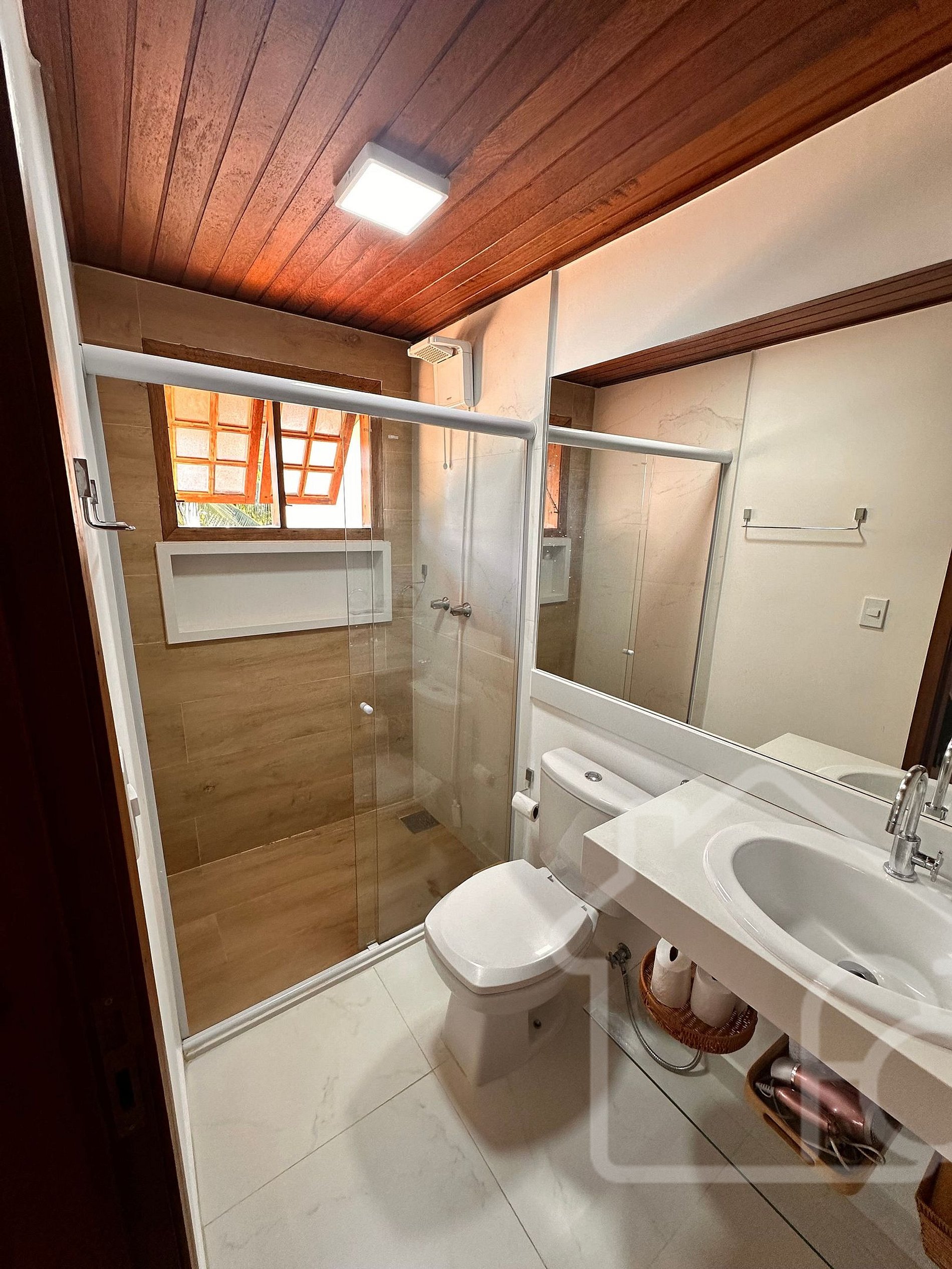 - Banheiro Social: Serve os dois quartos do primeiro andar, completo e bem equipado. Disponibilizamos secador de cabelo e itens básicos (papel higiênico e sabonetes).