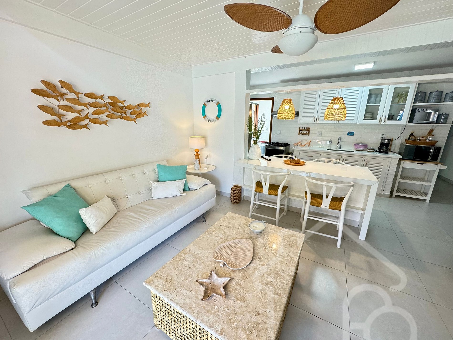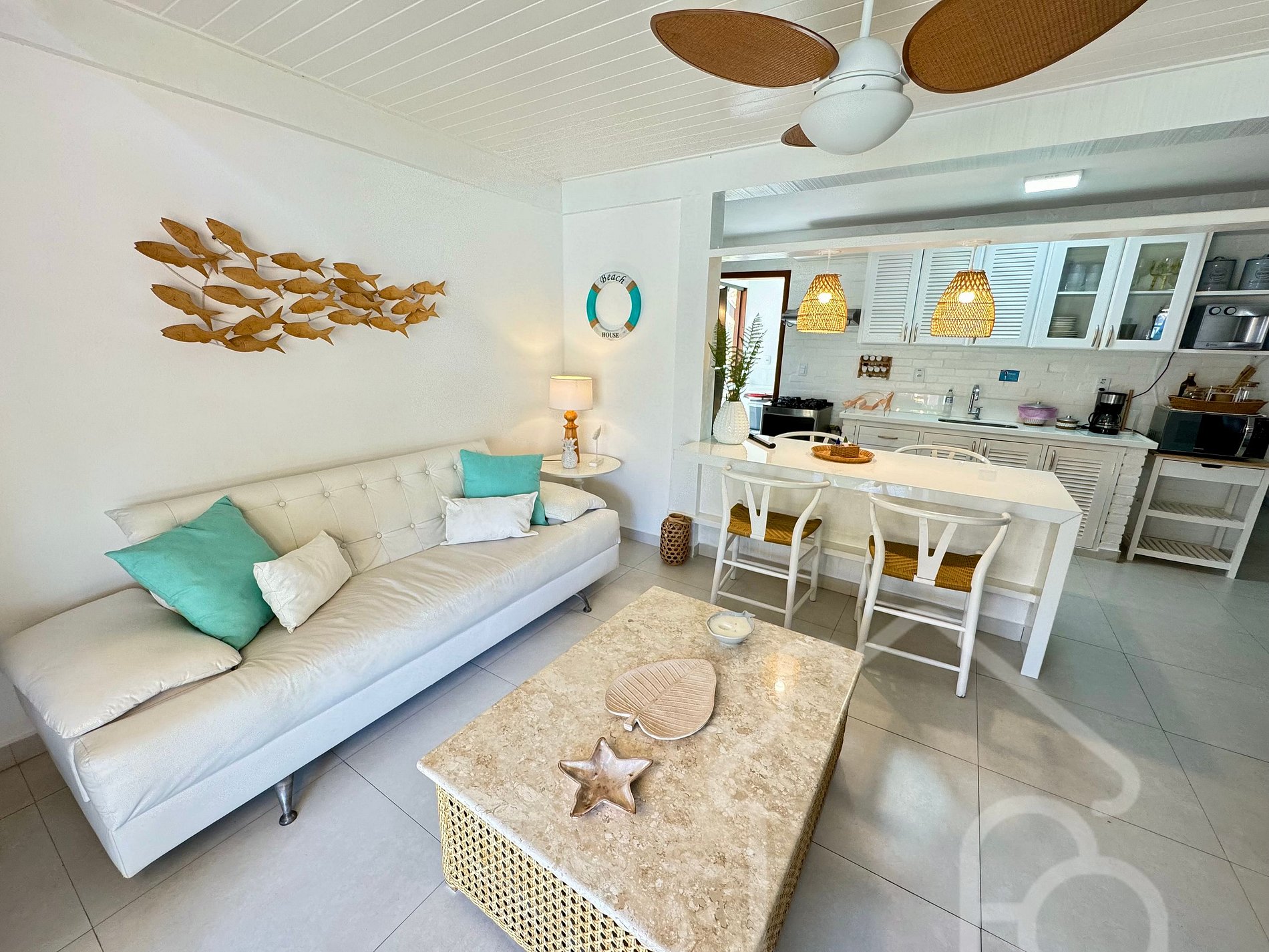 A casa está a apenas 4 minutos a pé da Praia de Manguinhos e é composta por: