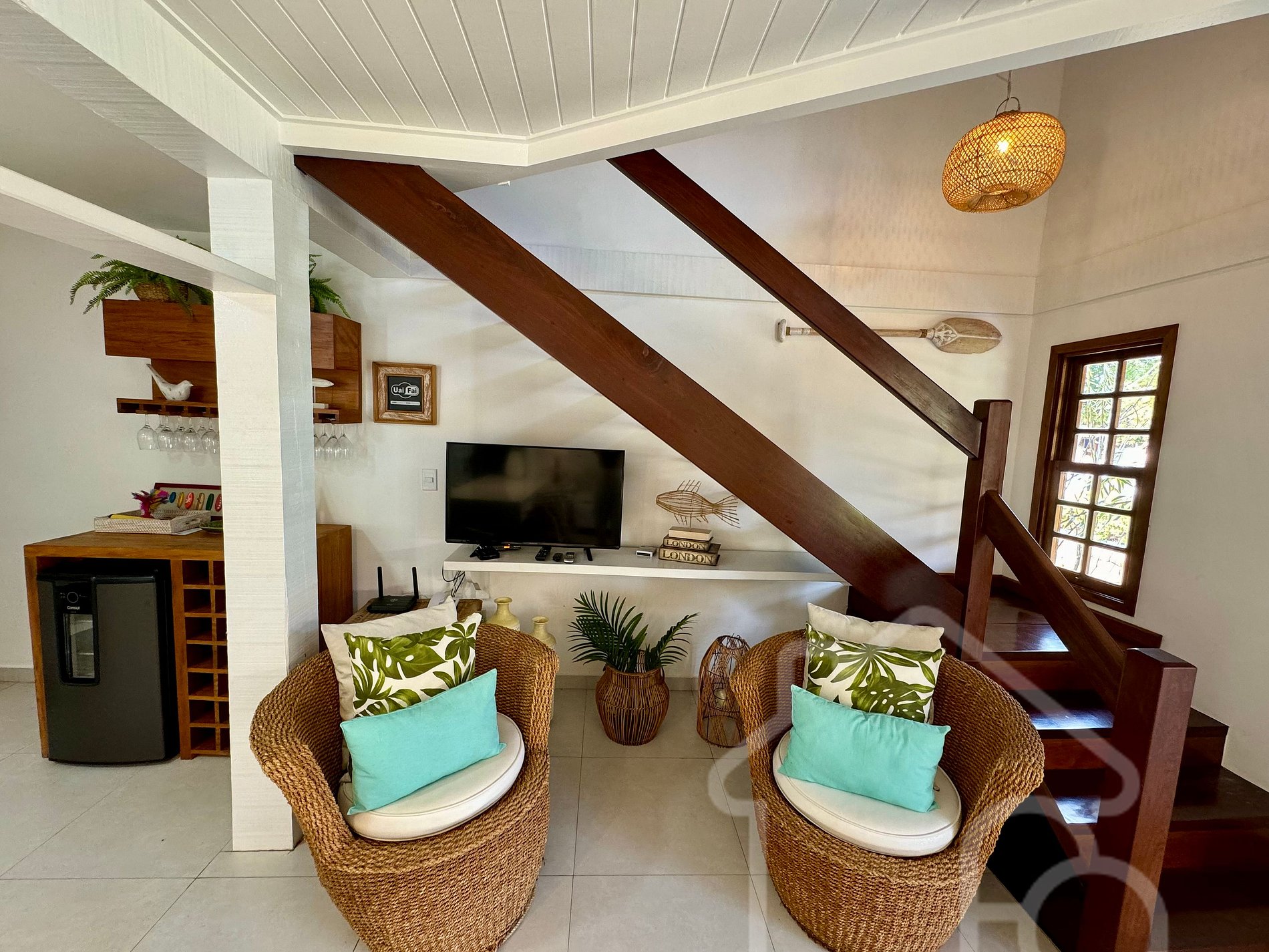 - Quarto 3: Também no primeiro andar, com ar condicionado e ventilador, próximo ao banheiro social.