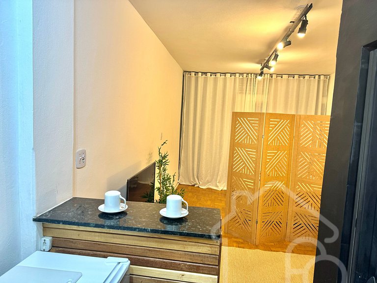 O estúdio oferece um espaço acolhedor e bem equipado, ideal para sua estadia: