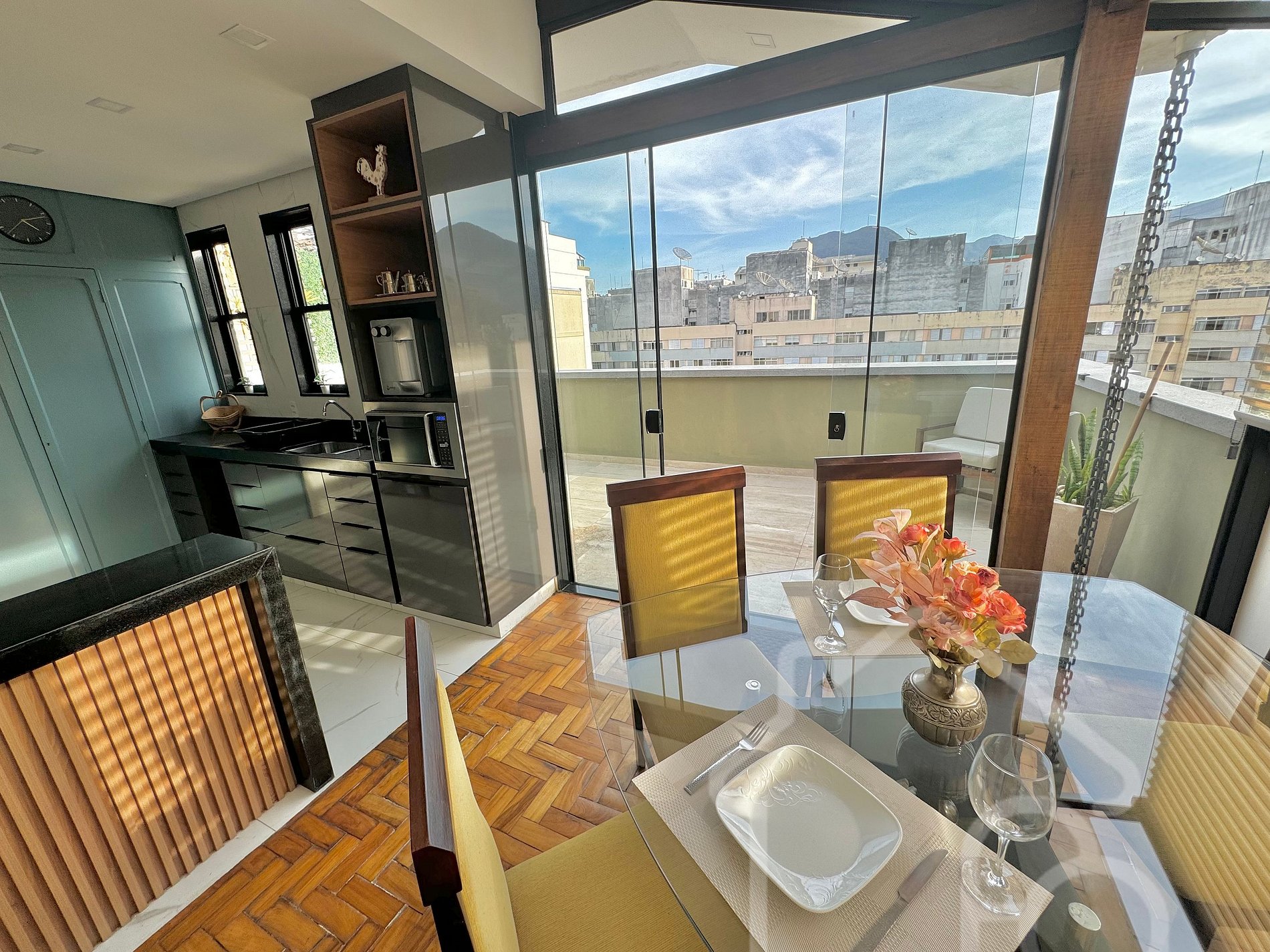 Cobertura moderna com varanda no centro