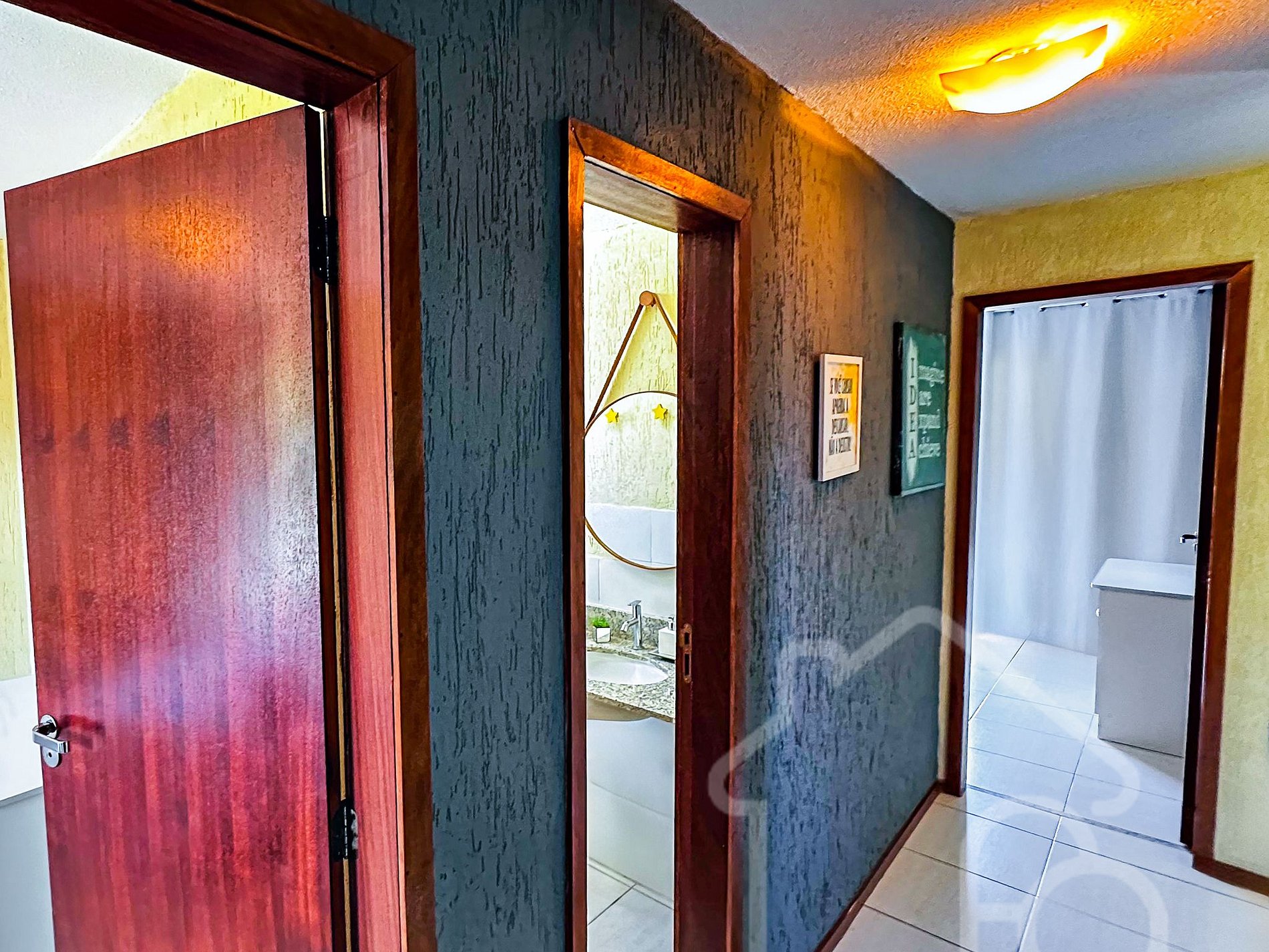 Encantadora casa duplex, confortável e arejada, perfeita para sua estadia. Com três quartos, sendo uma suíte, a propriedade conta com três banheiros e um lavabo.