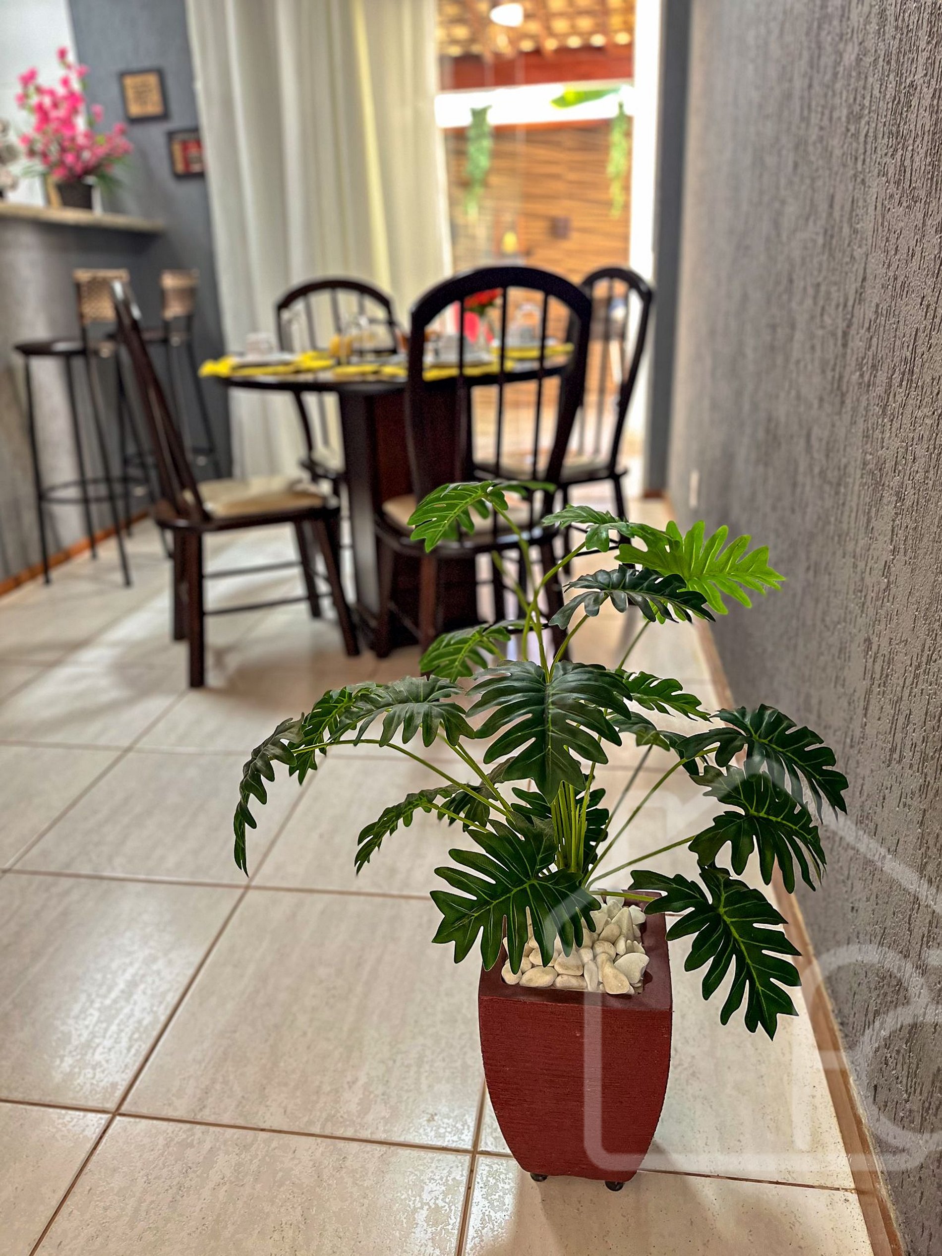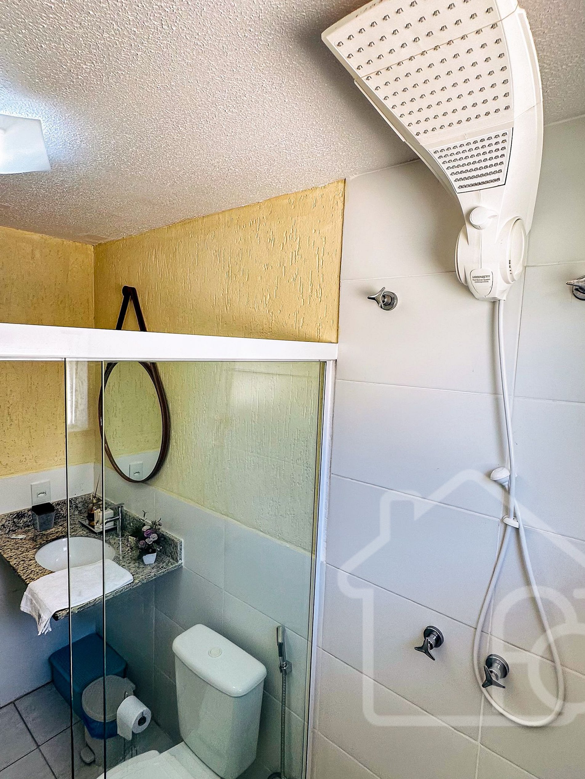 Encantadora casa duplex, confortável e arejada, perfeita para sua estadia. Com três quartos, sendo uma suíte, a propriedade conta com três banheiros e um lavabo.