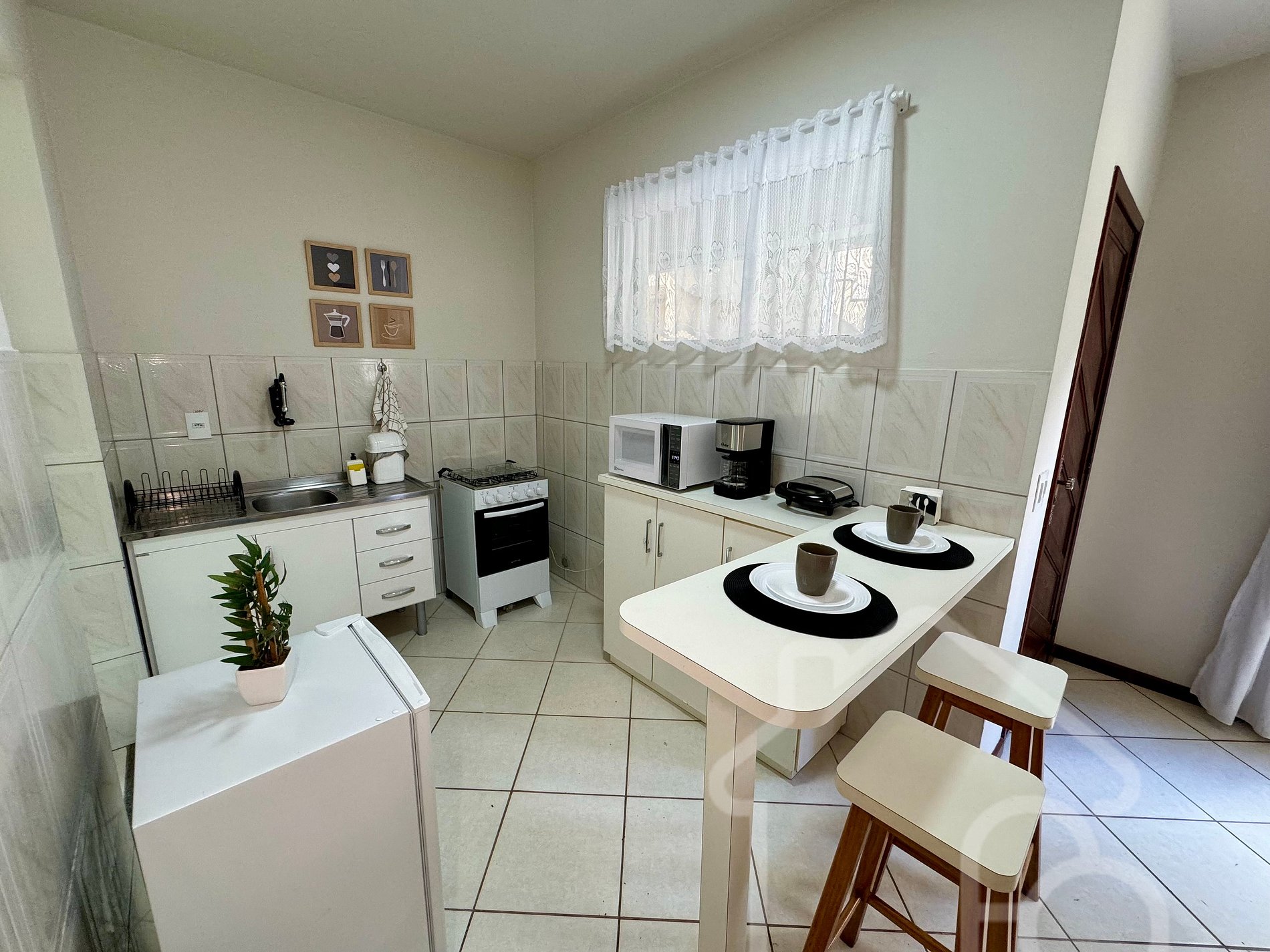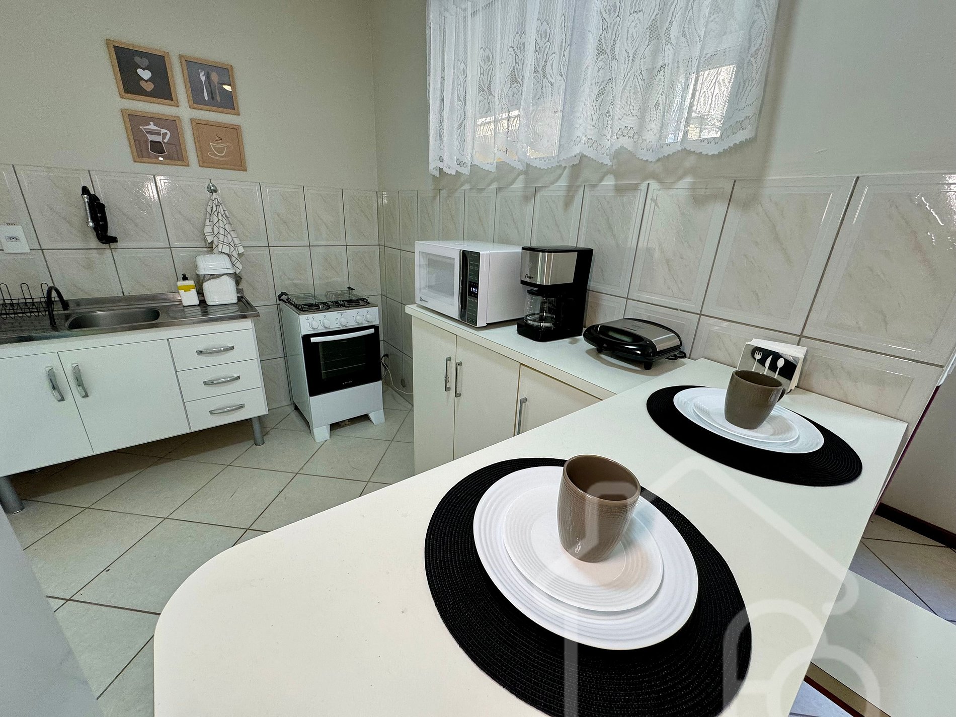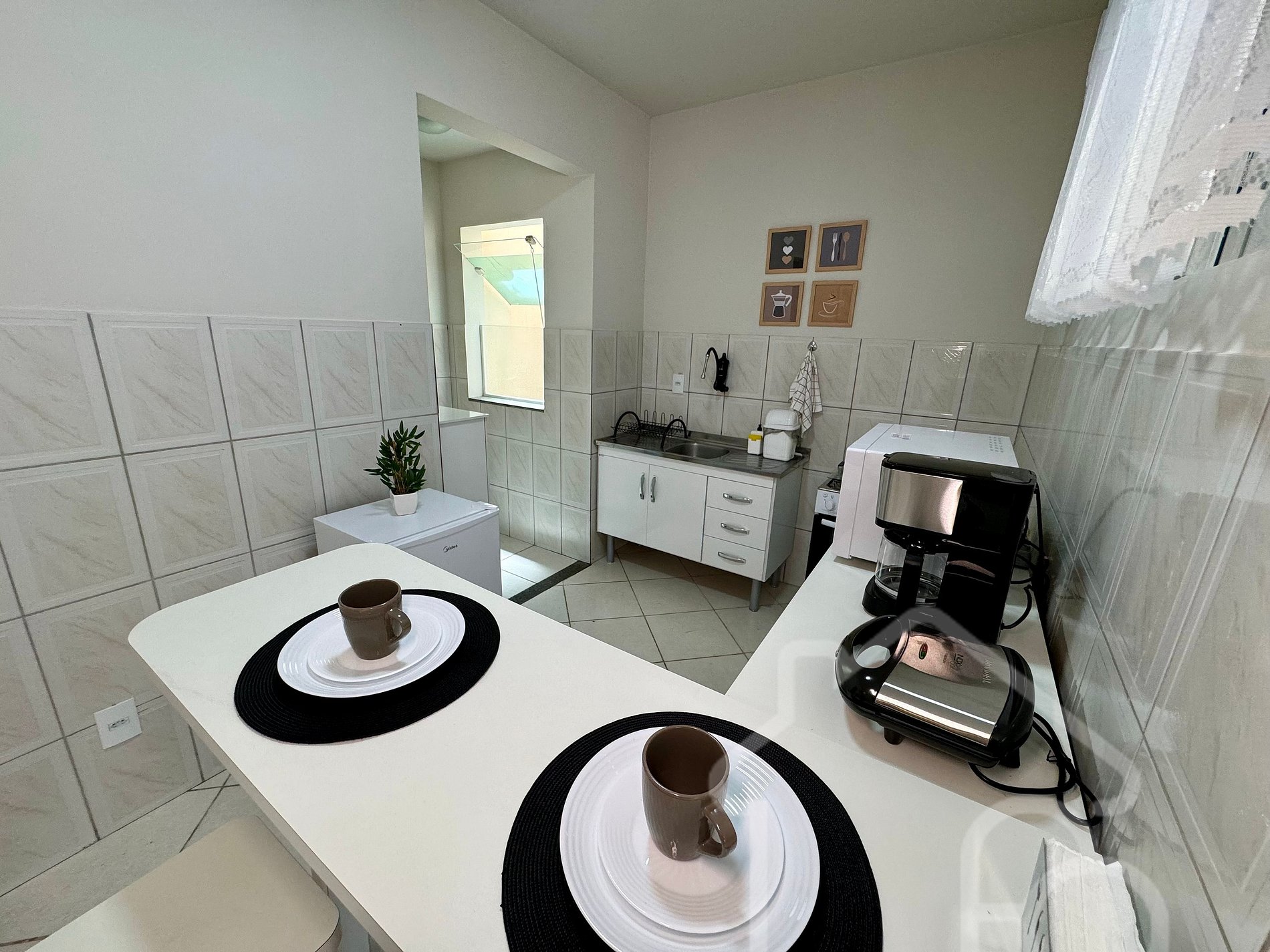 - Cozinha completa com fogão, frigobar, microondas, cafeteira elétrica e filtro de água.