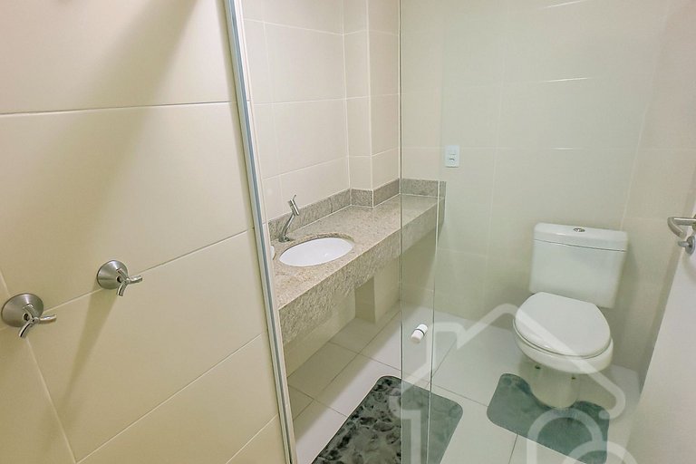 - 2 quartos (1 suíte) e 1 banheiro social completo