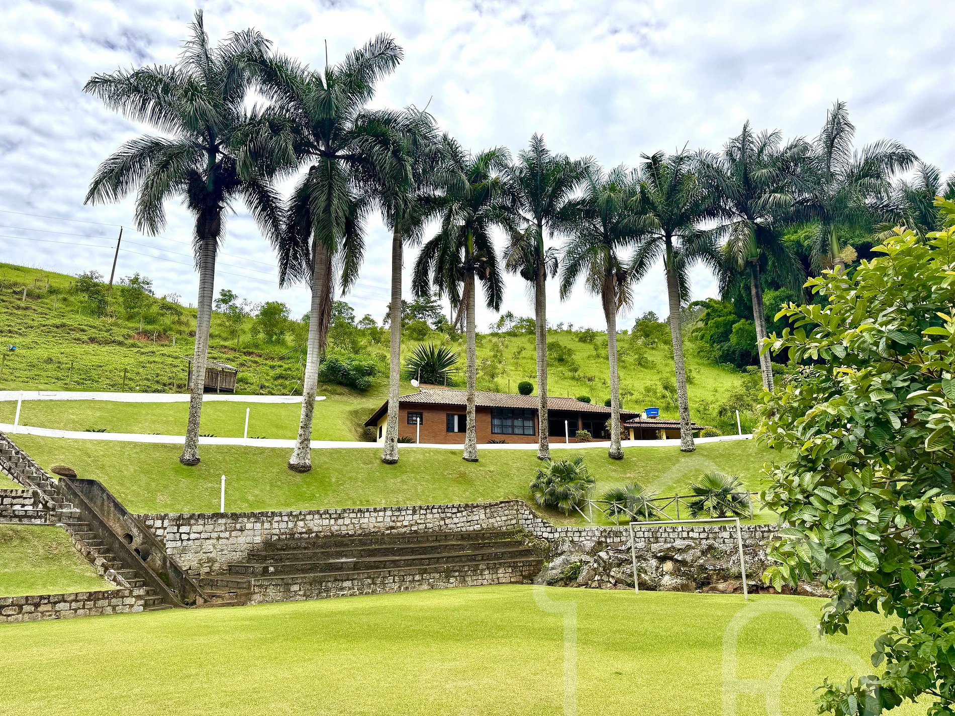 - Árvores frutíferas como mangueiras e jambeiros espalhadas pela propriedade