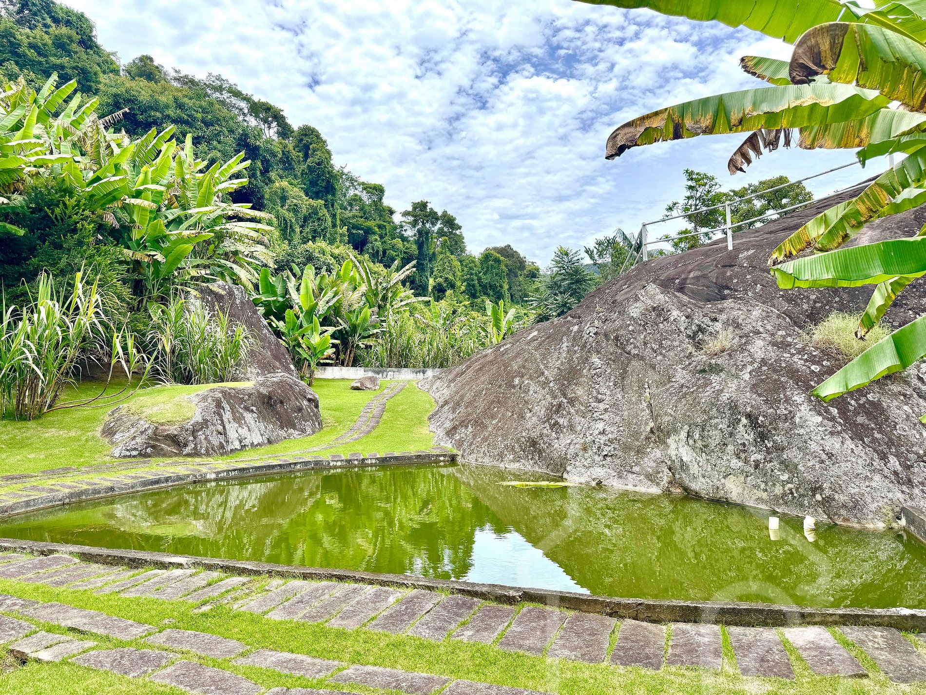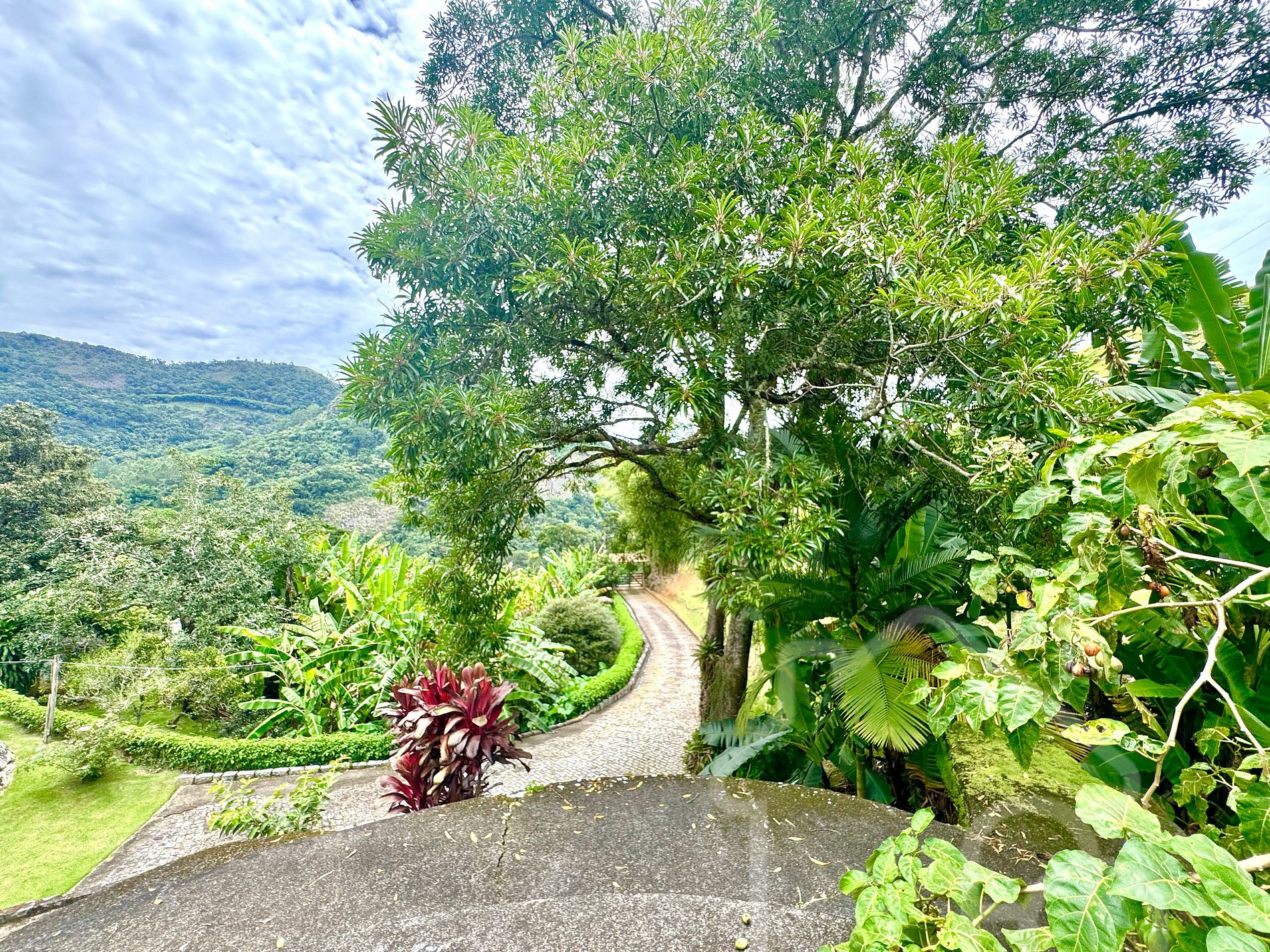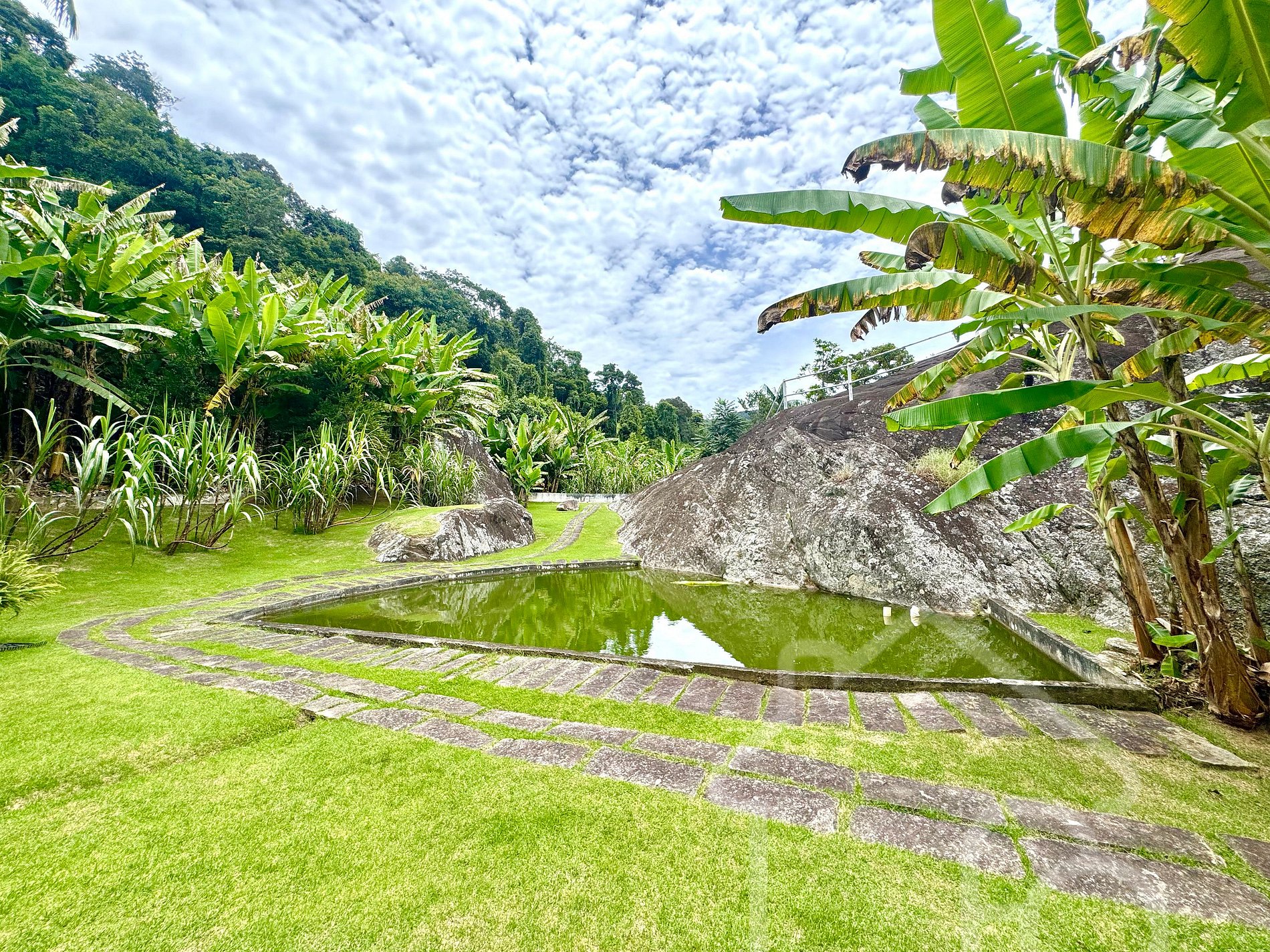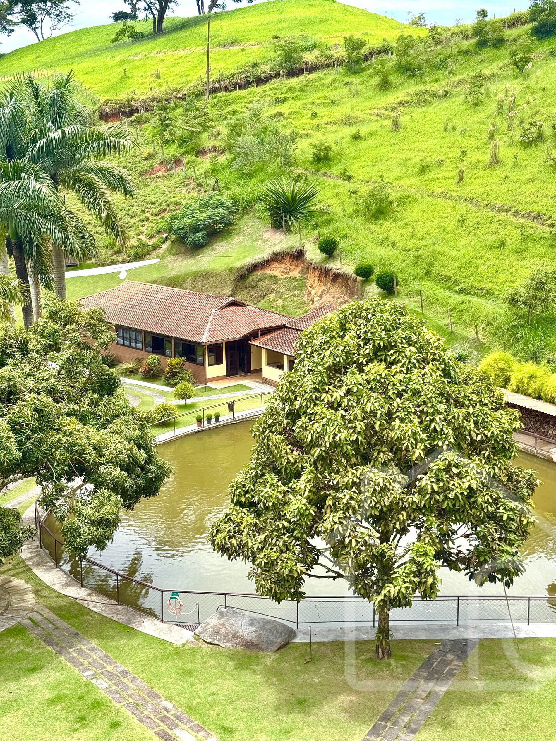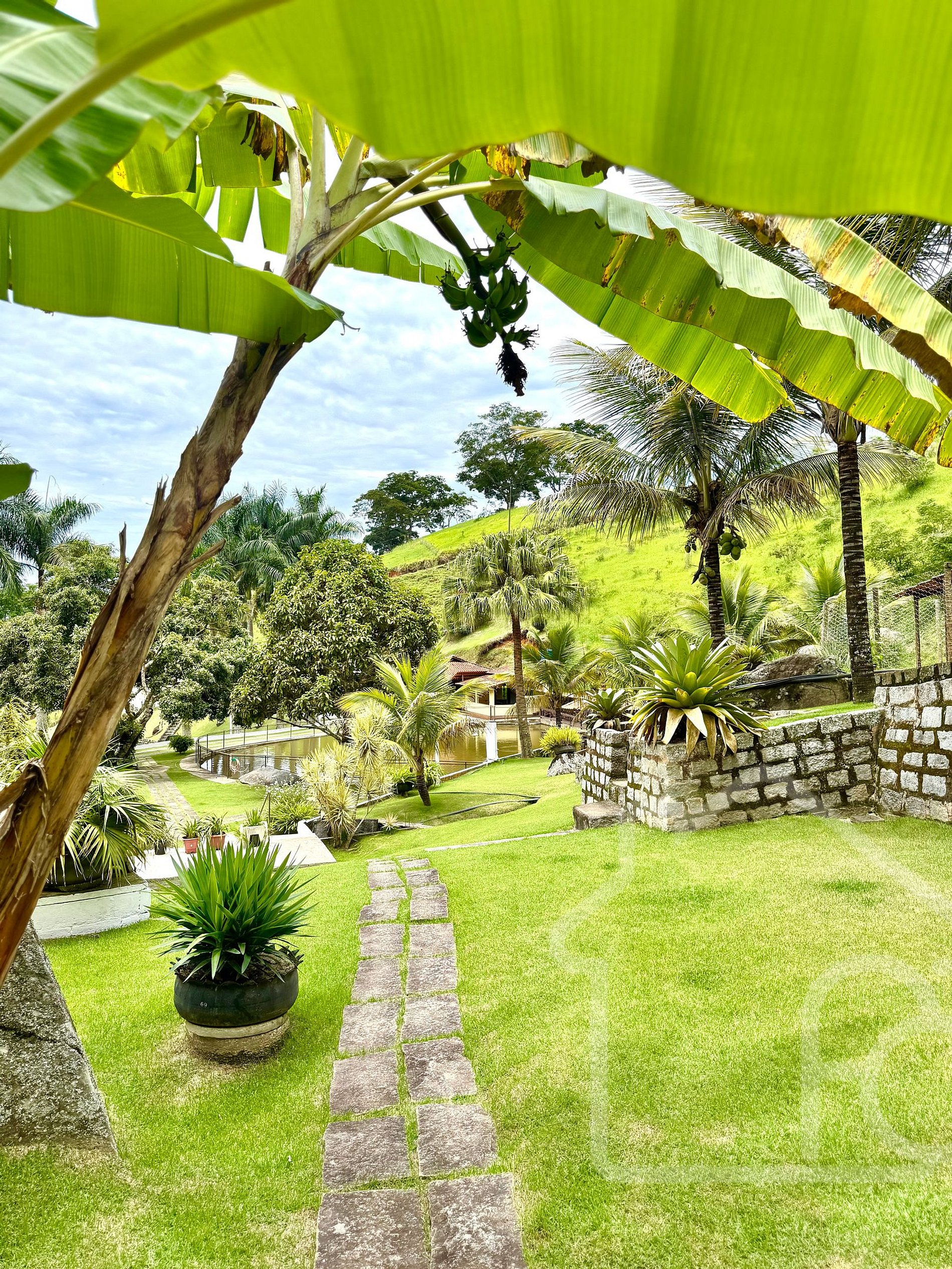 - Árvores frutíferas como mangueiras e jambeiros espalhadas pela propriedade