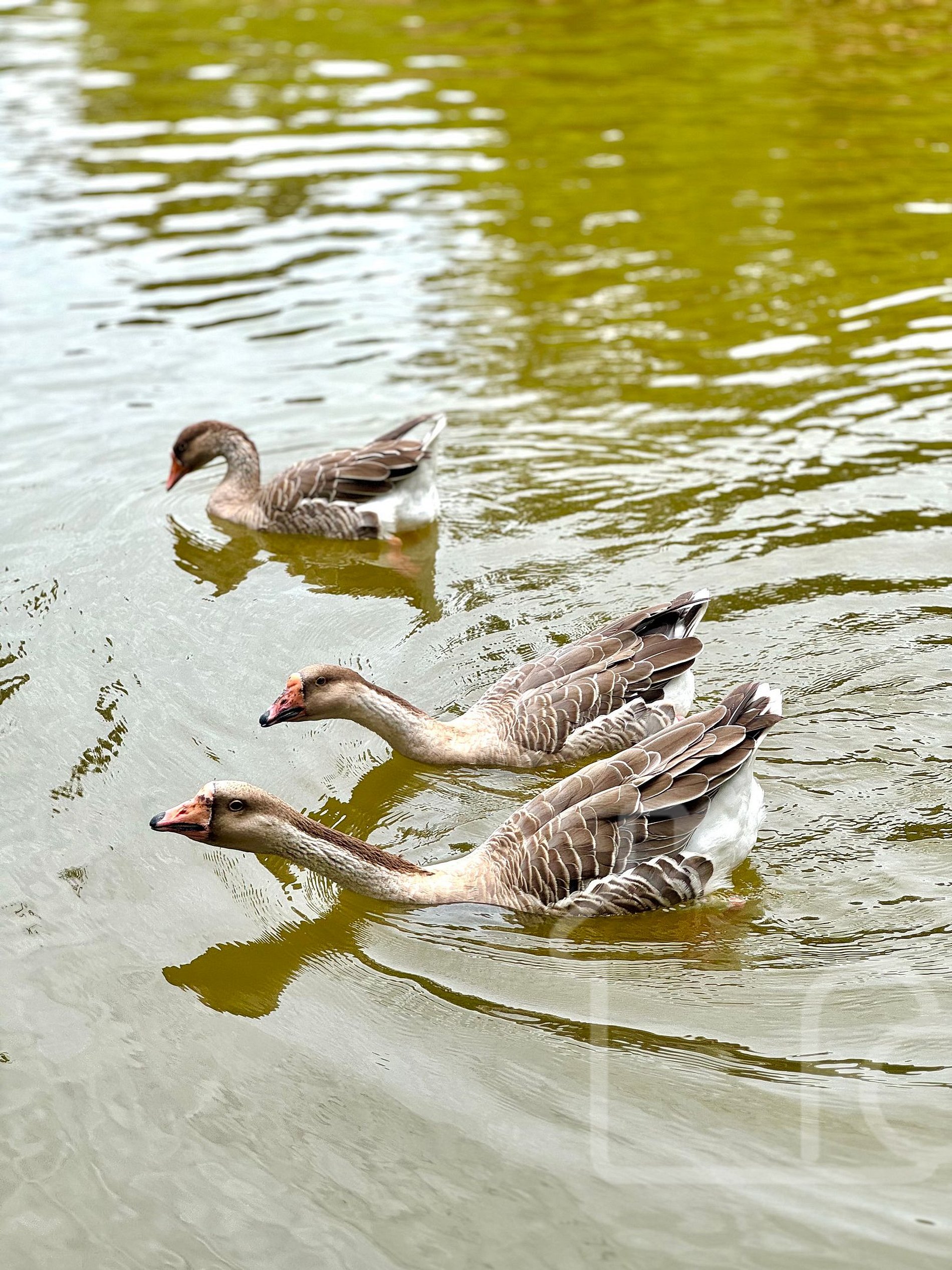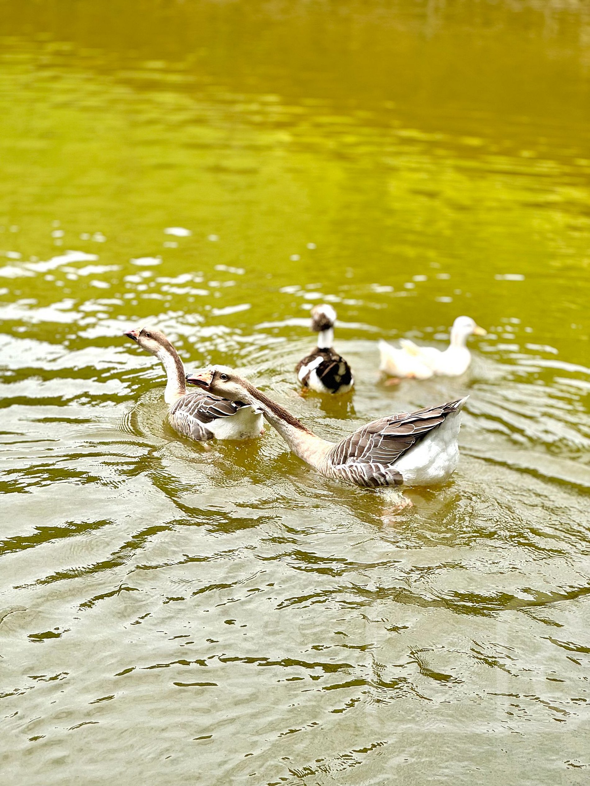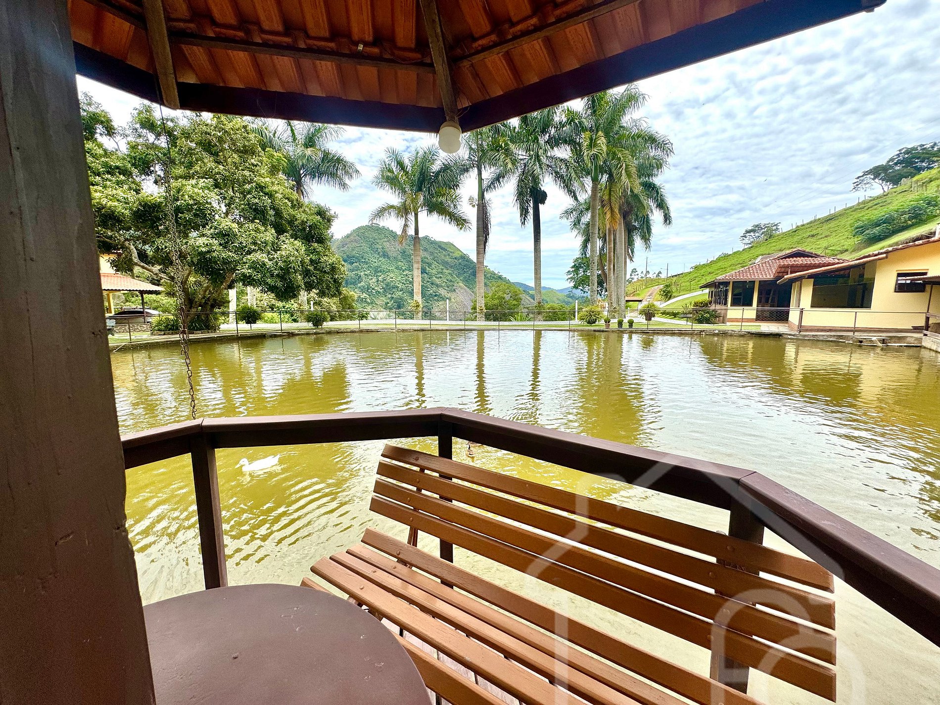 - Lago com tilápias e tambaquis, além de patos e gansos