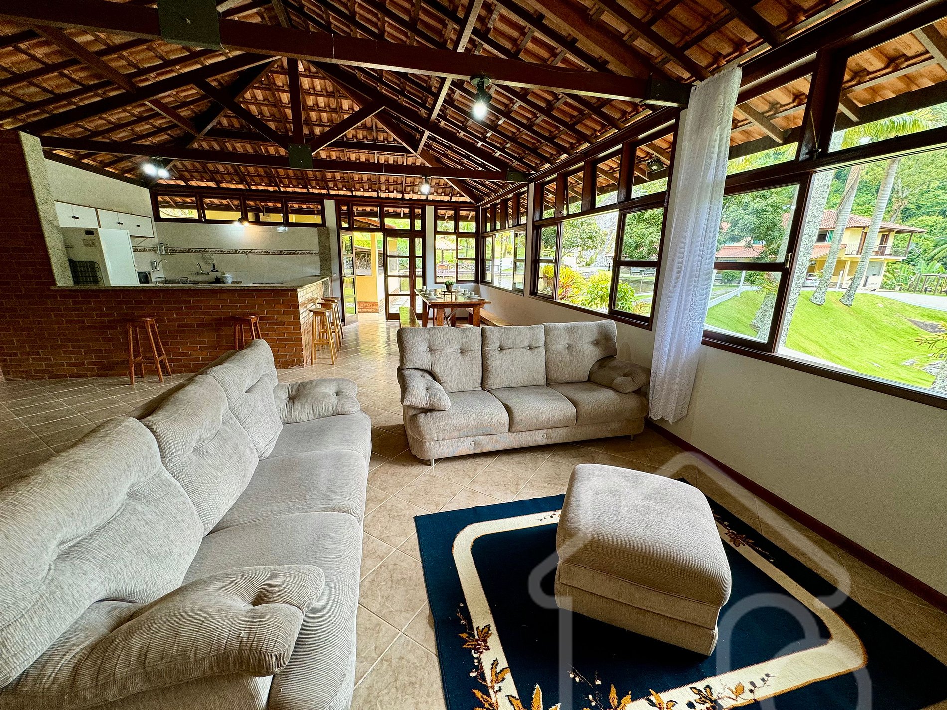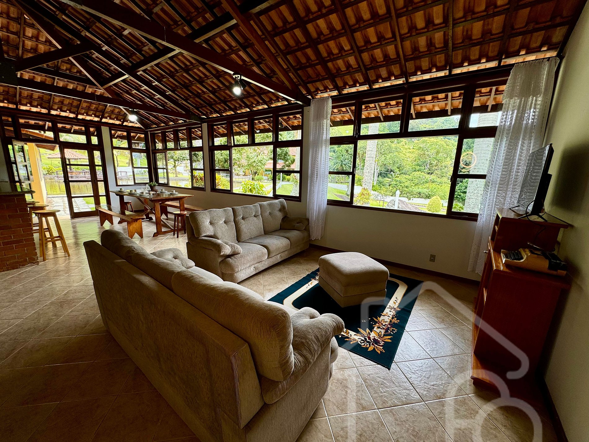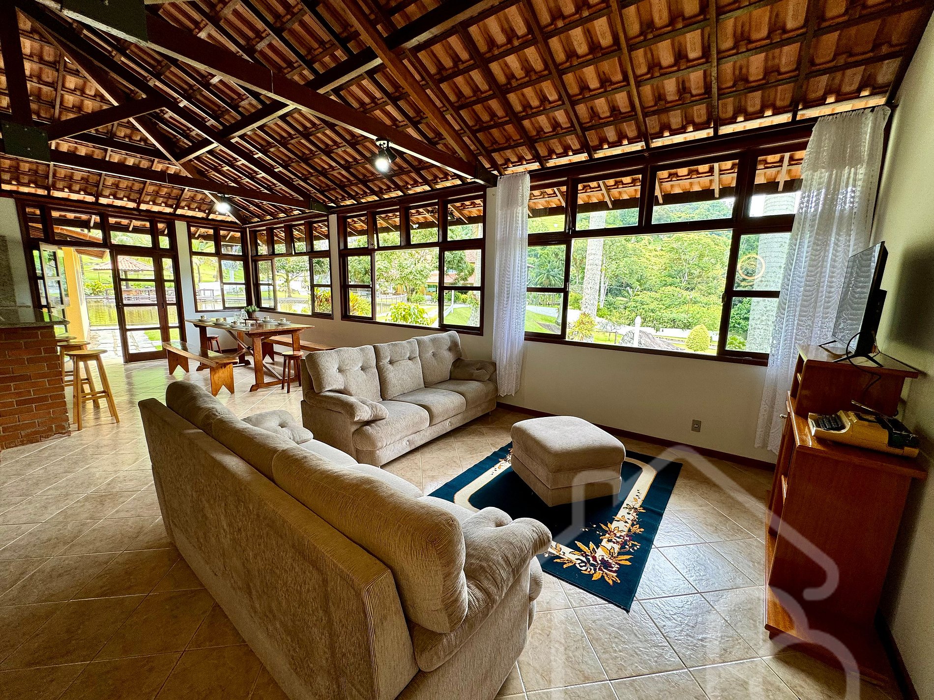 - Sala espaçosa com sofás para até 9 pessoas e TV
