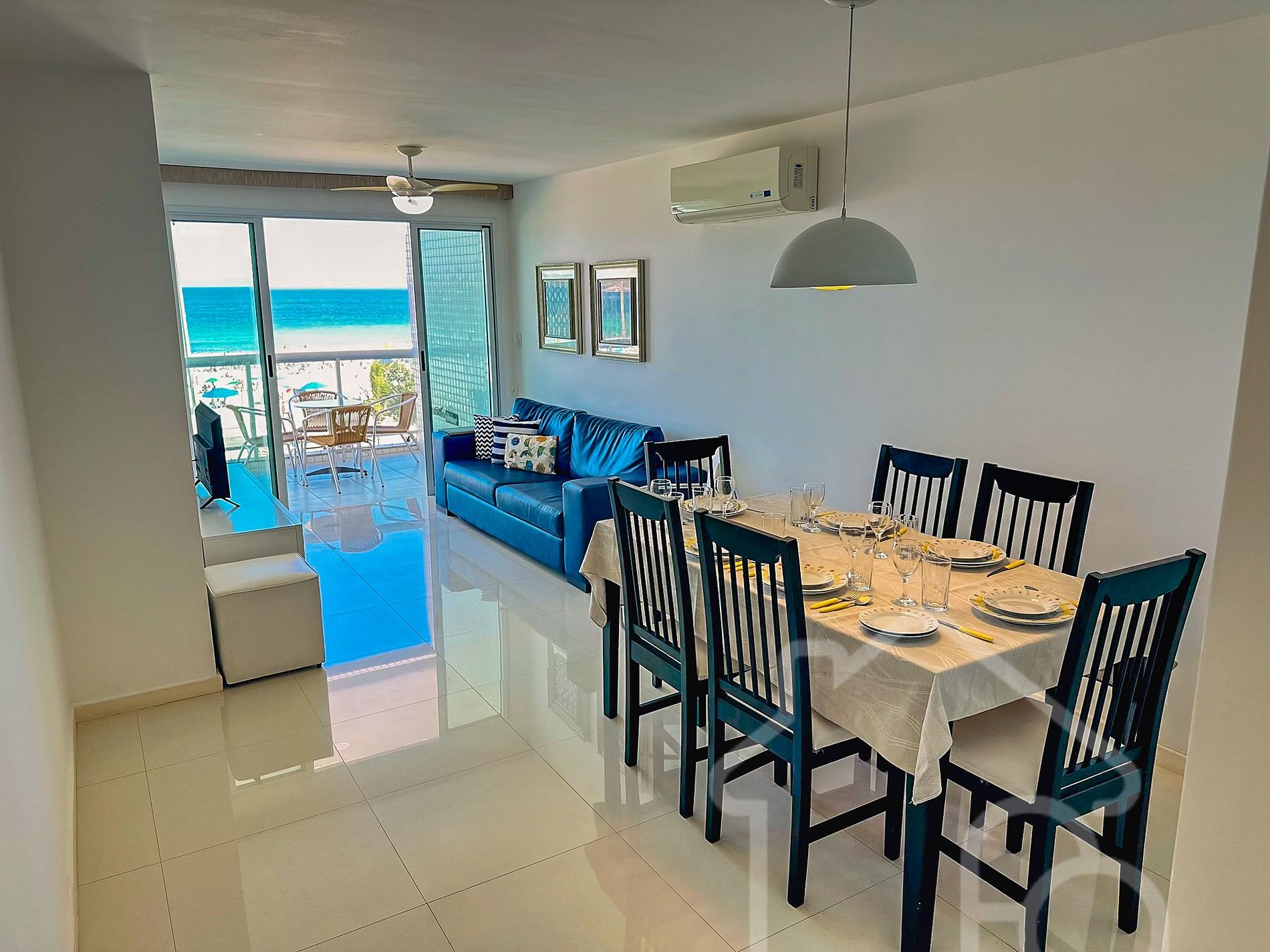 Desfrute de um apartamento pé na areia, localizado em um dos melhores pontos de Cabo Frio, com 2 suítes, 2 quartos e capacidade para 8 pessoas. Com decoração clean e moderna, oferece sala de estar e jantar integradas, smart TV com Globo Play, cozinha completa e 3 vagas de garagem. O condomínio conta com piscina, sauna, academia e sala de jogos. Perfeito para dias inesquecíveis à beira-mar, unindo conforto, sofisticação e localização privilegiada. Reserve agora e aproveite!