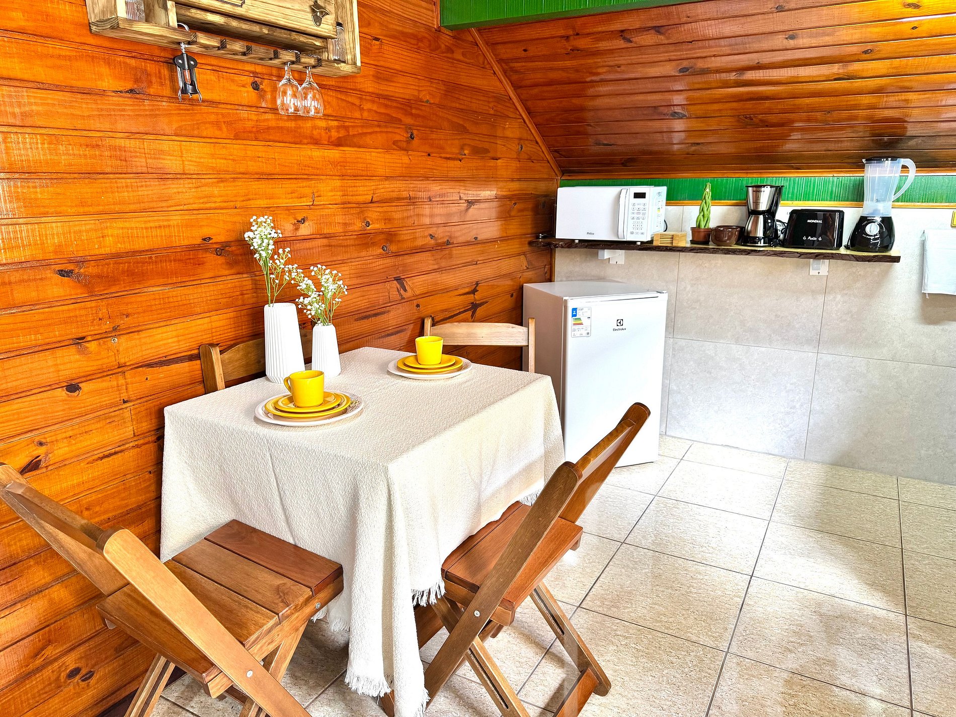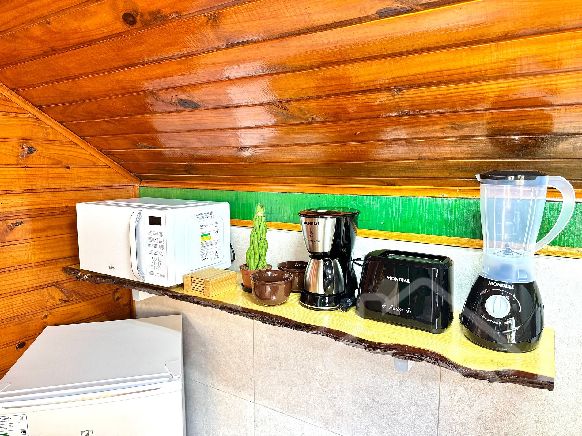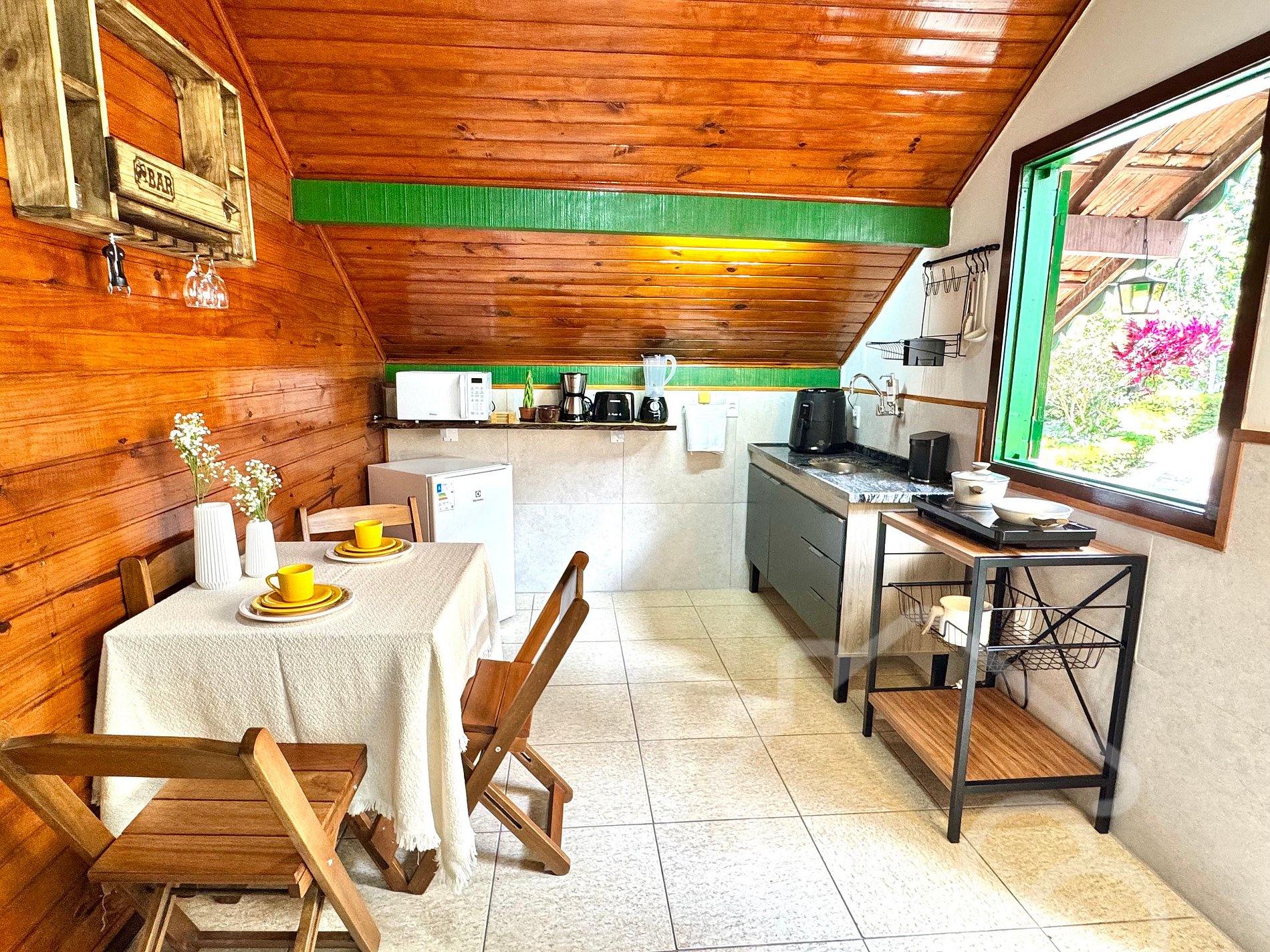 - Micro-ondas, frigobar e fogão de indução (2 bocas)