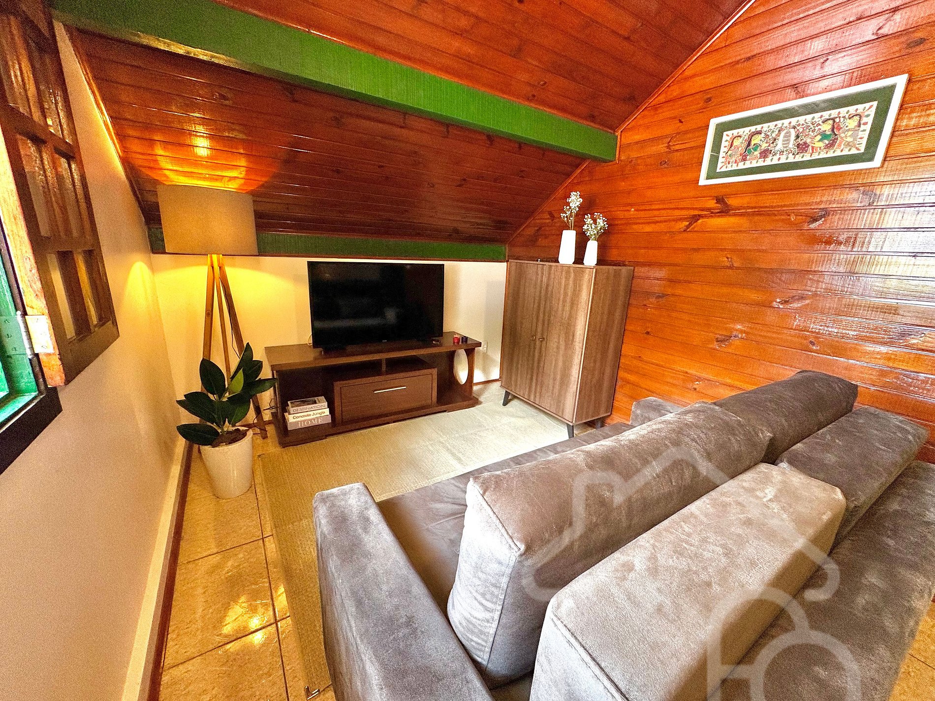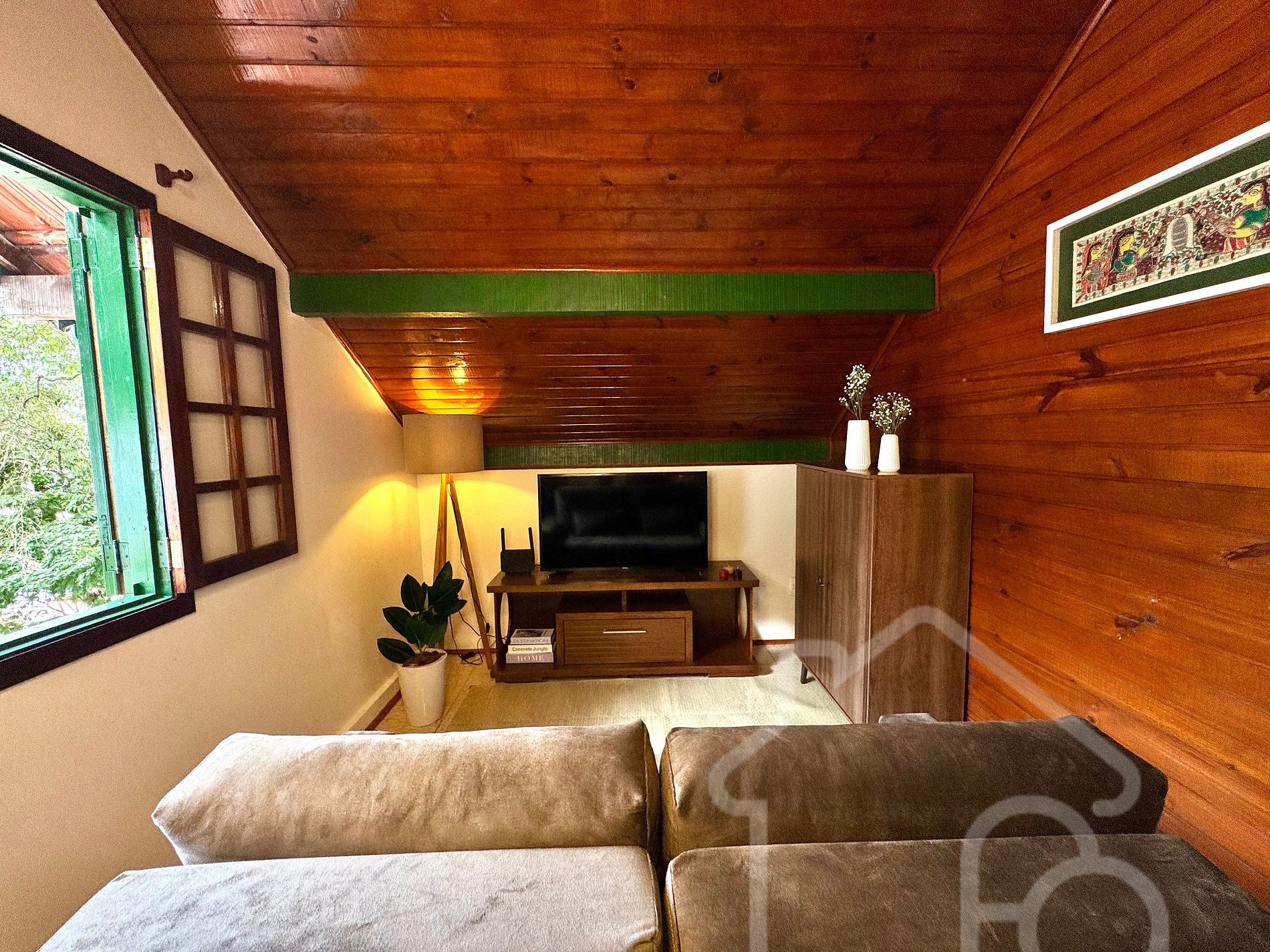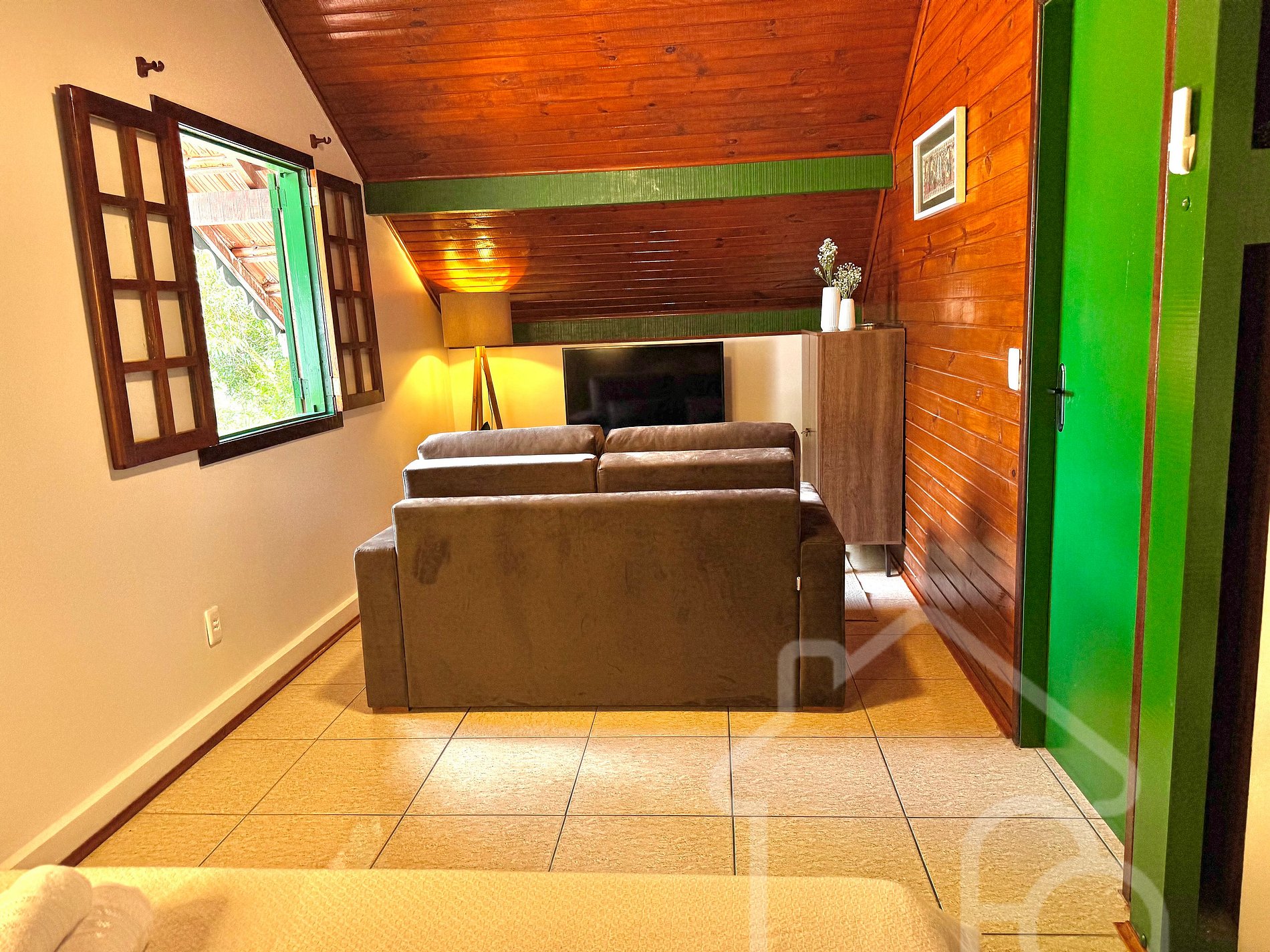 O chalé colonial oferece um ambiente aconchegante e funcional, perfeito para momentos de descanso e tranquilidade. O espaço é composto por: