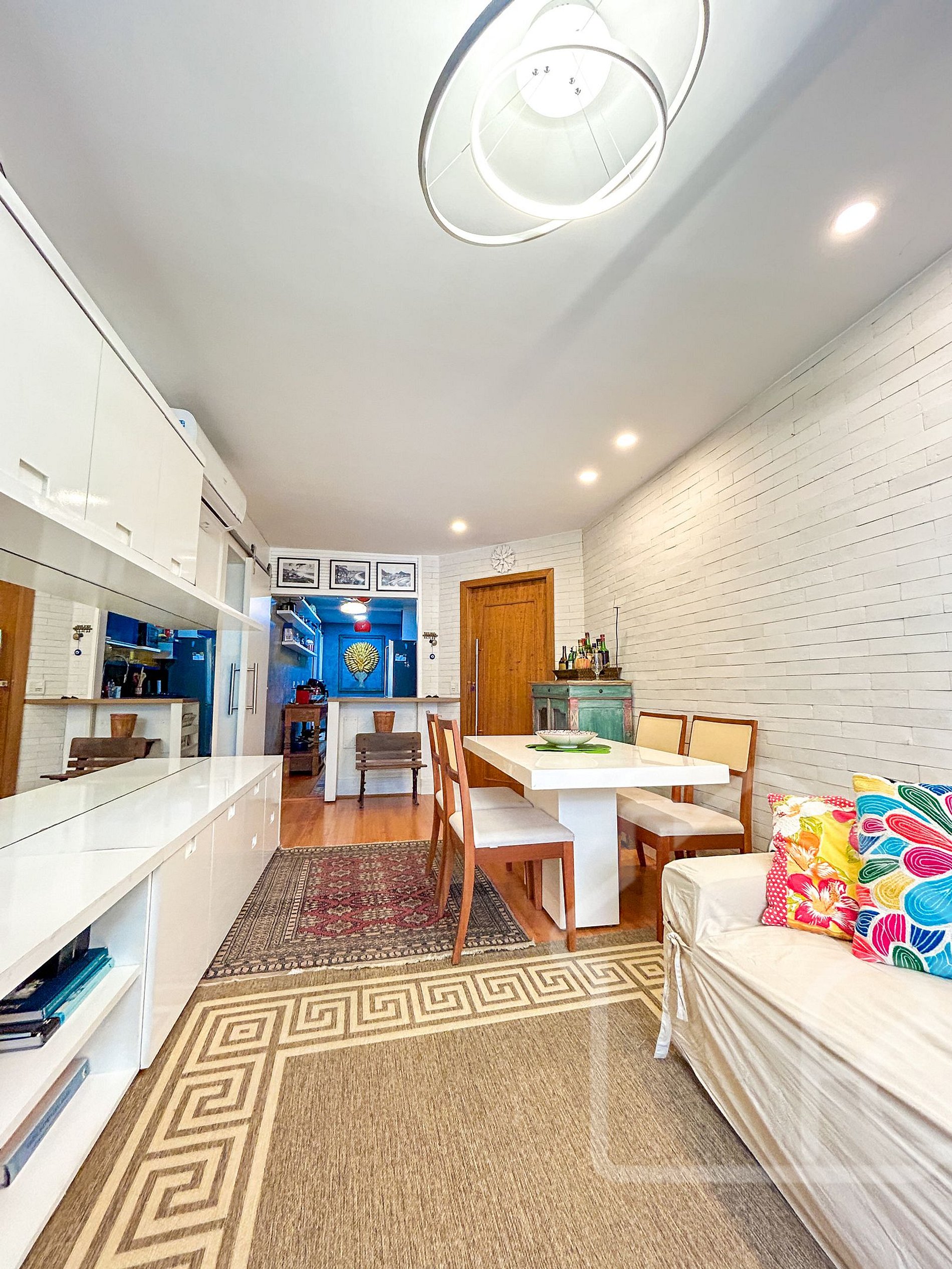- Sala de estar ampla, arejada e iluminada, equipada com ar-condicionado, TV, mesa de jantar e Wi-Fi de alta qualidade.