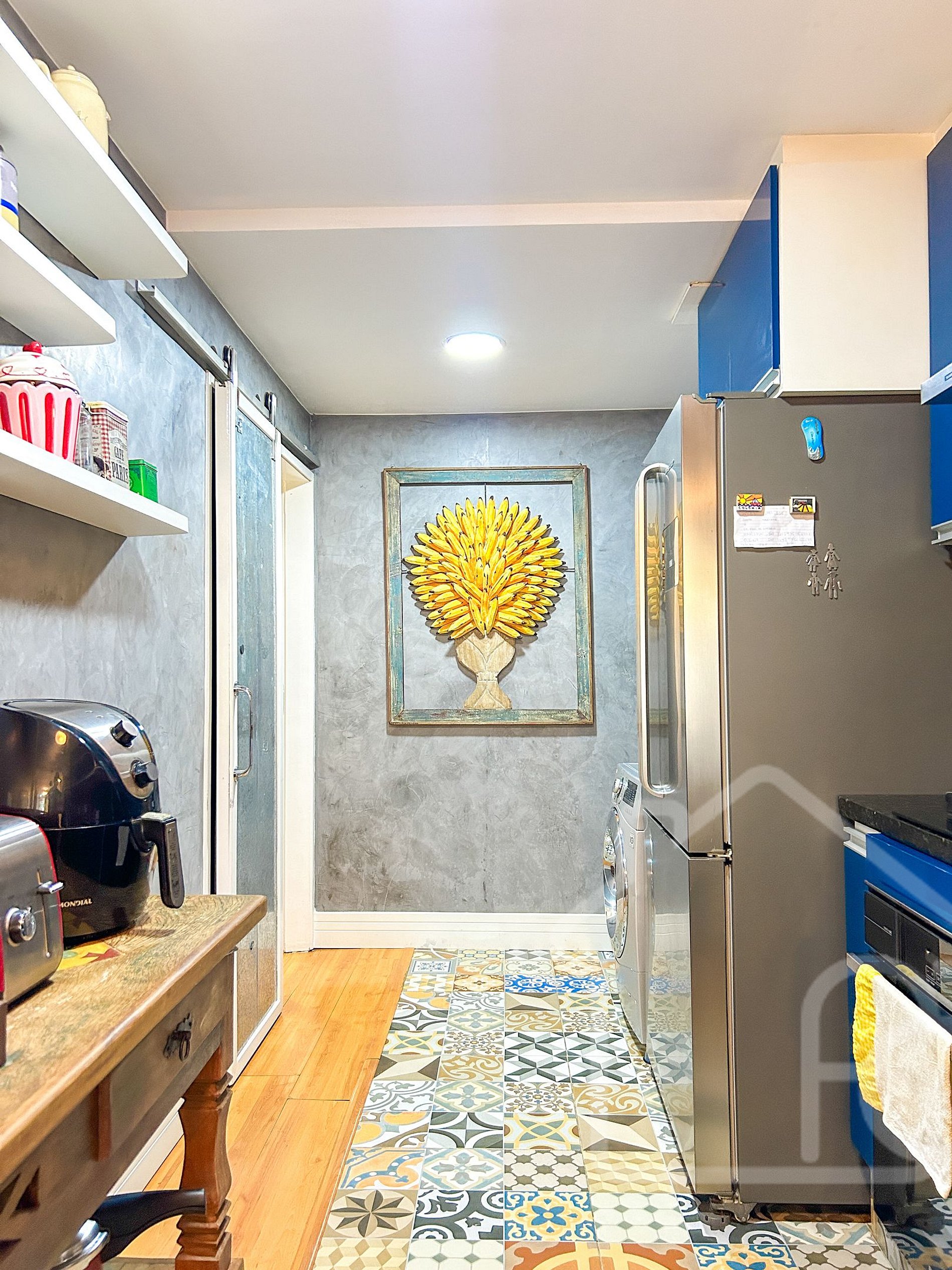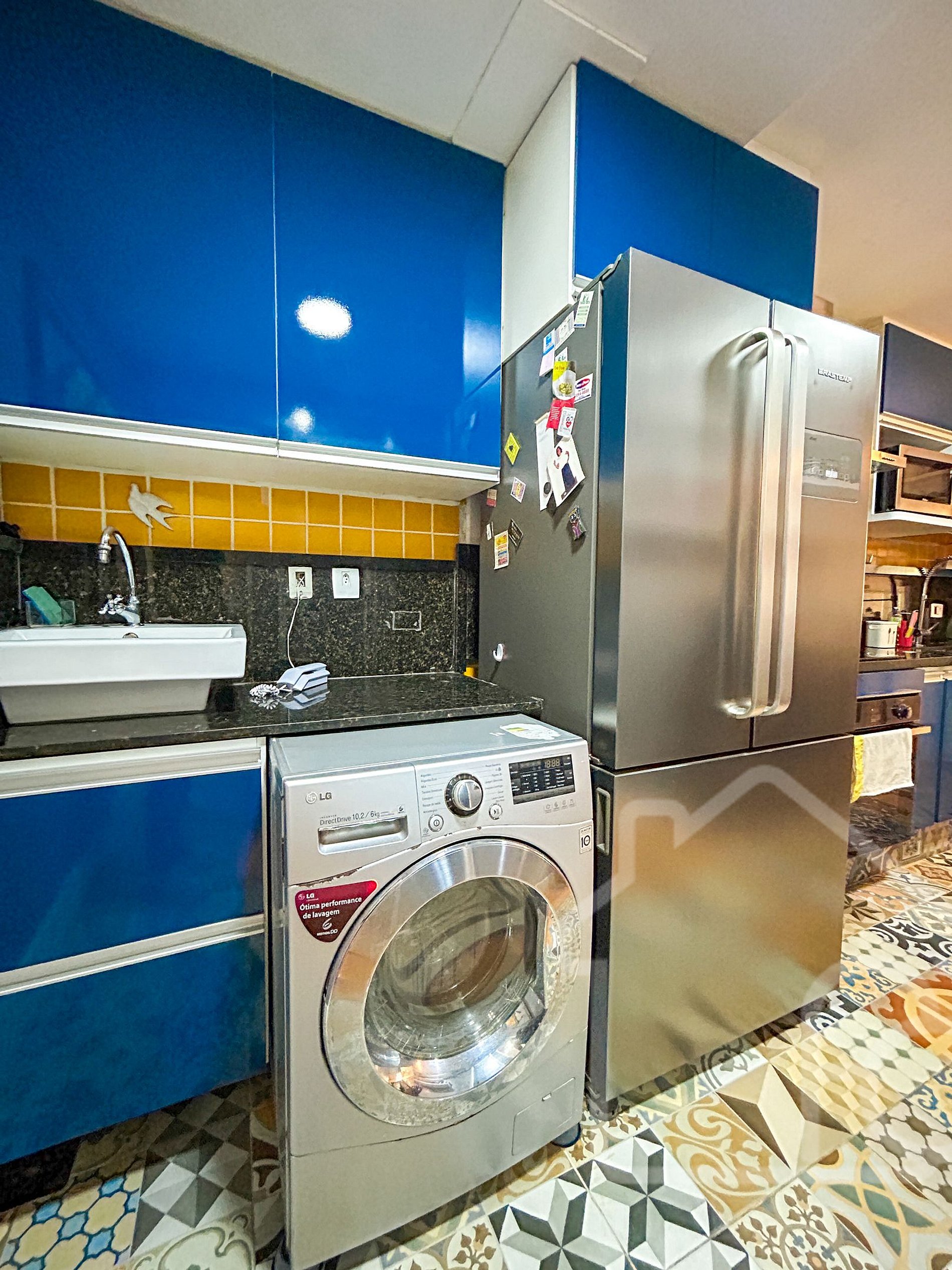 - Área de serviço com máquina de lavar.