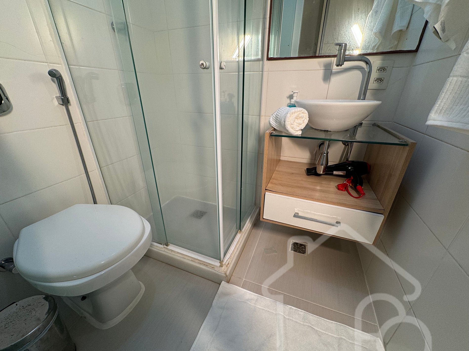 - Banheiro completo com: ducha higiênica, água quente e secador de cabelo