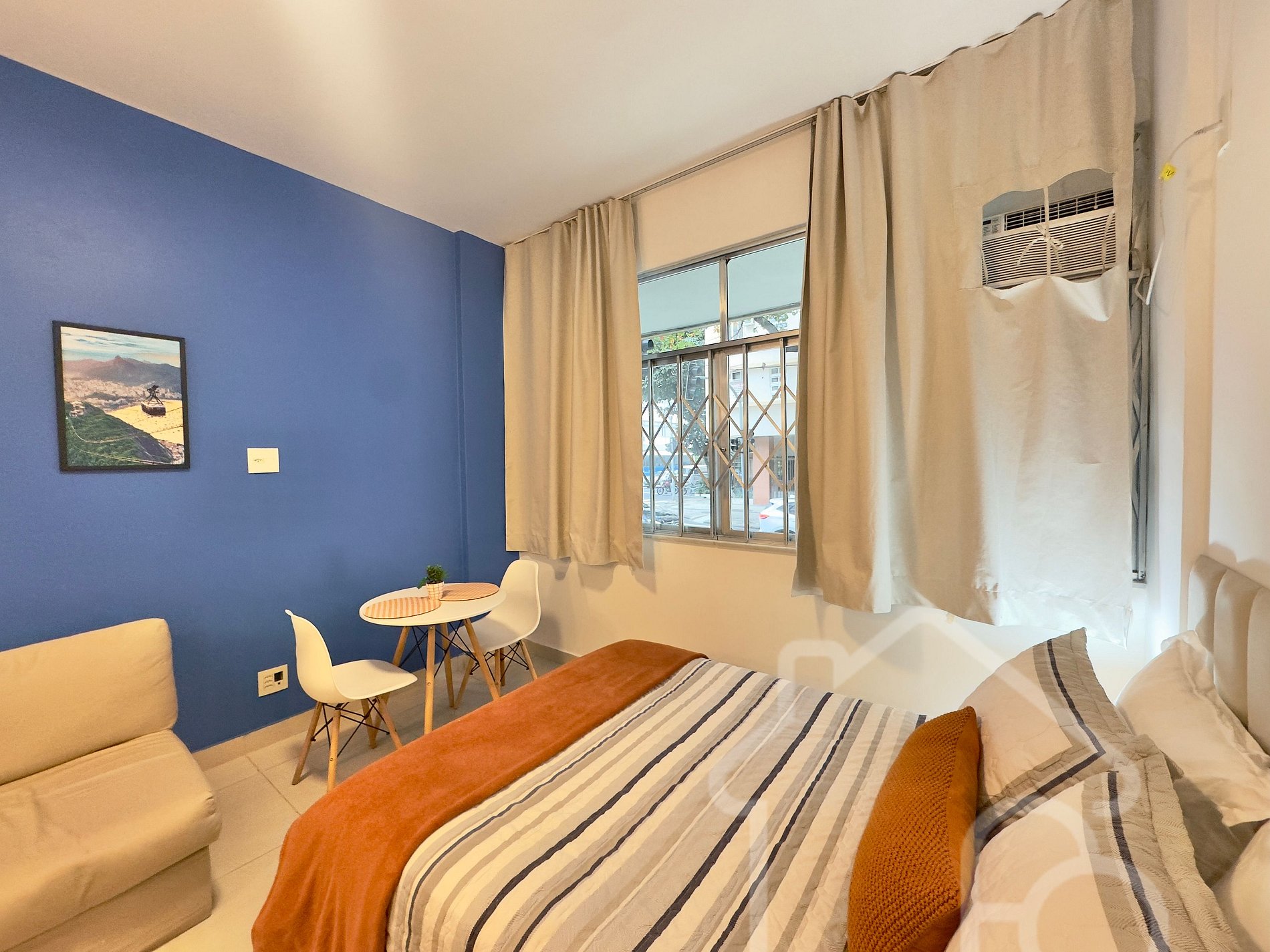 Estúdio em Copanema, a 400m da Praia de Ipanema e 500m da de Copacabana, perto do Arpoador. Acomoda com conforto: cama de casal, sofá-cama com TV e Claro TV, ar-condicionado, armário com cabides, cozinha equipada (fogão elétrico, geladeira, micro-ondas, sanduicheira, cafeteira e utensílios) e banheiro completo com água quente, ducha higiênica e secador. Self check-in com fechadura eletrônica e portaria 24h.