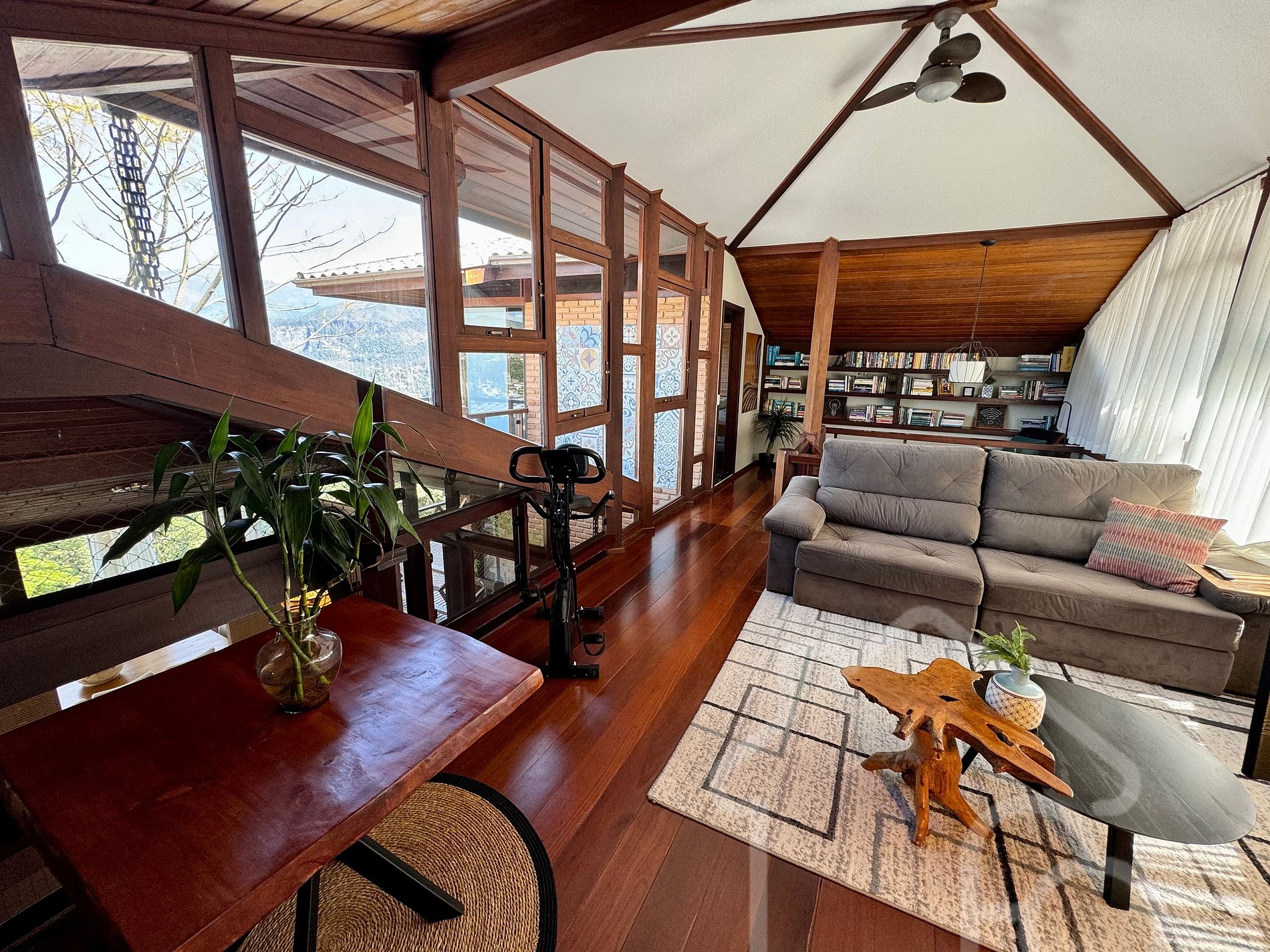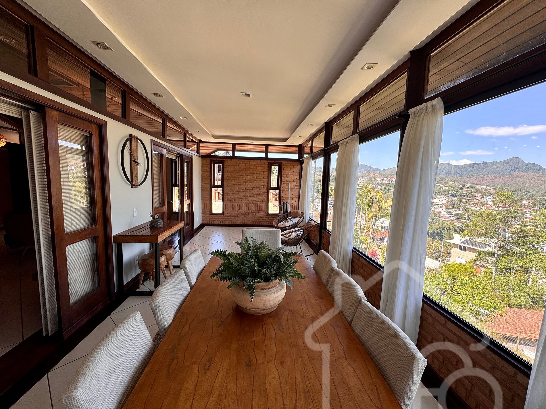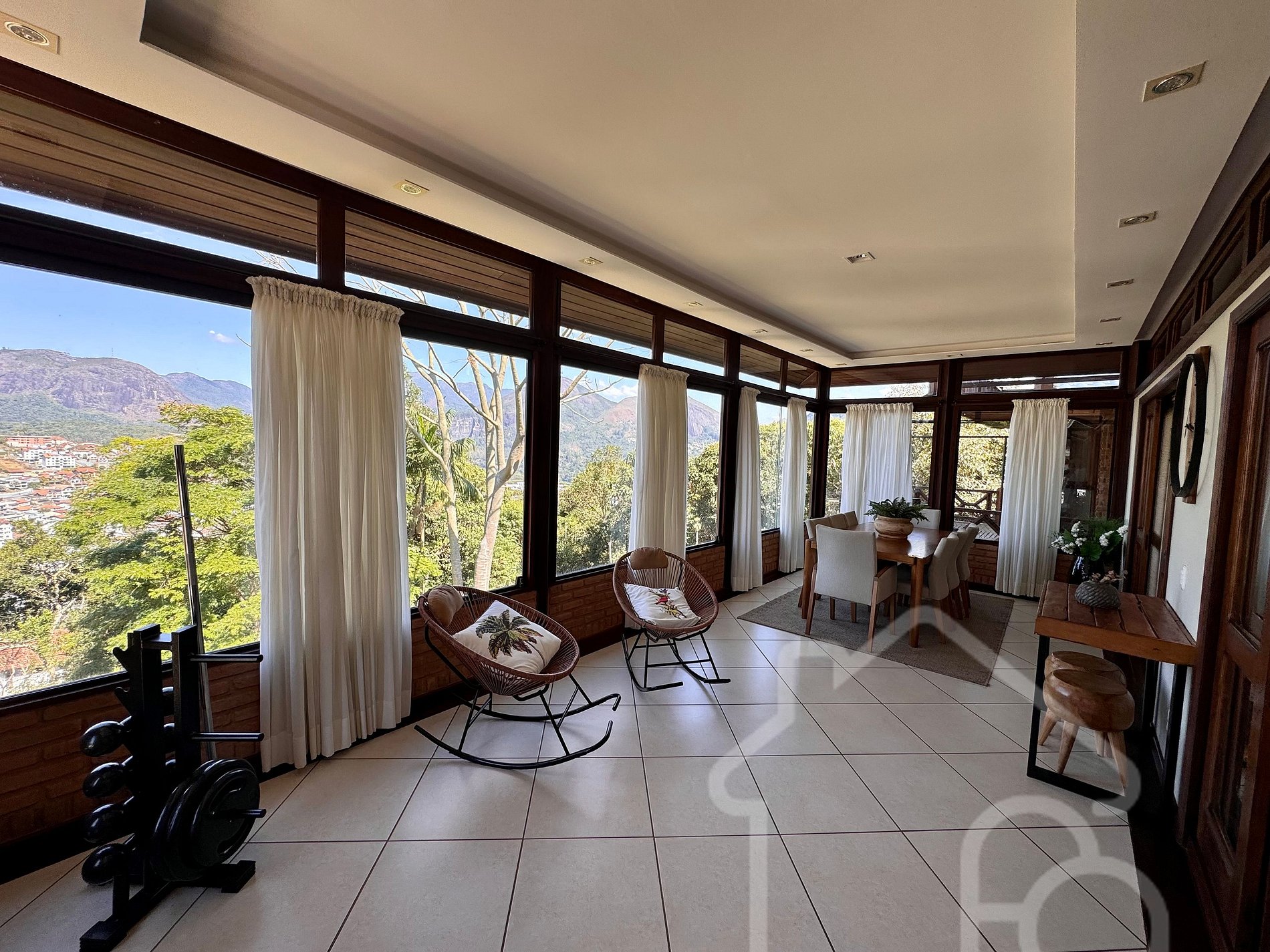 - Sala de jantar integrada, com vista incrível da cidade, mesa para 6 pessoas e equipamentos de treino