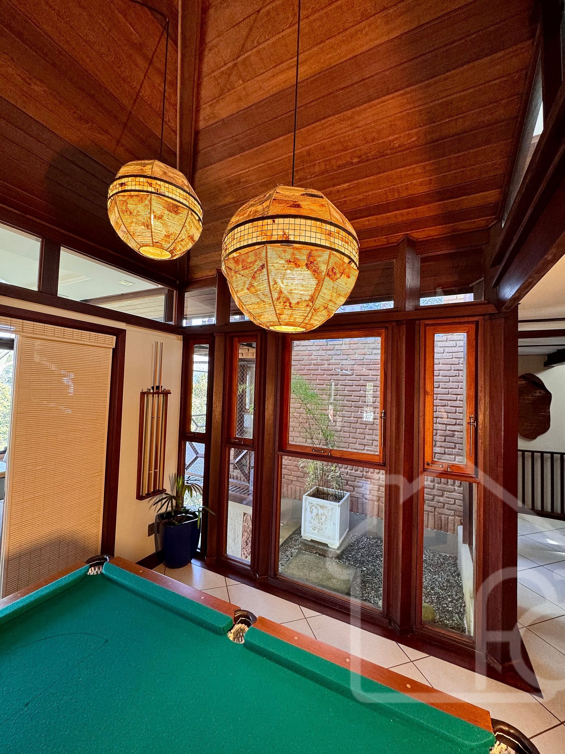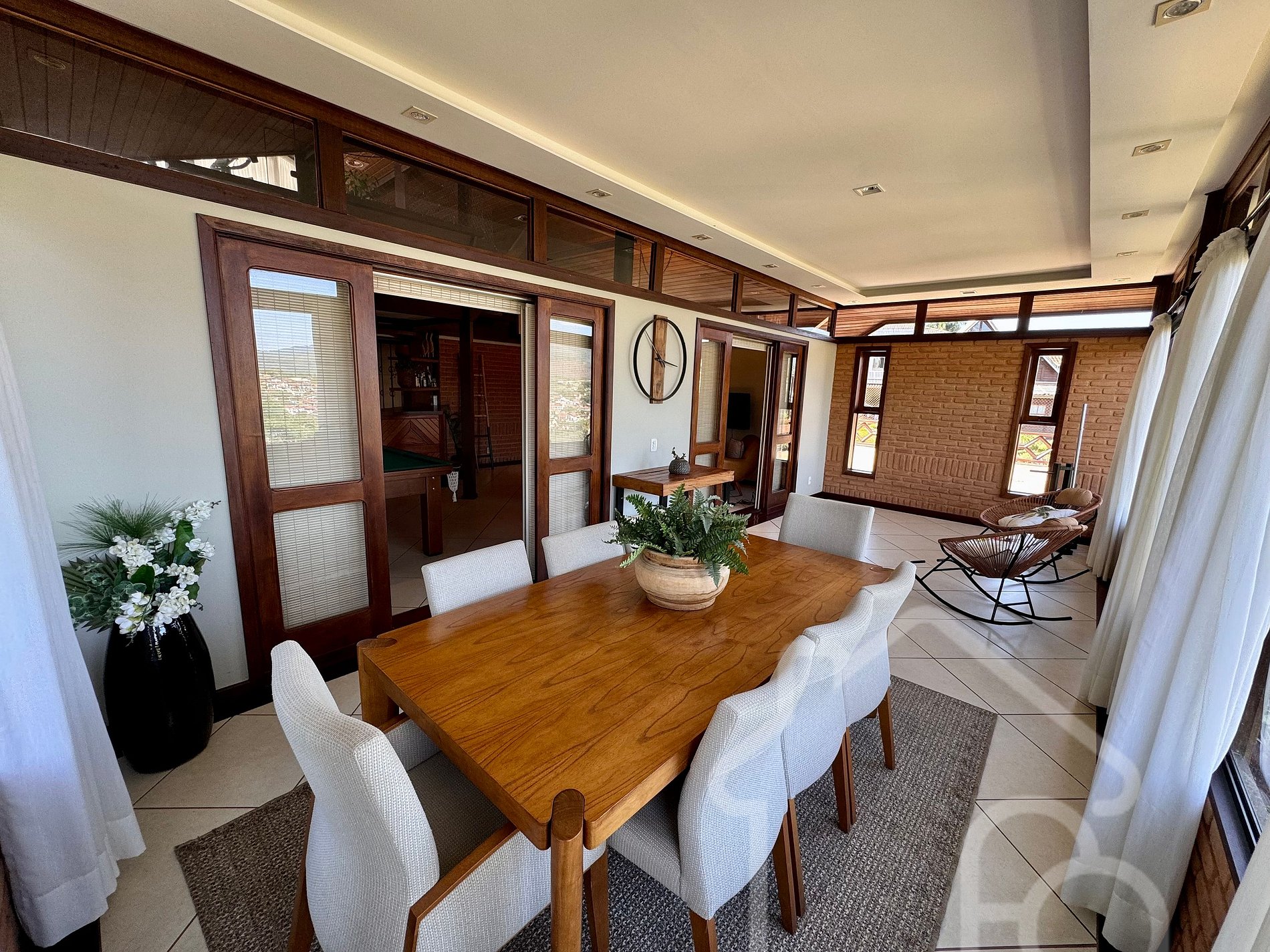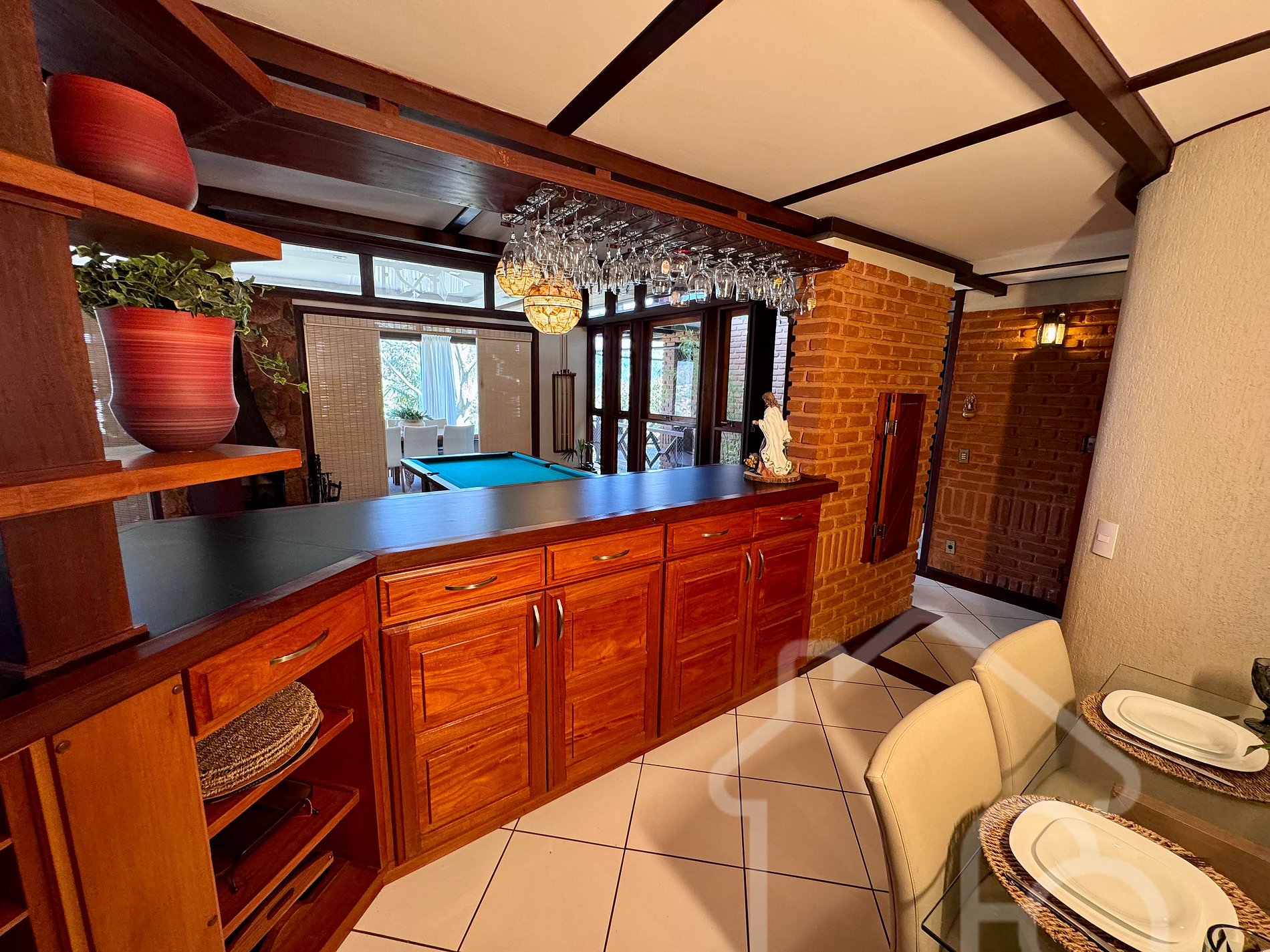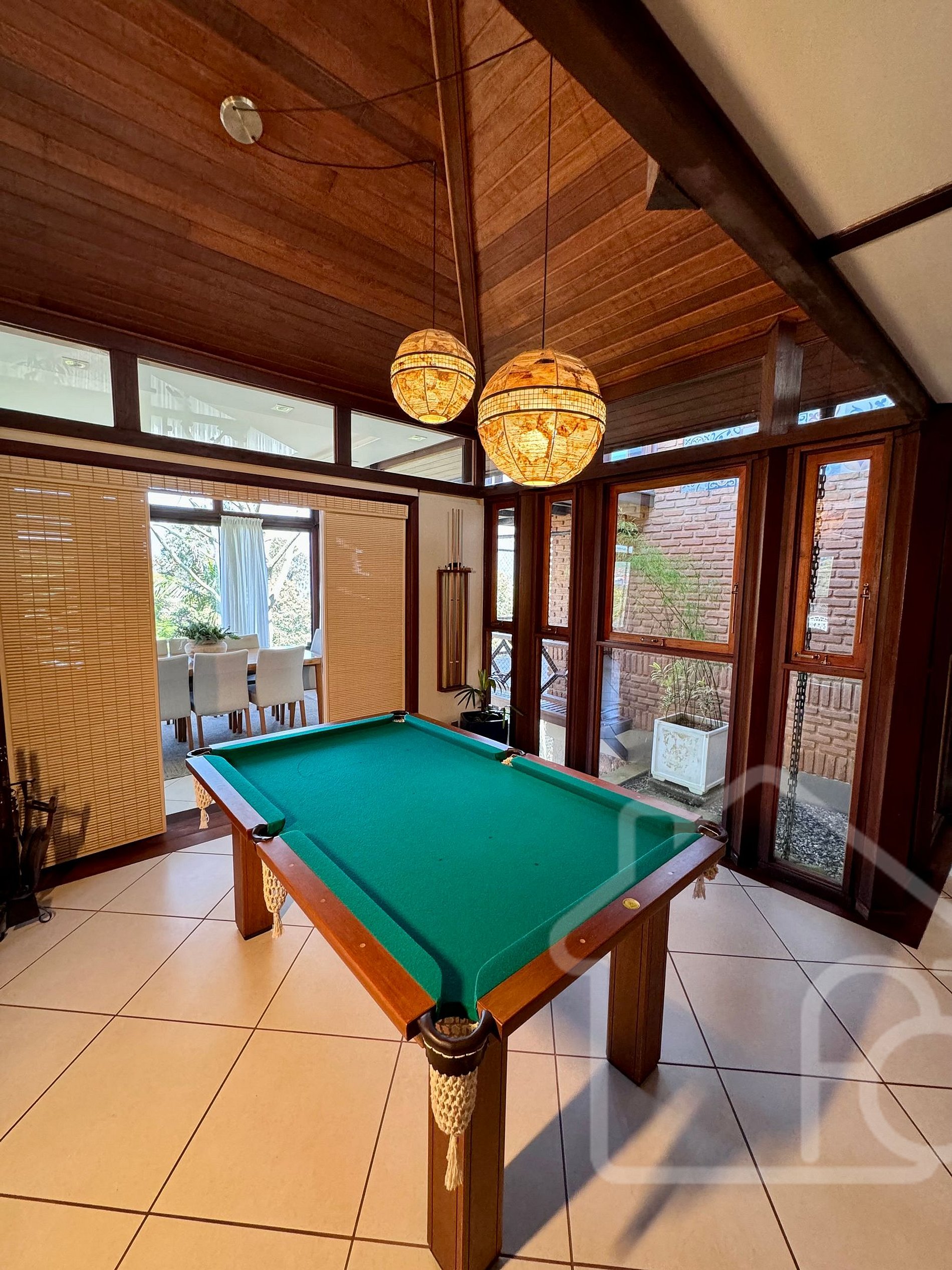 - Sala de estar principal com lareira, bar e mesa de sinuca